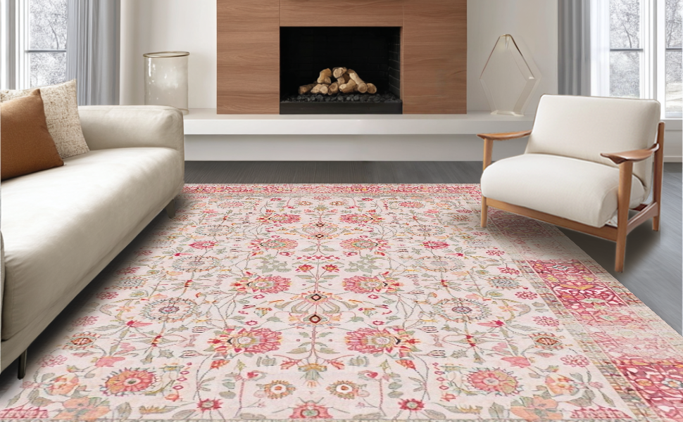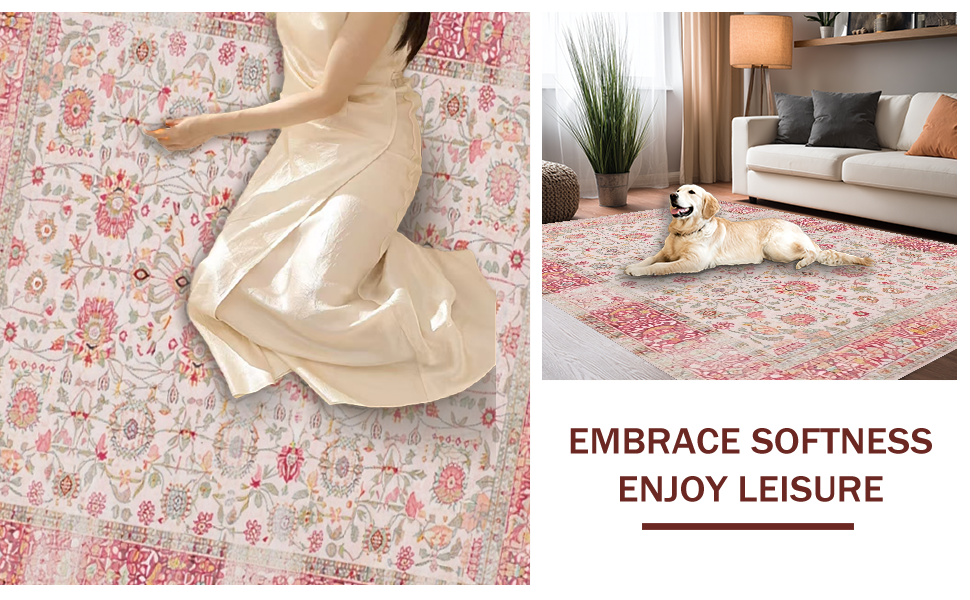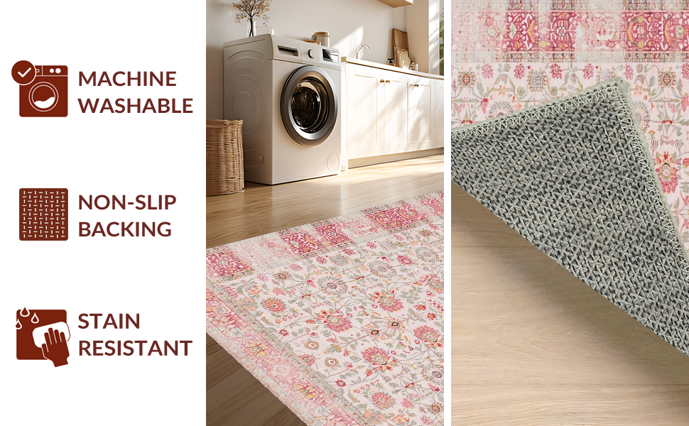 Ultra Soft Area Rug, Non Slip, Stain Resistant, Washable Area Rugs for Living Room, Bedroom, Chic Pastel Abstract Design(Pink) Overview: