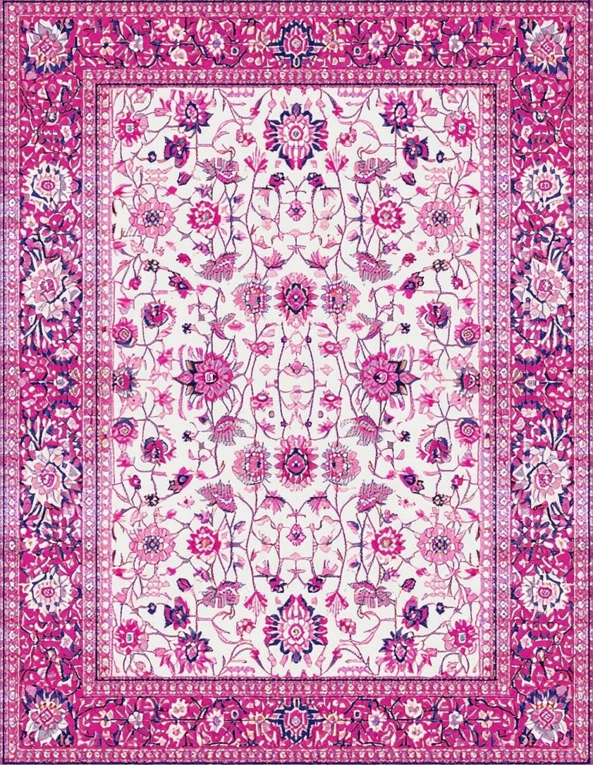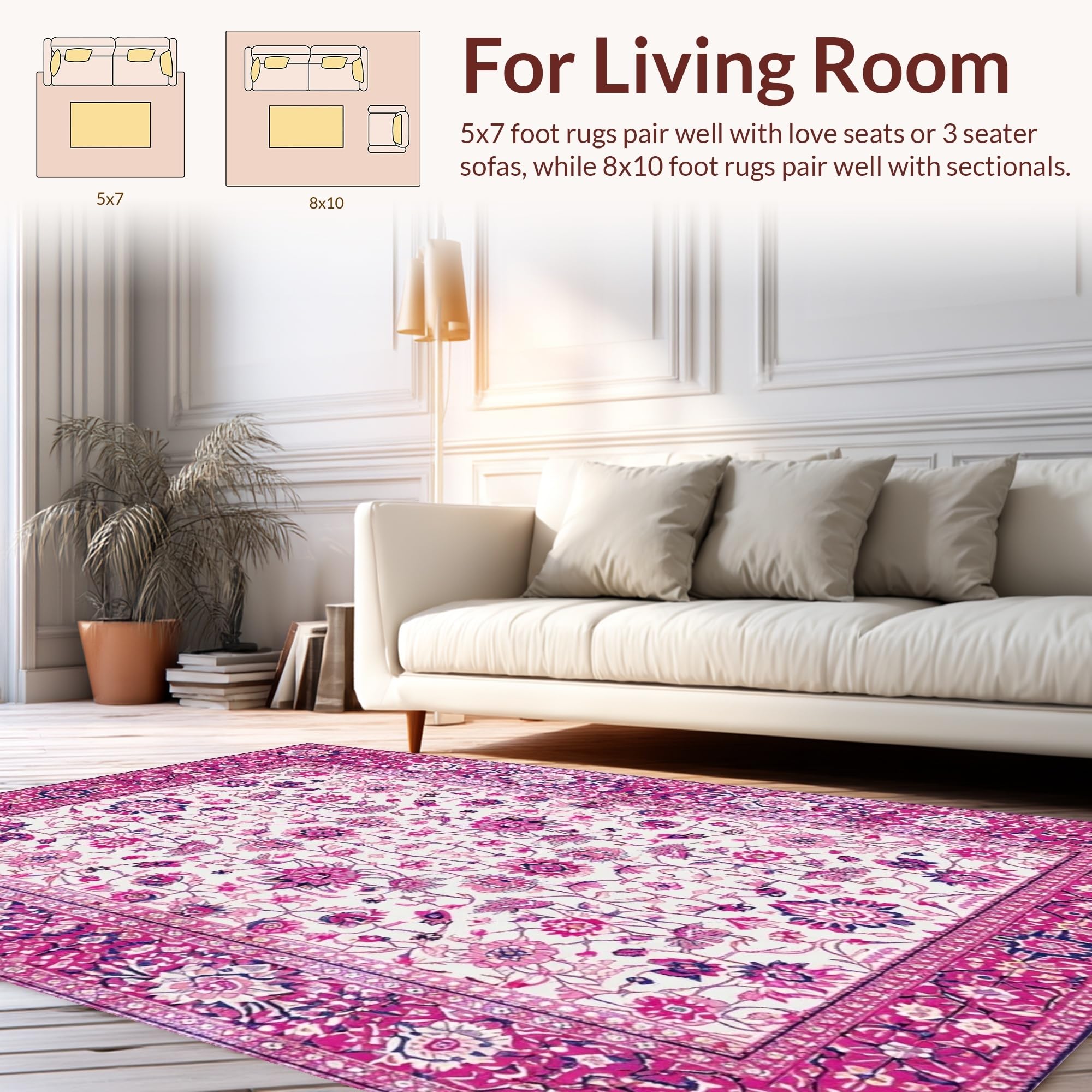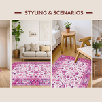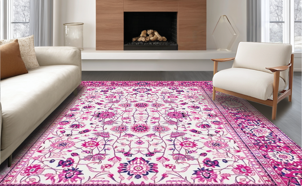 Ultra Soft Area Rug, Non Slip, Stain Resistant, Washable Area Rugs for Living Room, Bedroom, Chic Pastel Botanical Arrangement(White) Overview: