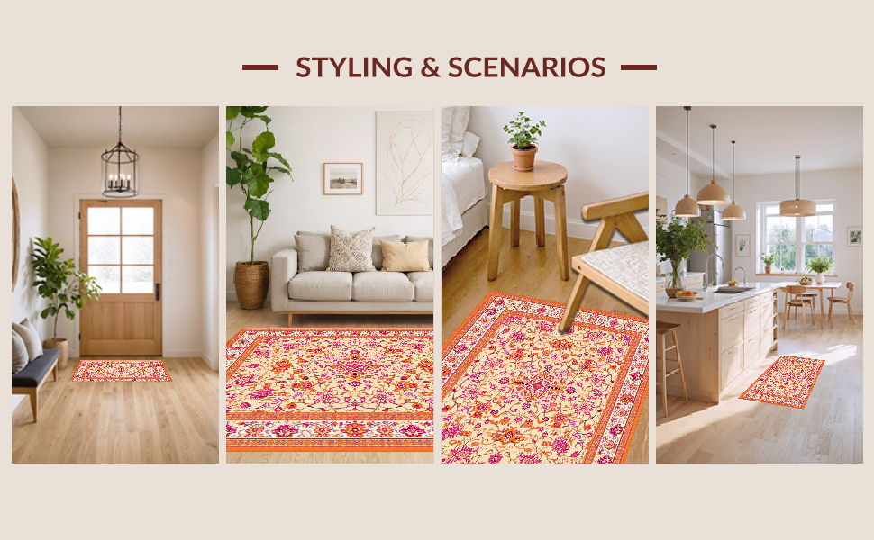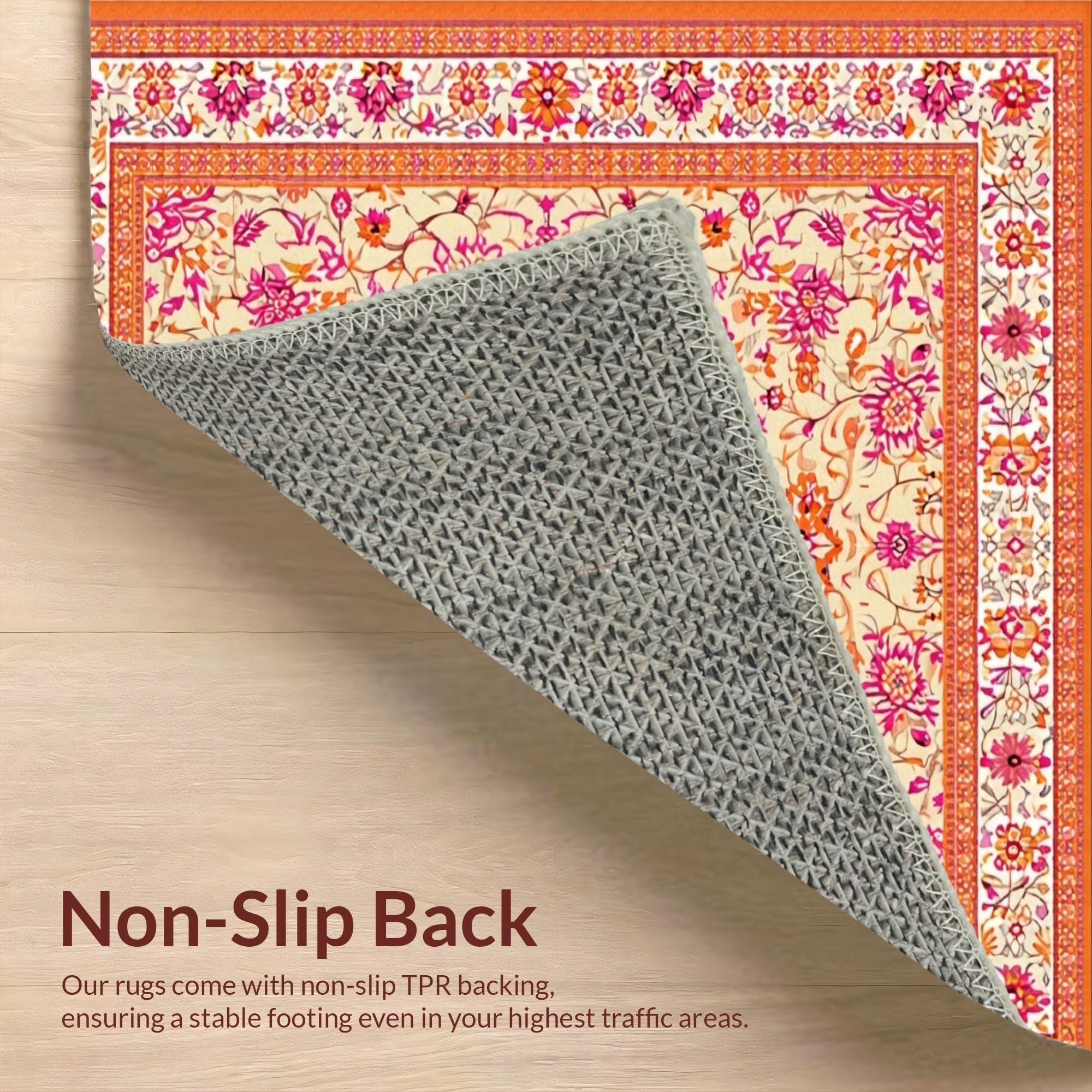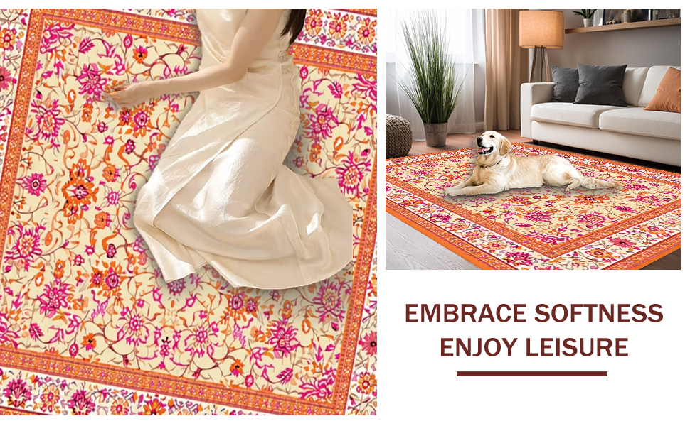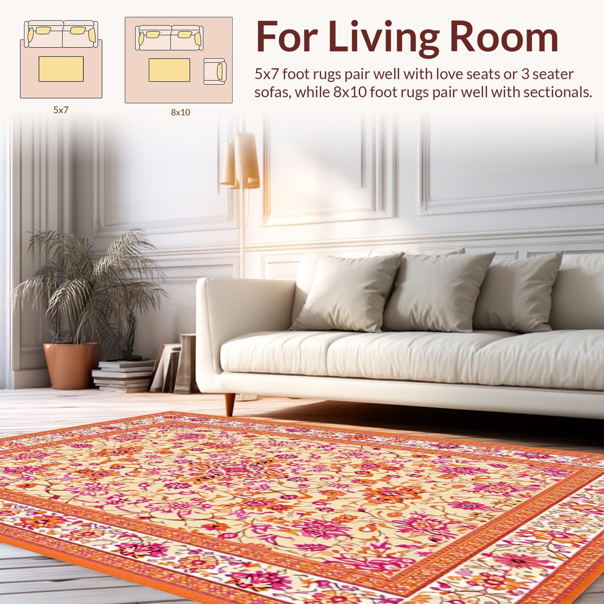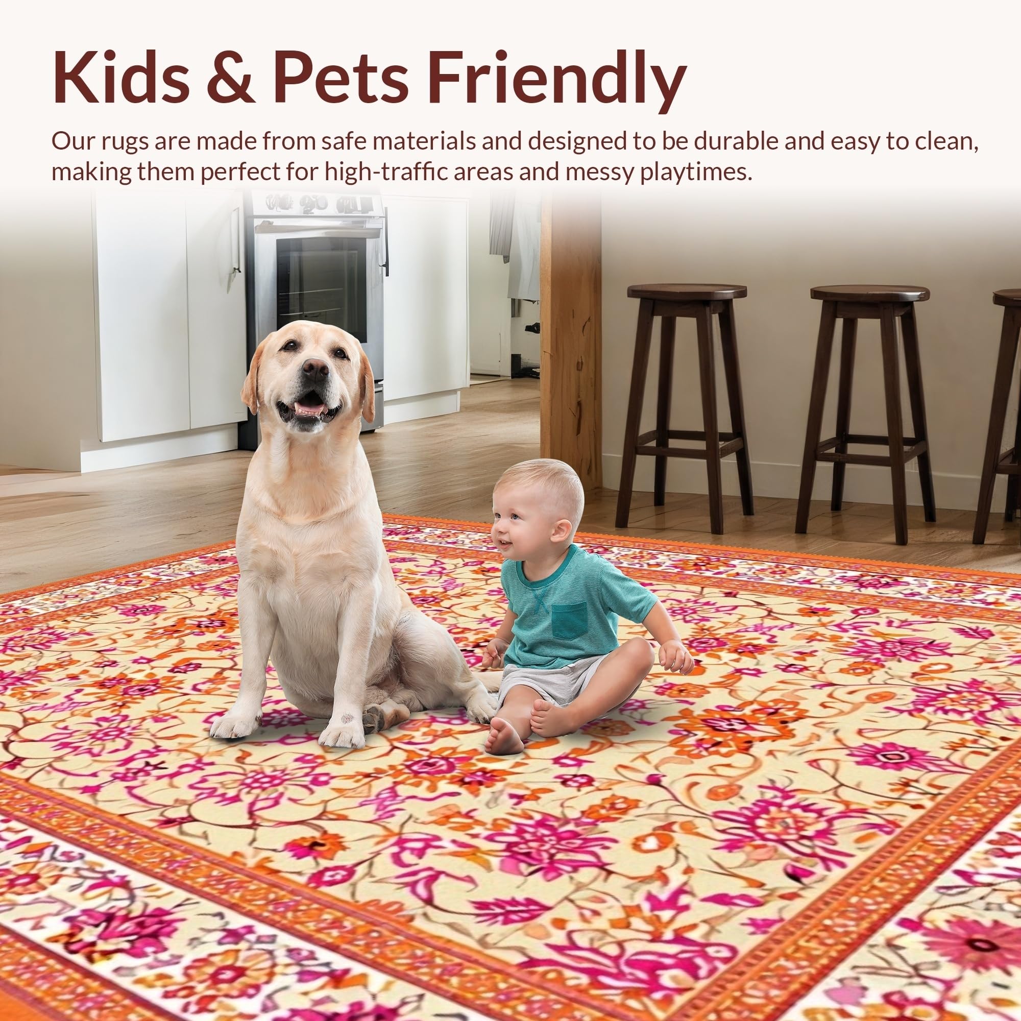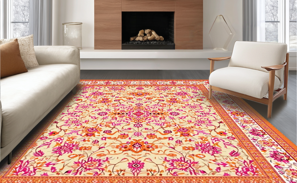 Ultra Soft Area Rug, Non Slip, Stain Resistant, Washable Area Rugs for Living Room, Bedroom, Chic Pastel Botanical Design(Beige) Overview: