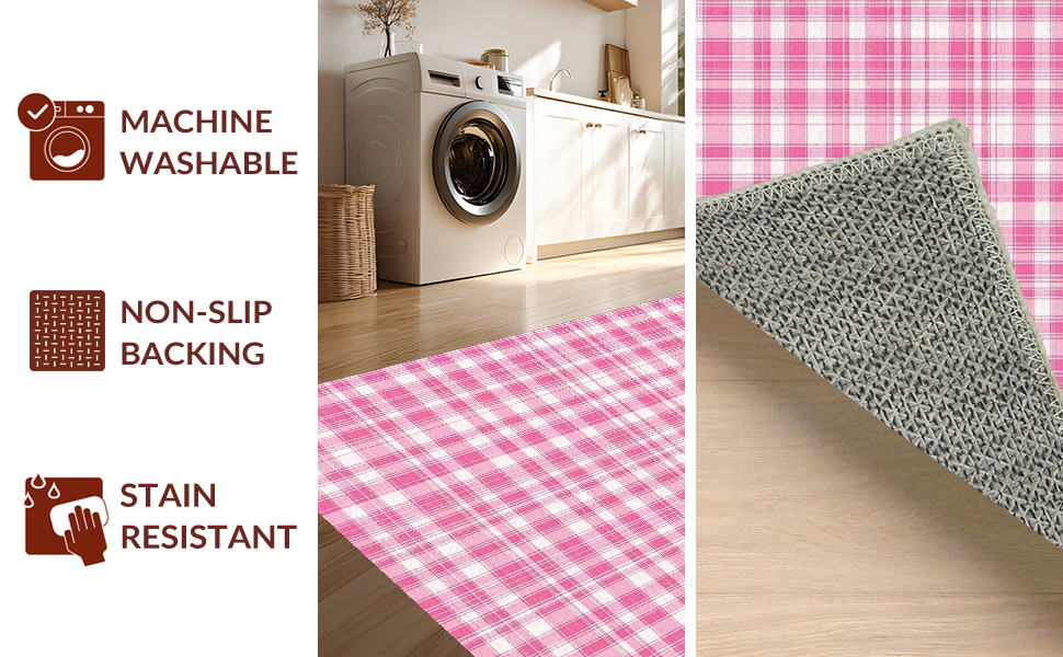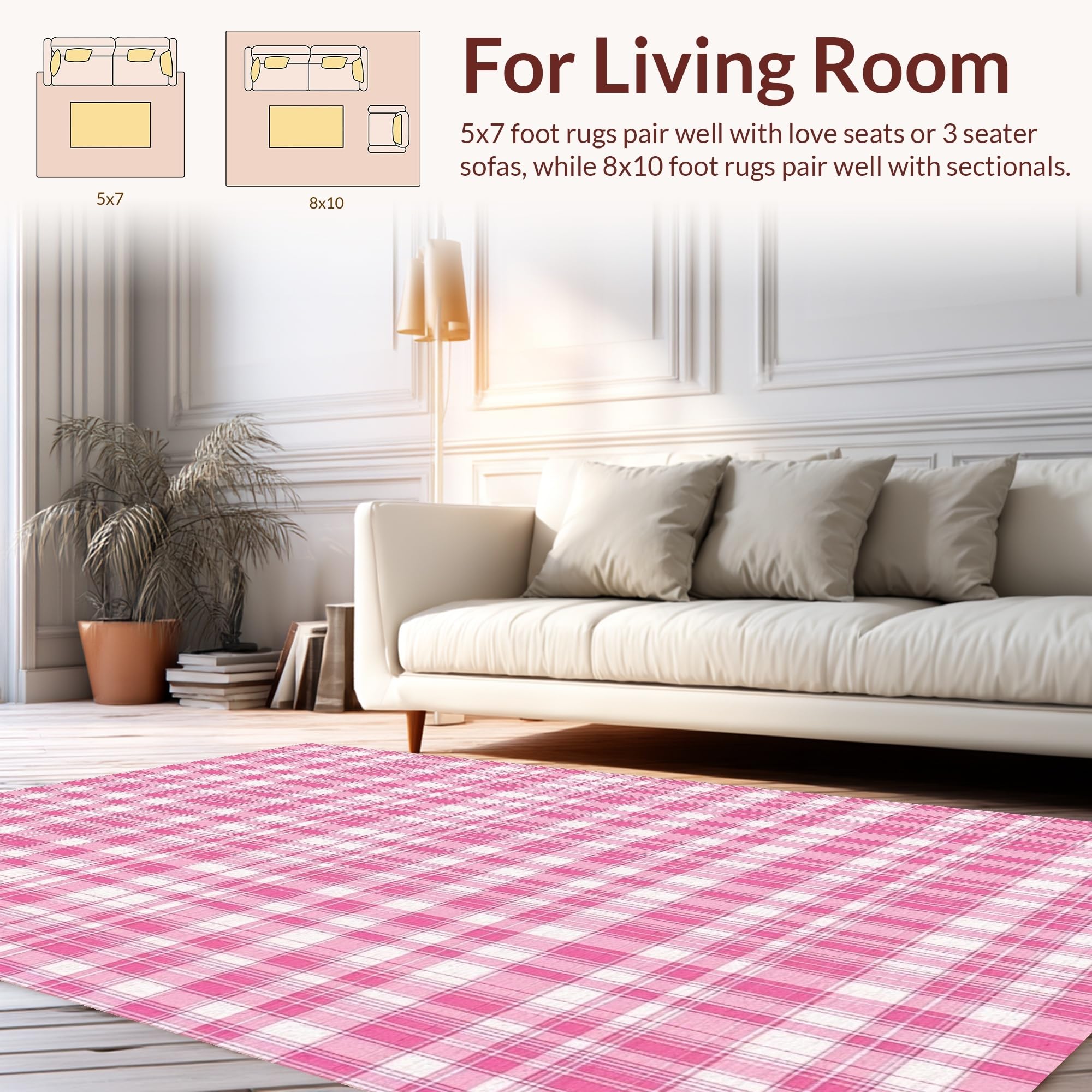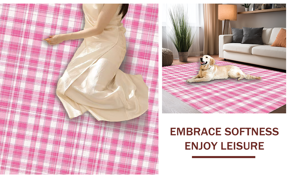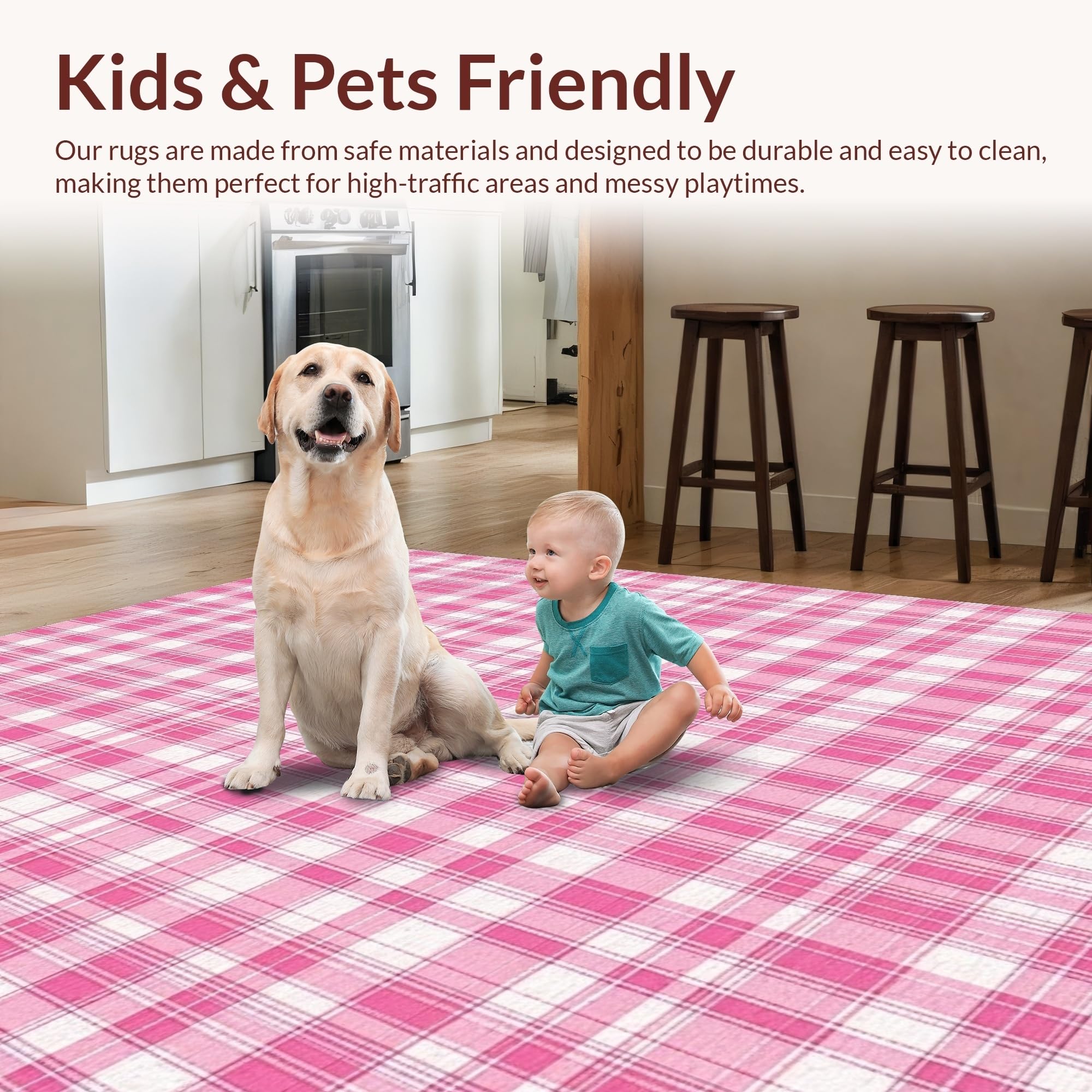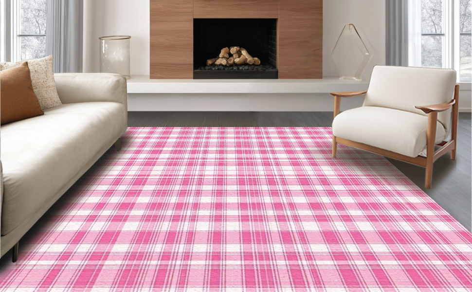 Ultra Soft Area Rug, Non Slip, Stain Resistant, Washable Area Rugs for Living Room, Bedroom, Chic Pastel Checkerboard Elegance(Pink) Overview: