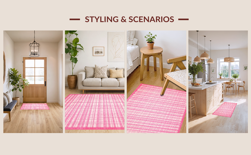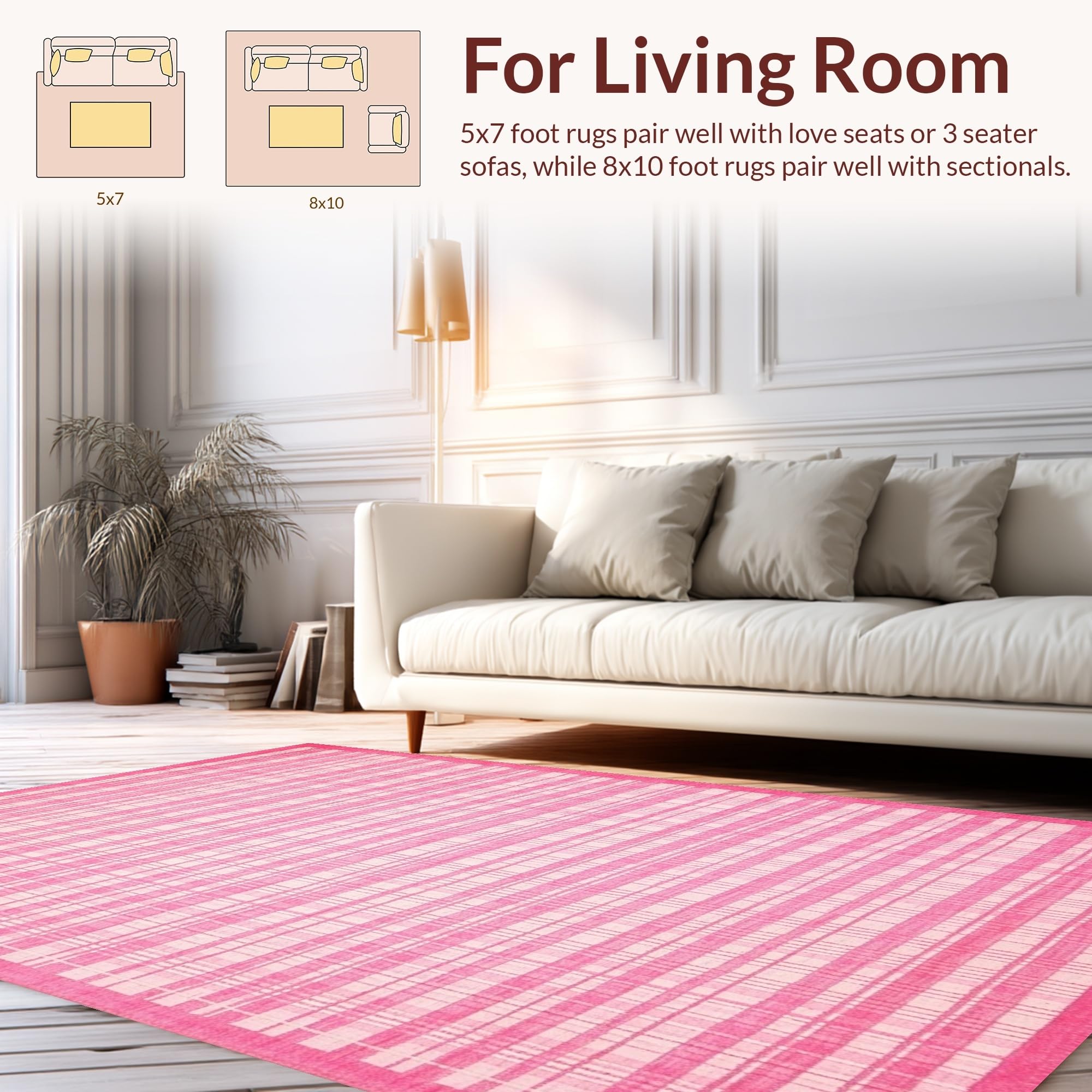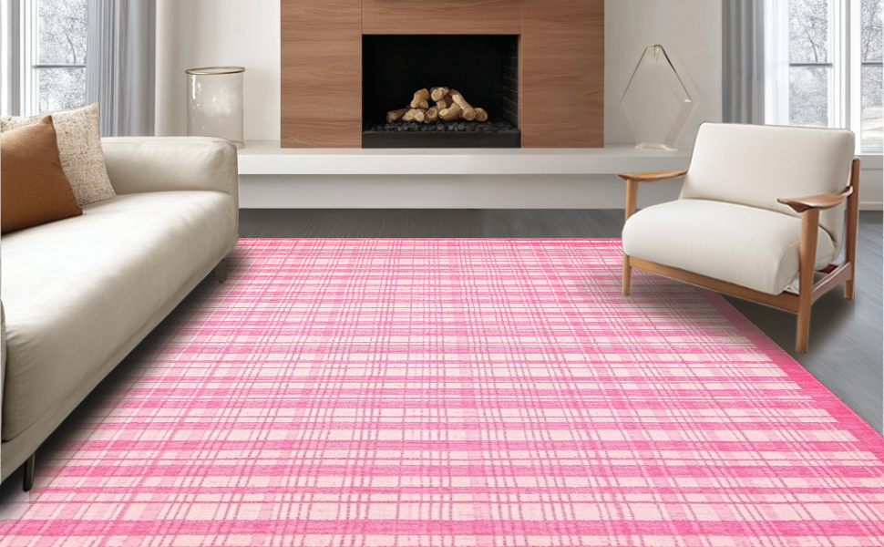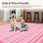 Ultra Soft Area Rug, Non Slip, Stain Resistant, Washable Area Rugs for Living Room, Bedroom, Chic Pastel Checkerboard Style(Pink) Overview: