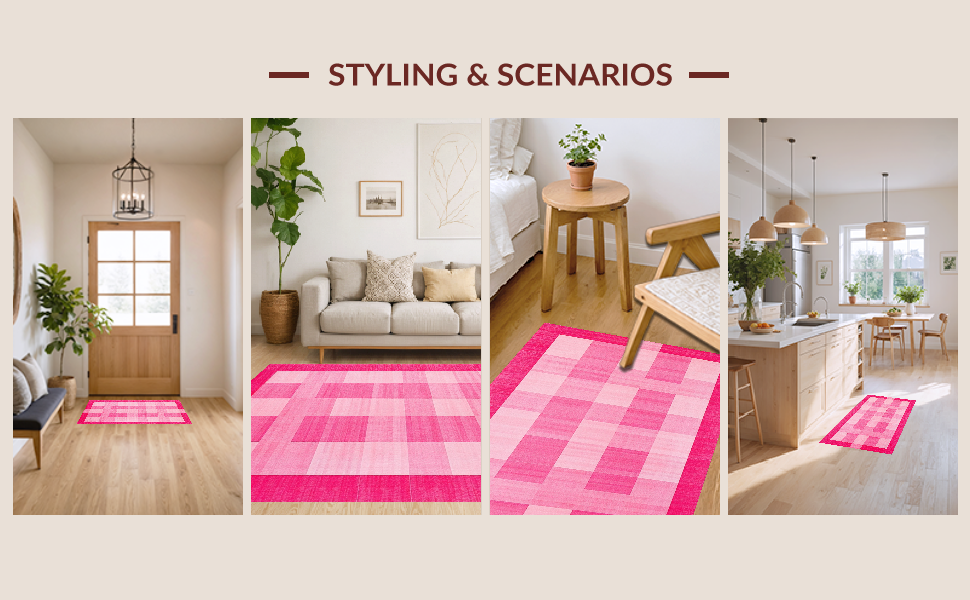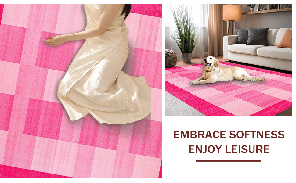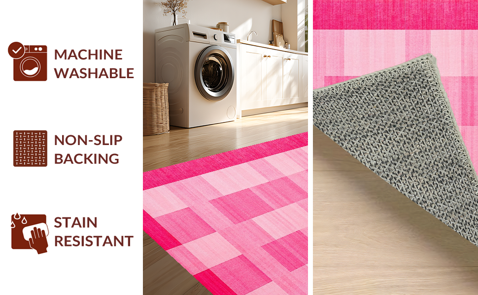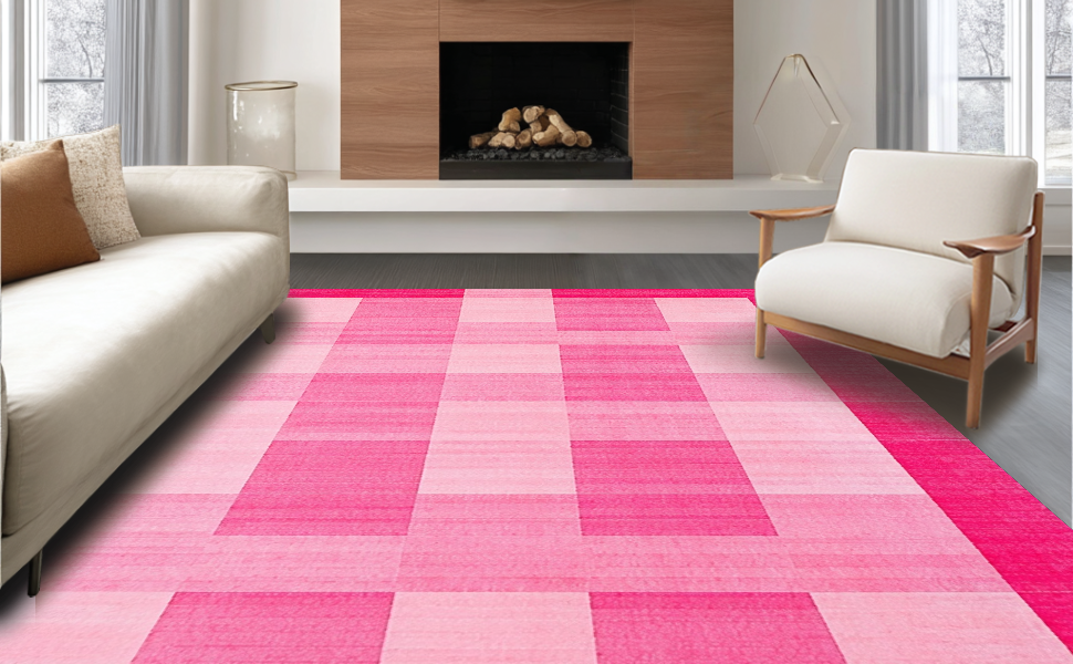 Ultra Soft Area Rug, Non Slip, Stain Resistant, Washable Area Rugs for Living Room, Bedroom, Chic Pastel Checkered Pattern(Pink) Overview: