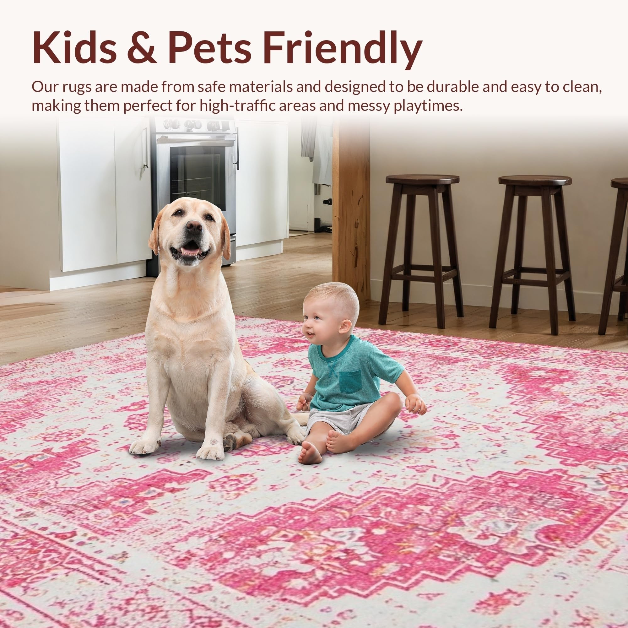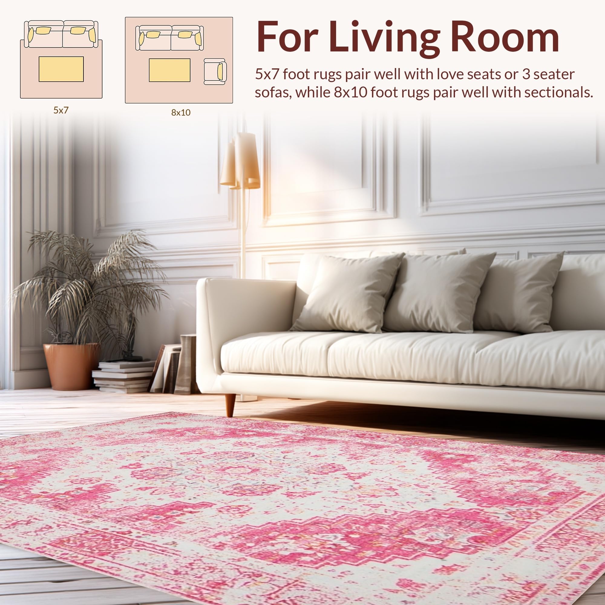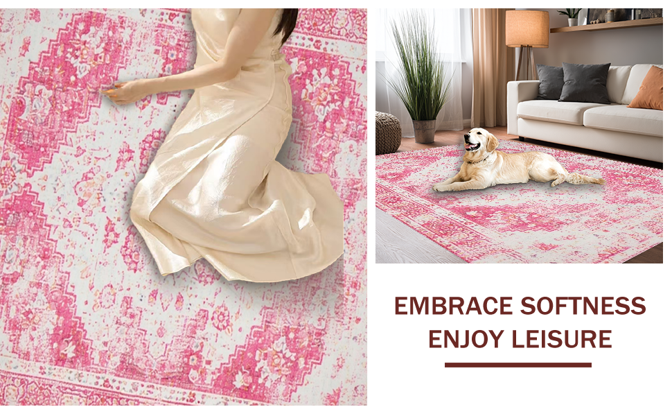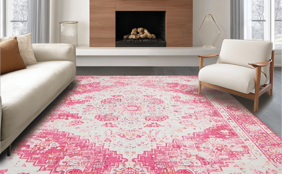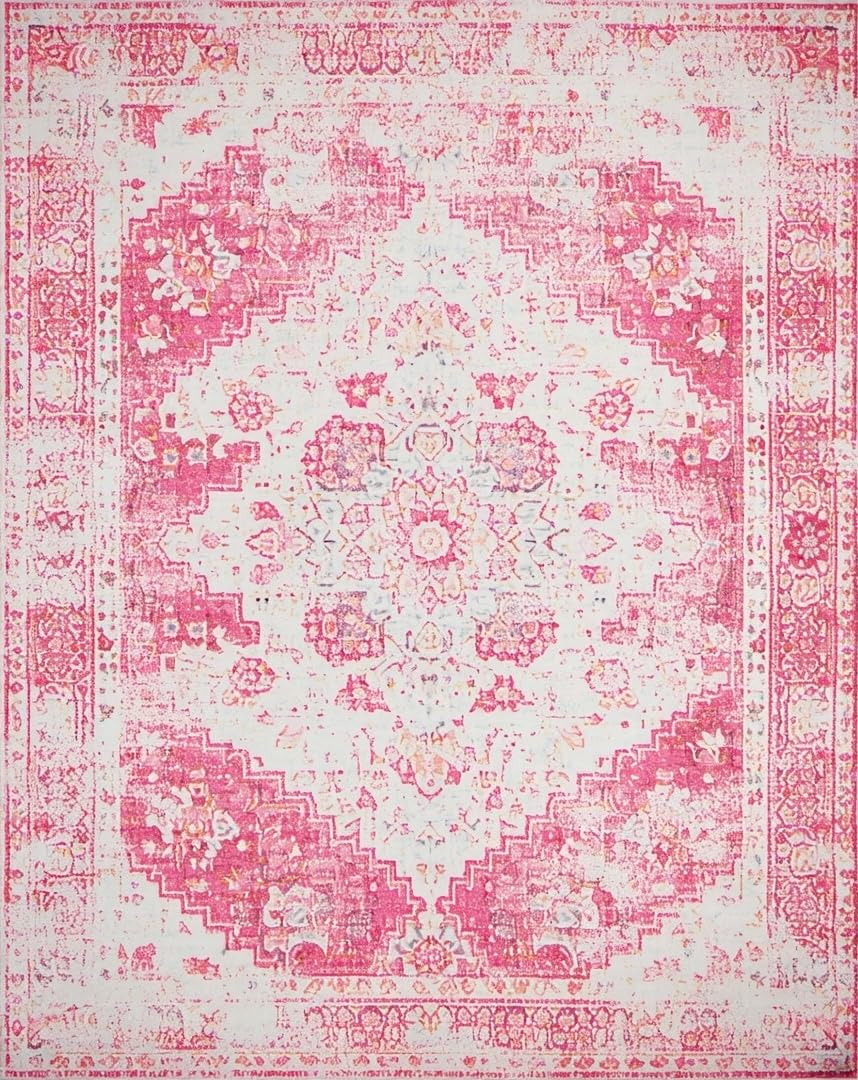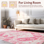 Ultra Soft Area Rug, Non Slip, Stain Resistant, Washable Area Rugs for Living Room, Bedroom, Chic Pastel Distressed Motif(Pink) Overview: