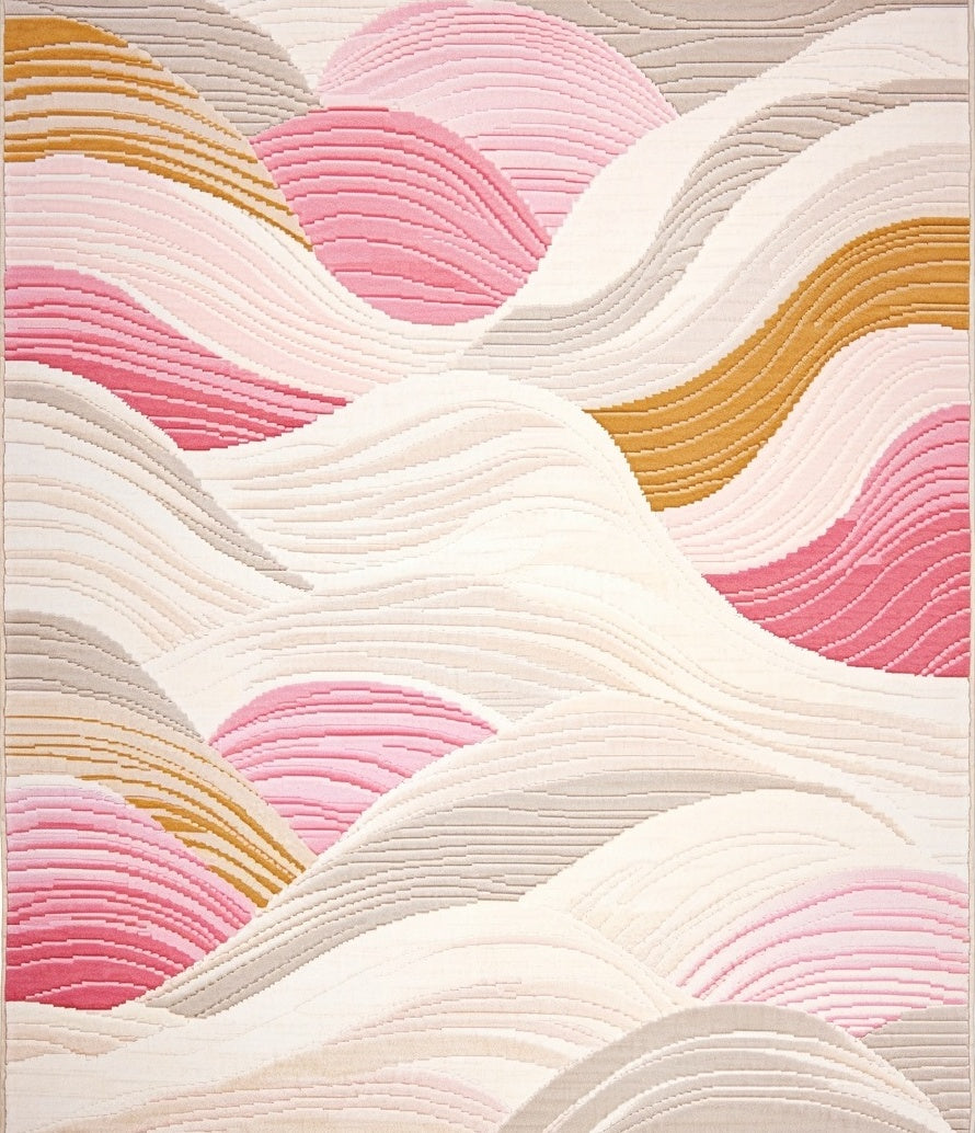 Ultra Soft Area Rug, Non Slip, Stain Resistant, Washable Area Rugs for Living Room, Bedroom, Chic Pink Beige Wave Area(Pink) Overview: