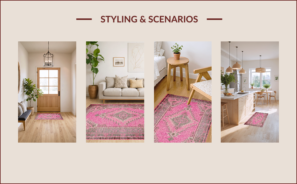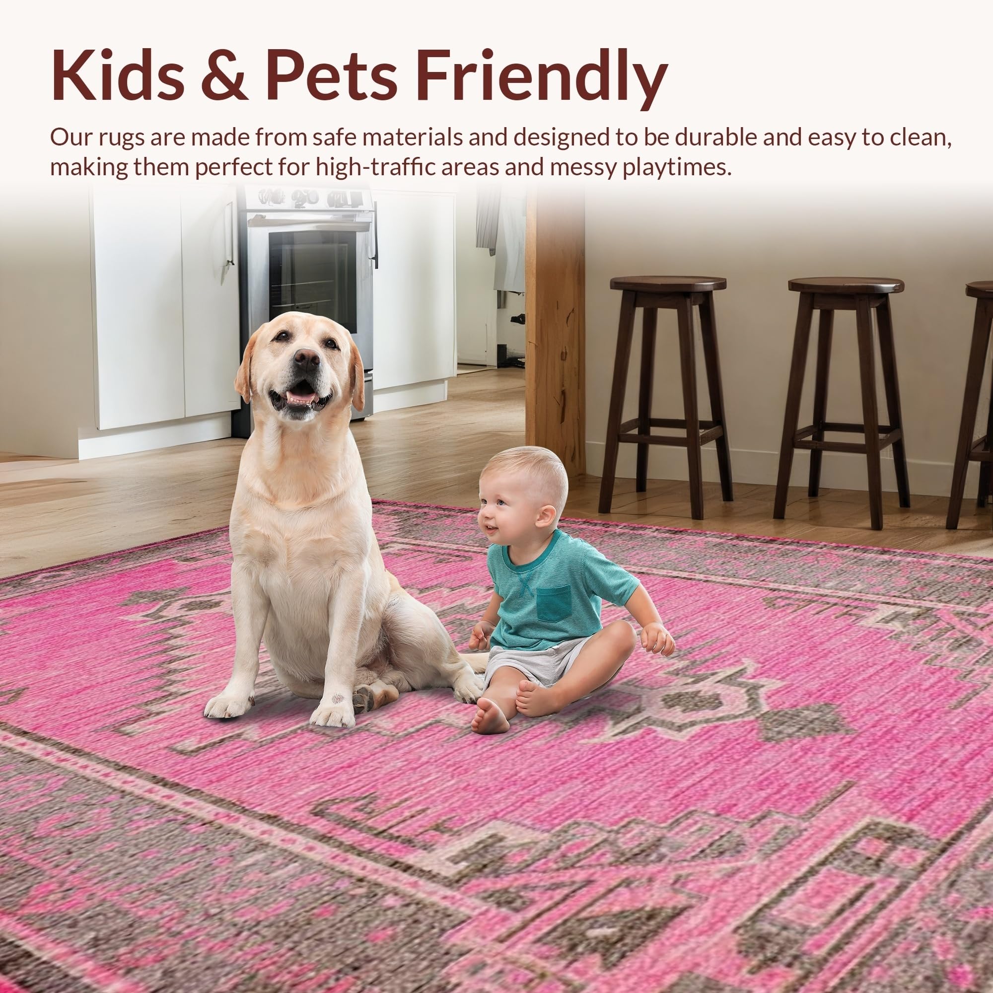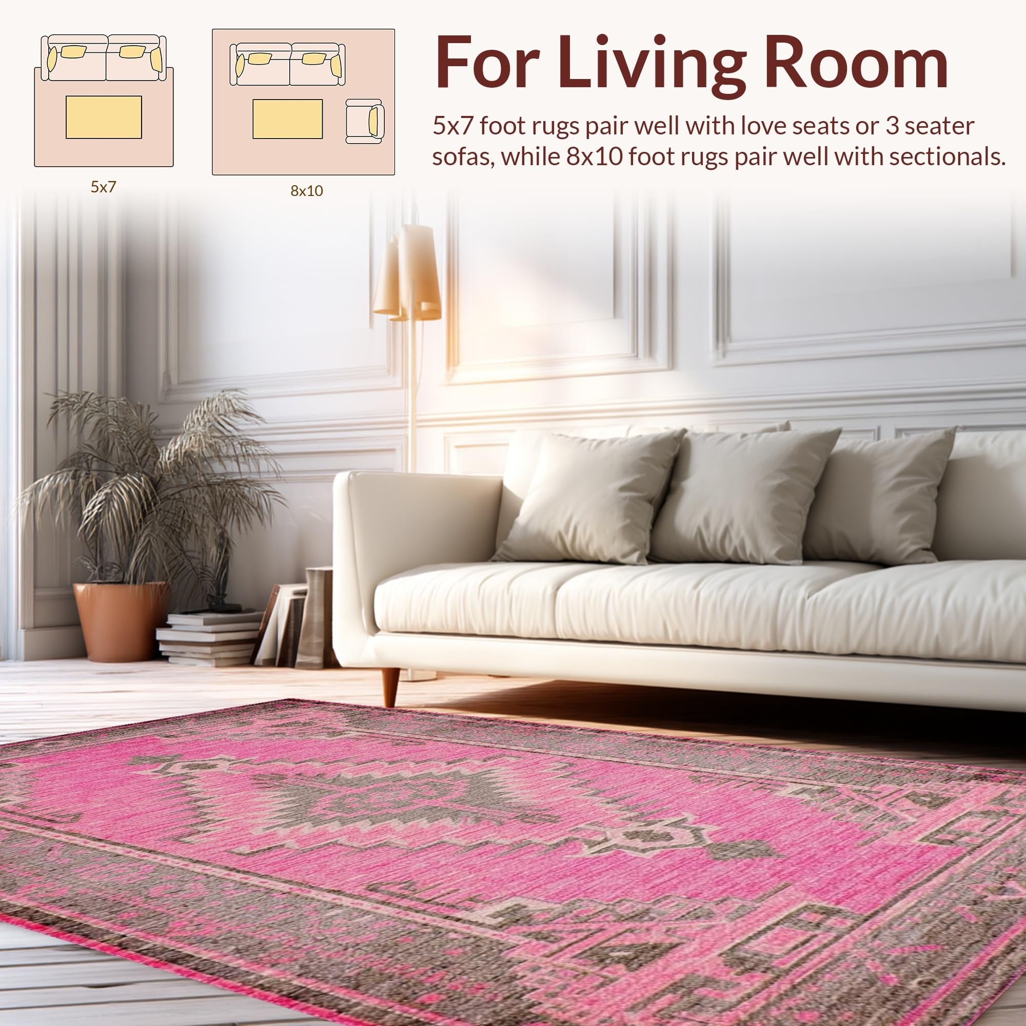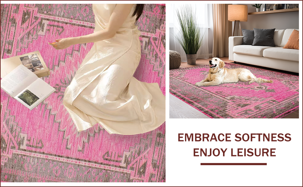 Ultra Soft Area Rug, Non Slip, Stain Resistant, Washable Area Rugs for Living Room, Bedroom, Chic Pink Western Boot Motif(Pink) Overview: