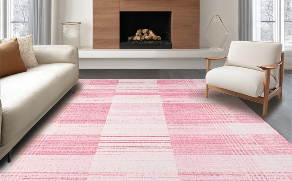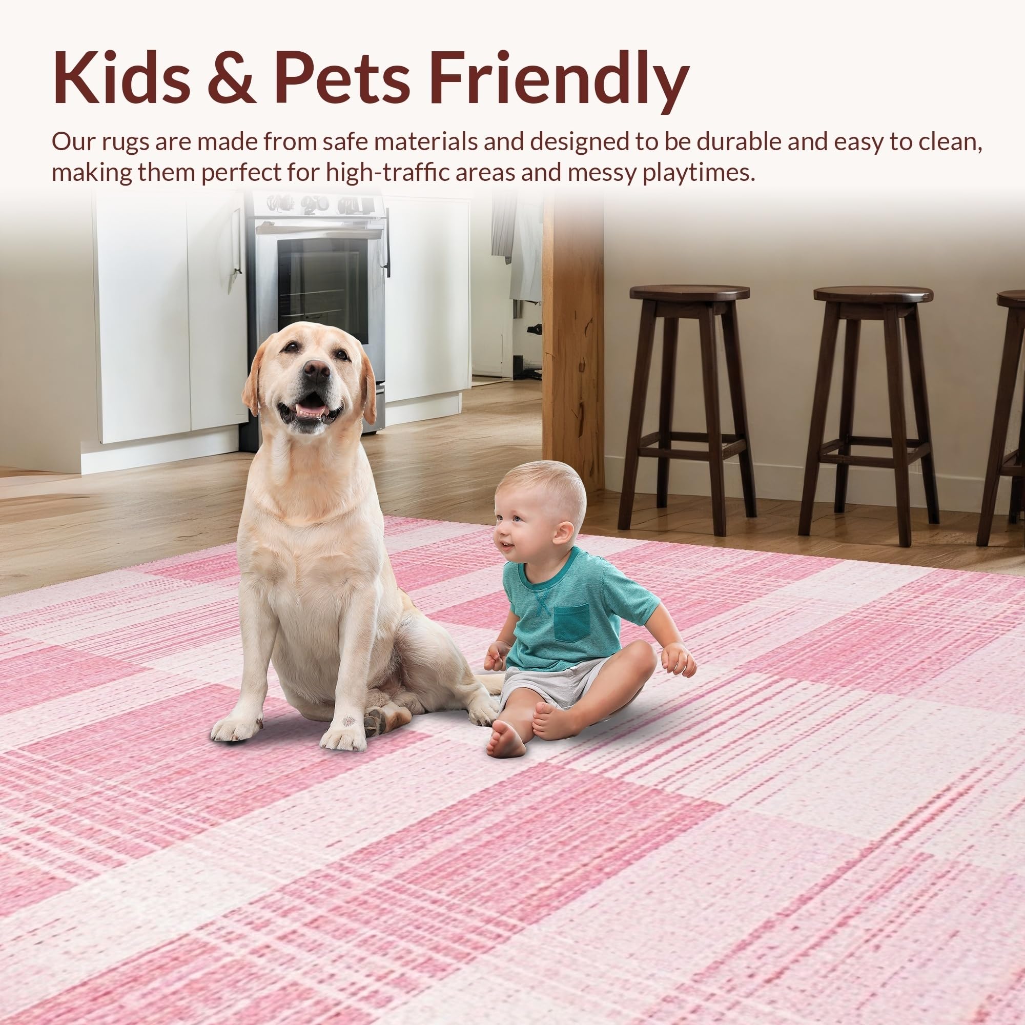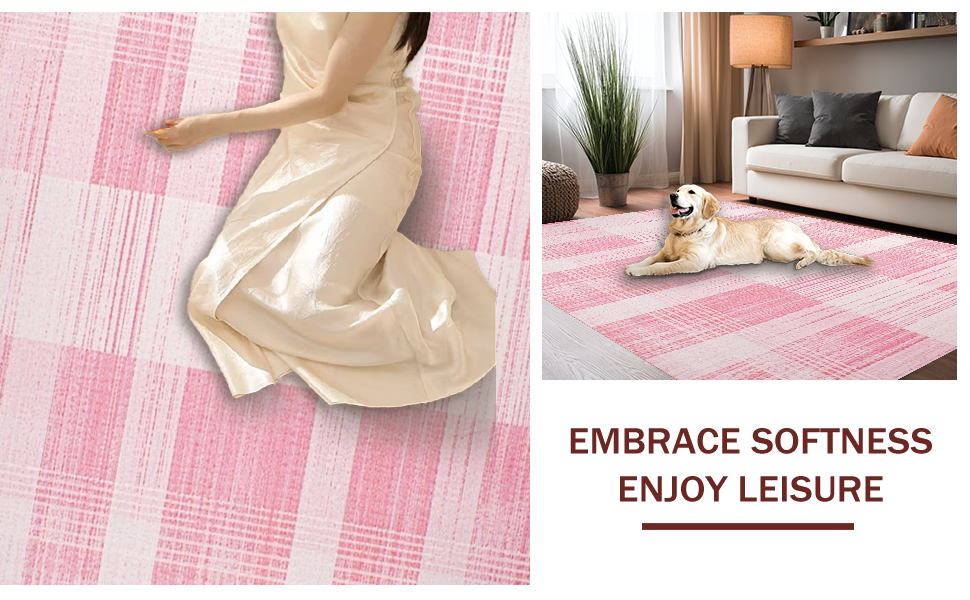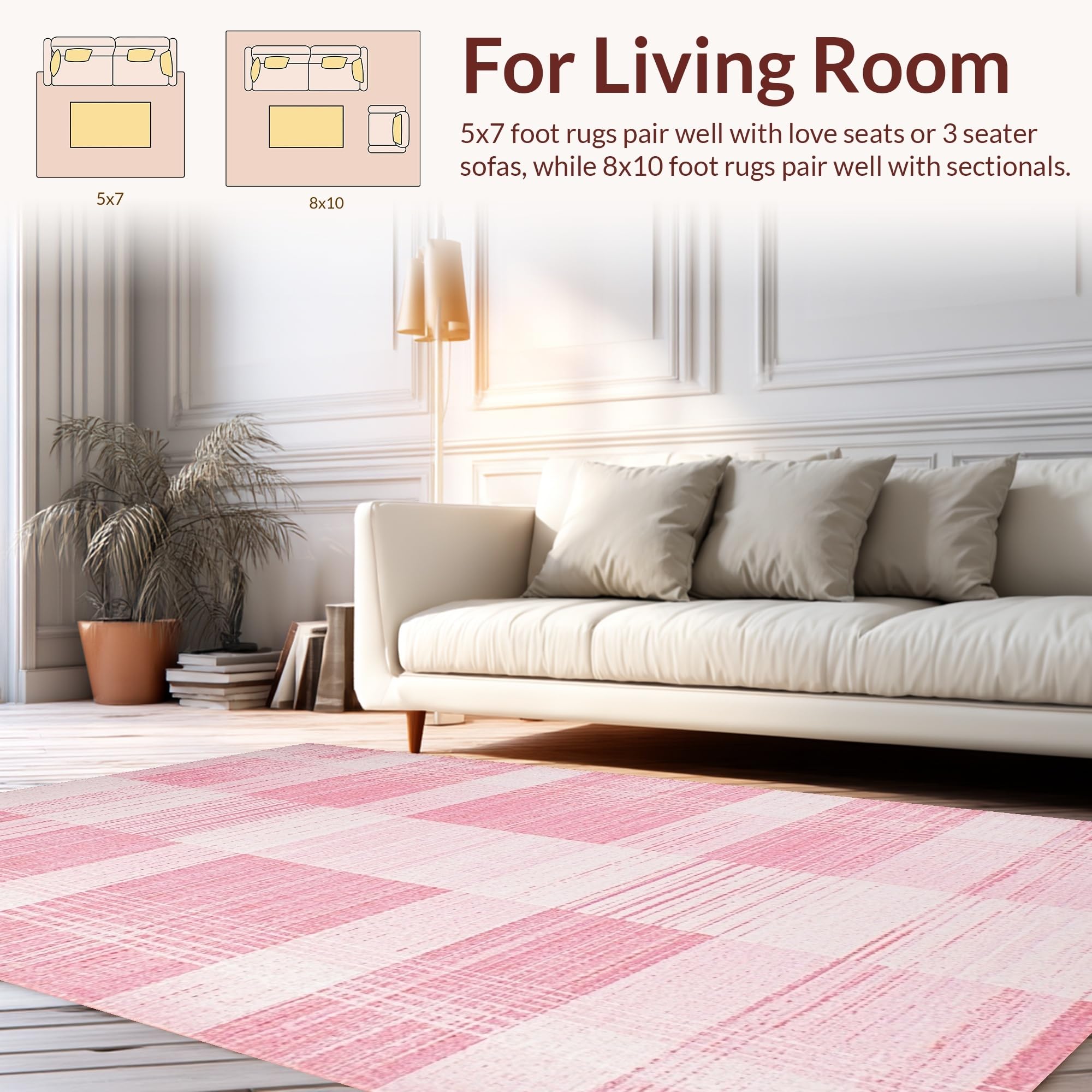 Ultra Soft Area Rug, Non Slip, Stain Resistant, Washable Area Rugs for Living Room, Bedroom, Chic Plush Abstract Harmony(Pink) Overview: