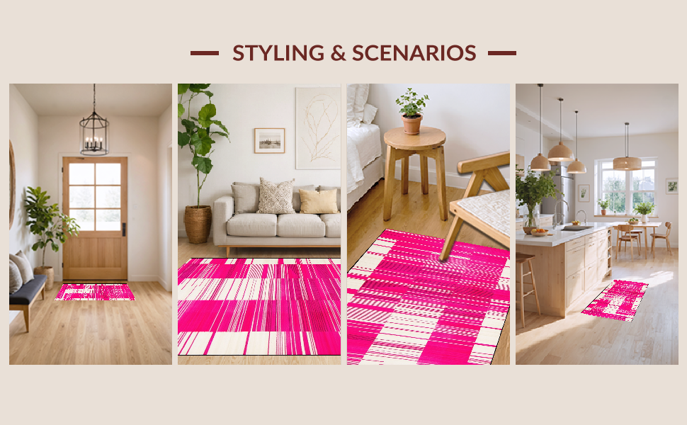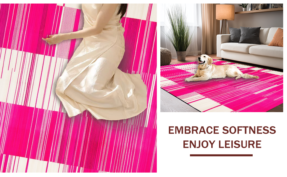 Ultra Soft Area Rug, Non Slip, Stain Resistant, Washable Area Rugs for Living Room, Bedroom, Chic Plush Abstract Visual(Pink) Overview: