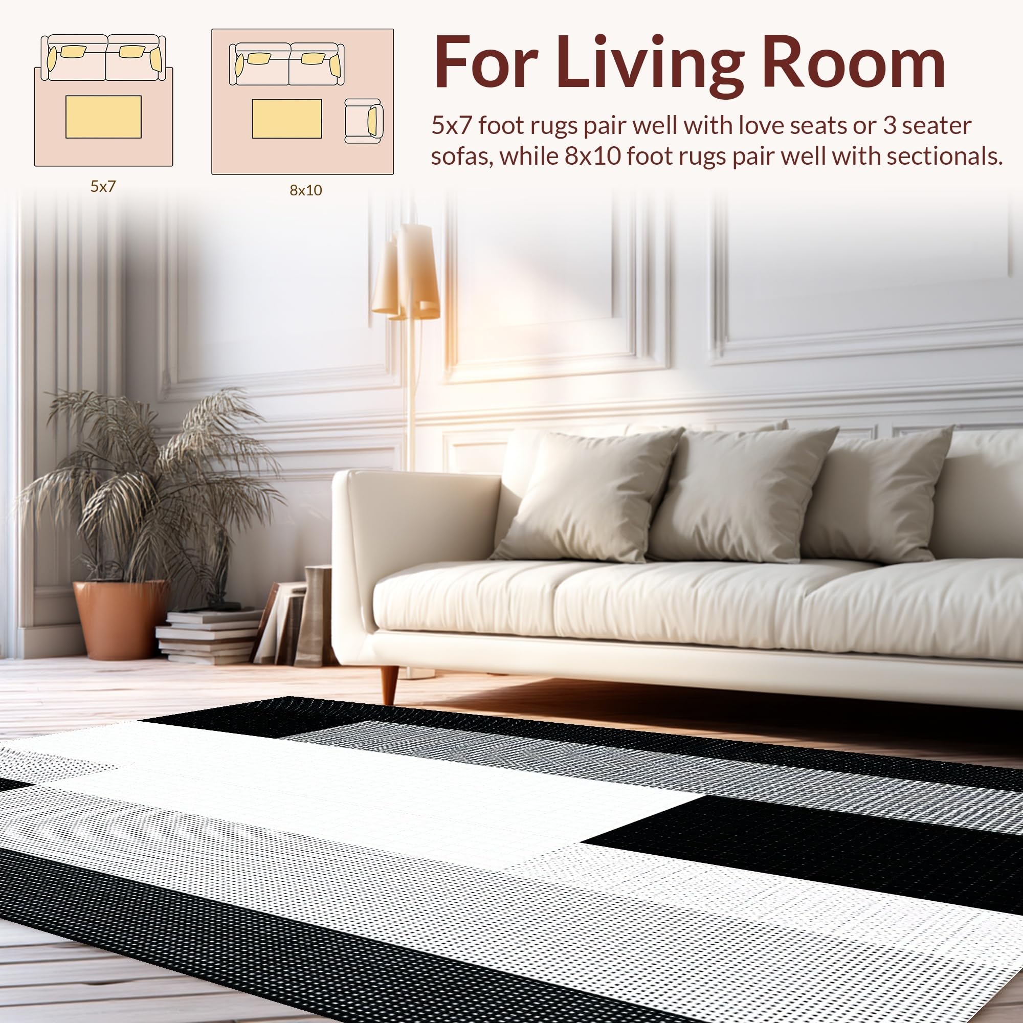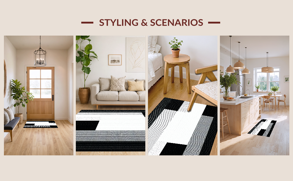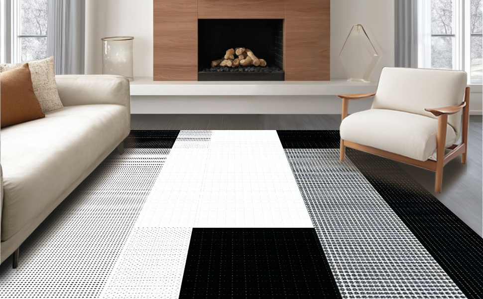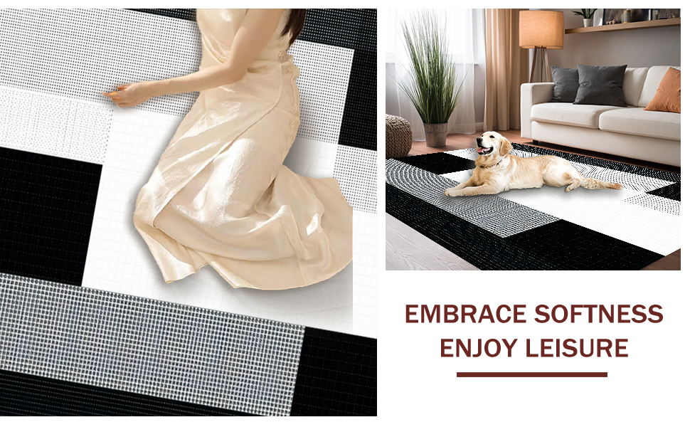 Ultra Soft Area Rug, Non Slip, Stain Resistant, Washable Area Rugs for Living Room, Bedroom, Chic Plush Minimalist Texture(Black) Overview: