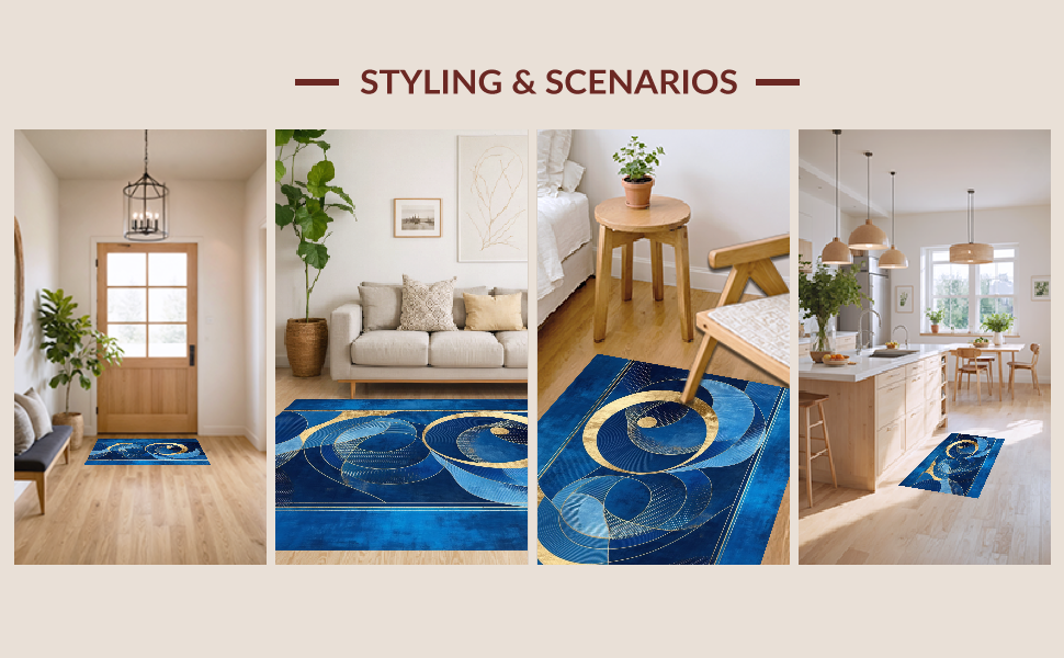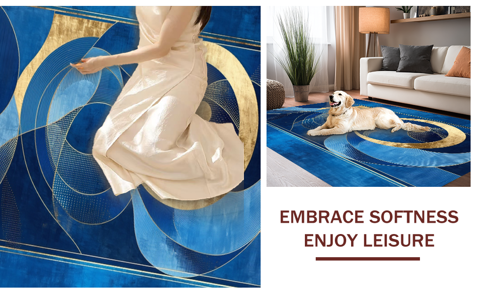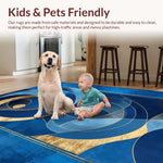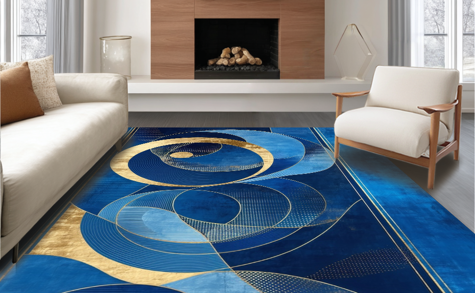 Ultra Soft Area Rug, Non Slip, Stain Resistant, Washable Area Rugs for Living Room, Bedroom, Chic Radiant Circular Motif(Blue) Overview:
