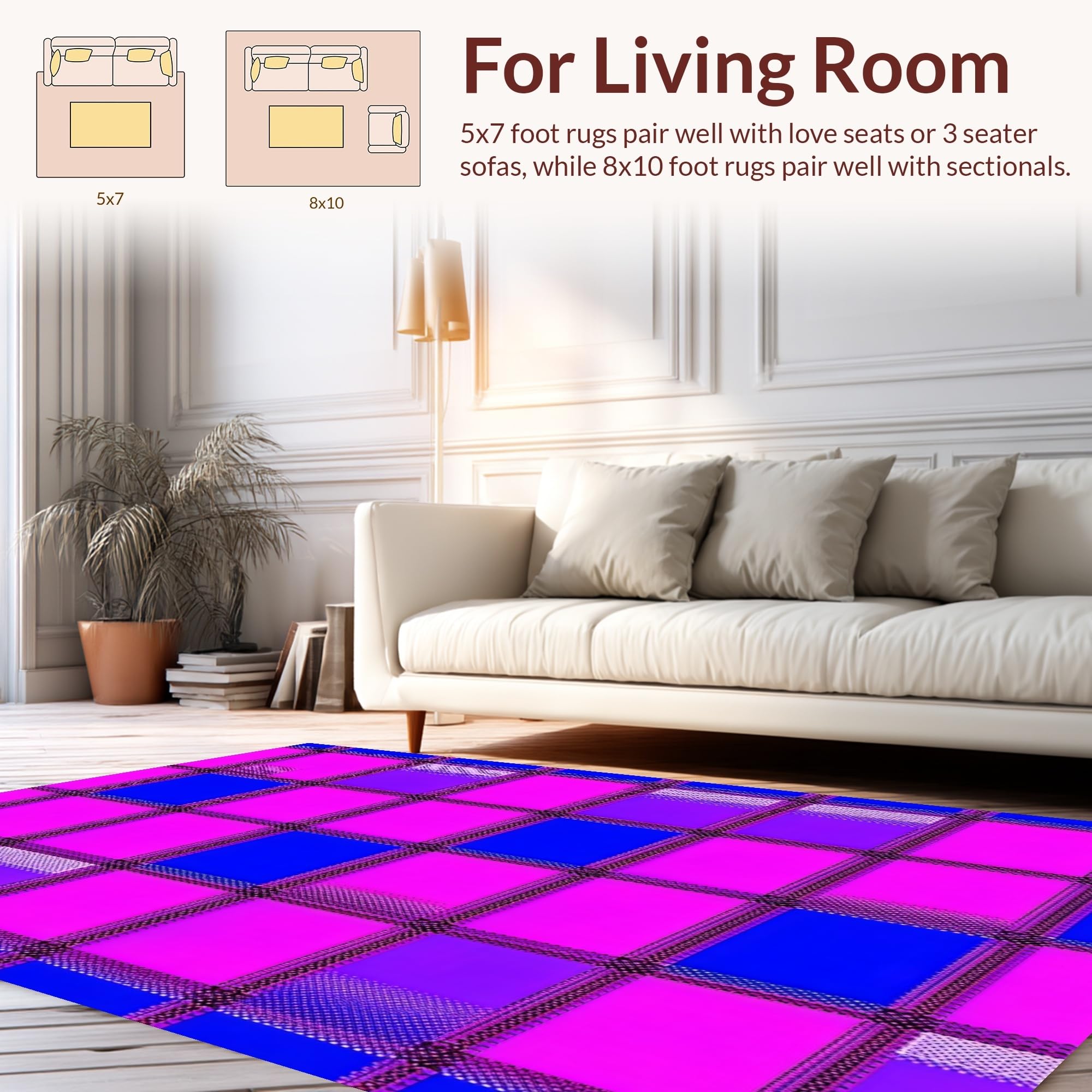 Ultra Soft Area Rug, Non Slip, Stain Resistant, Washable Area Rugs for Living Room, Bedroom, Chic Rainbow Motif Variation(Pink) Overview: