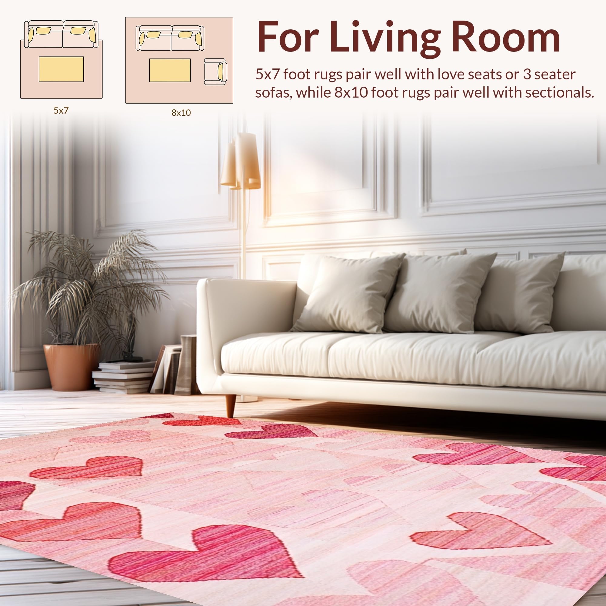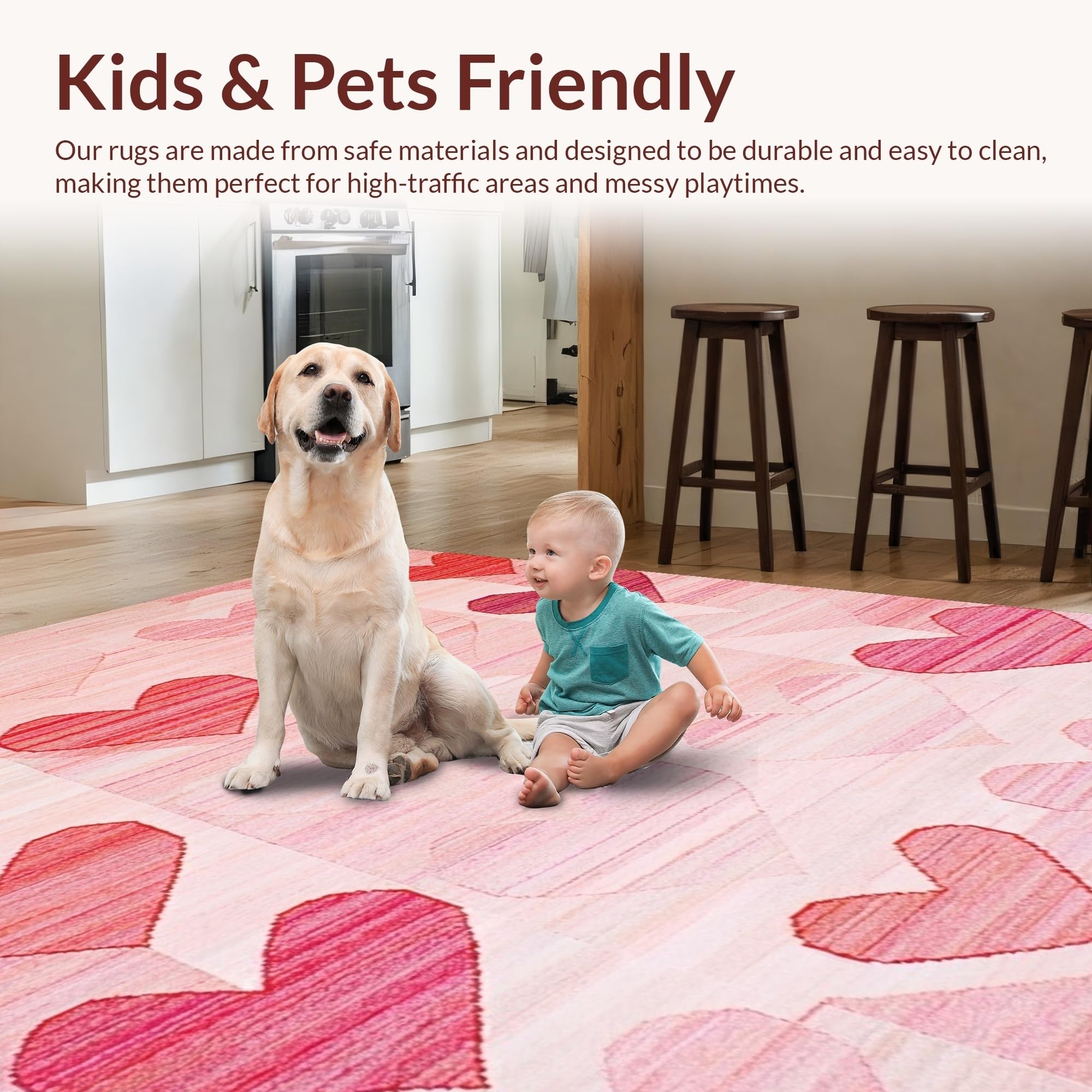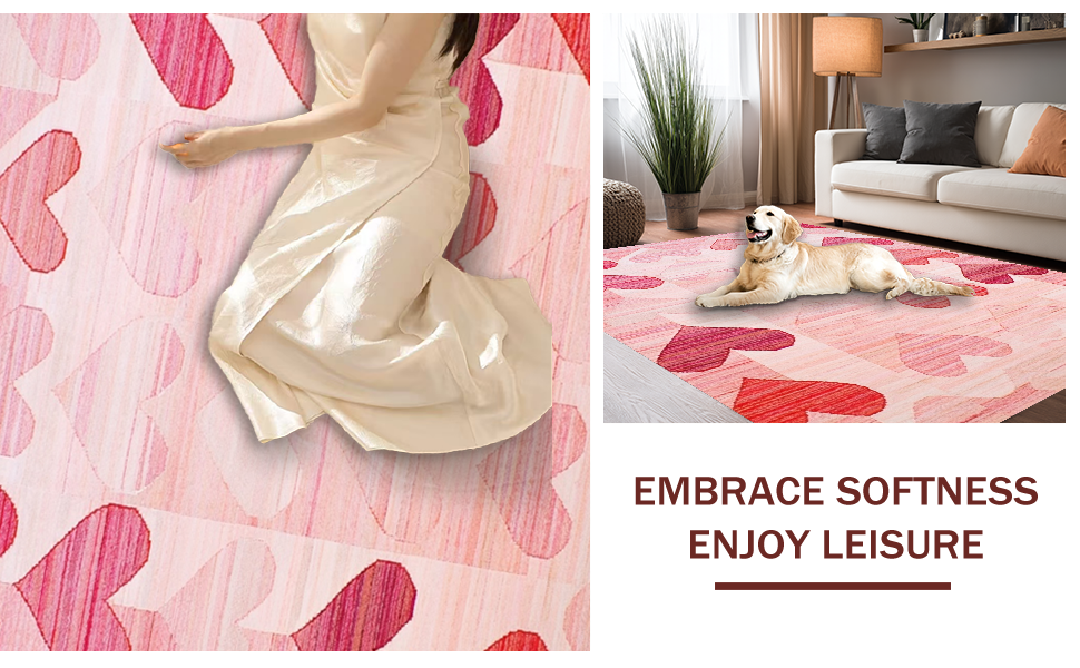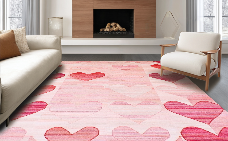 Ultra Soft Area Rug, Non Slip, Stain Resistant, Washable Area Rugs for Living Room, Bedroom, Chic Red Pink Symmetry(Red) Overview: