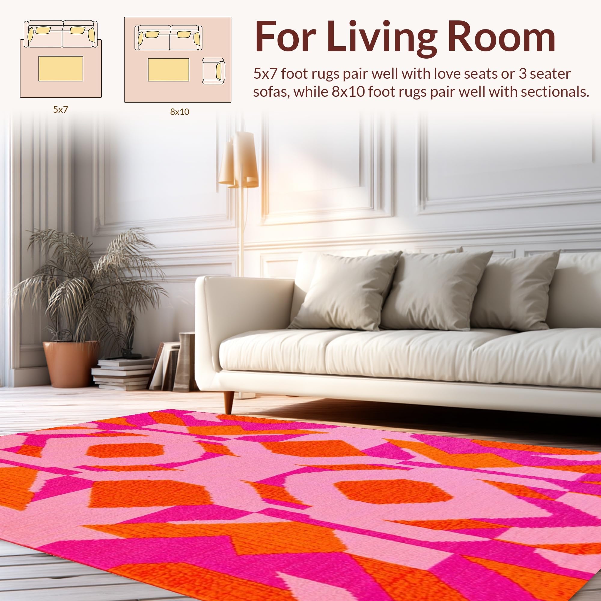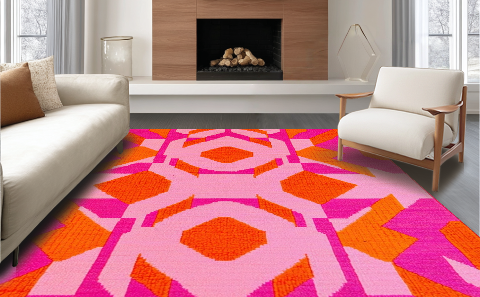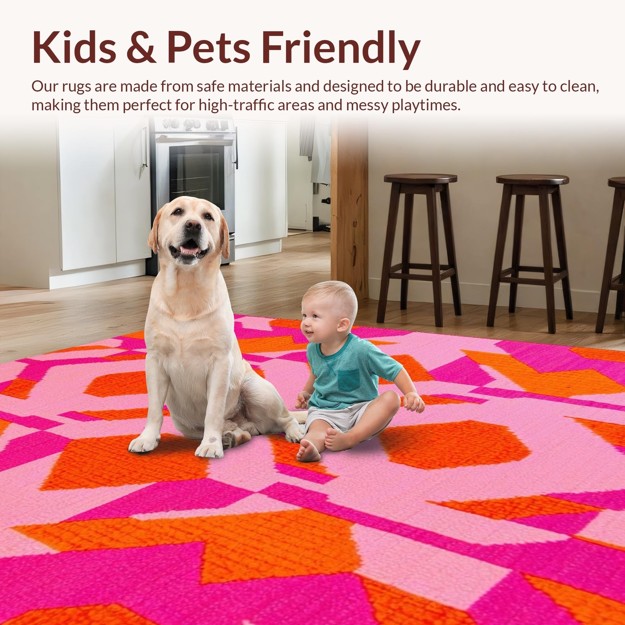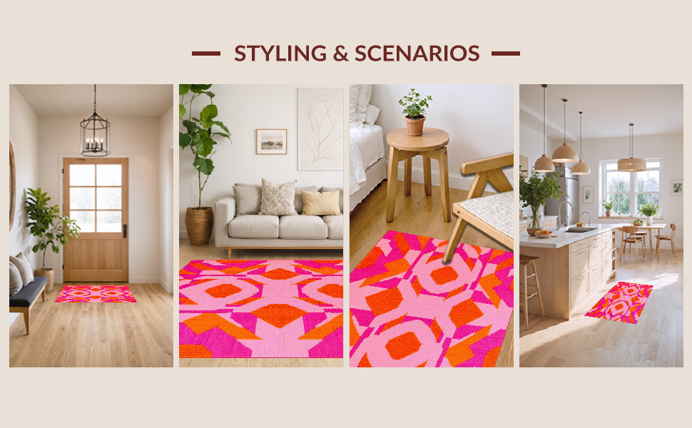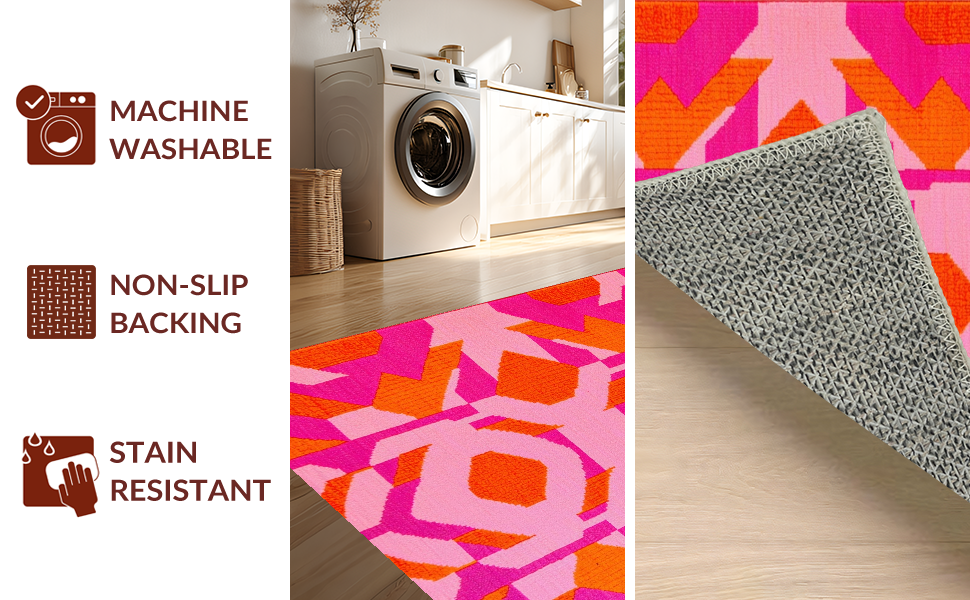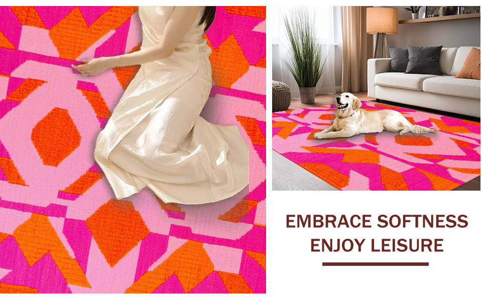 Ultra Soft Area Rug, Non Slip, Stain Resistant, Washable Area Rugs for Living Room, Bedroom, Chic Retro Minimalist Vibe(Pink) Overview: