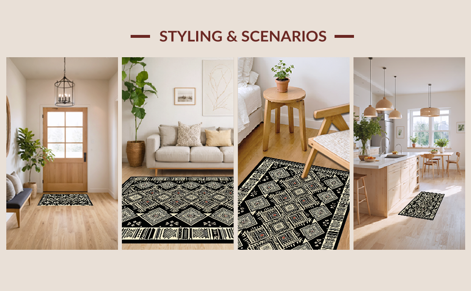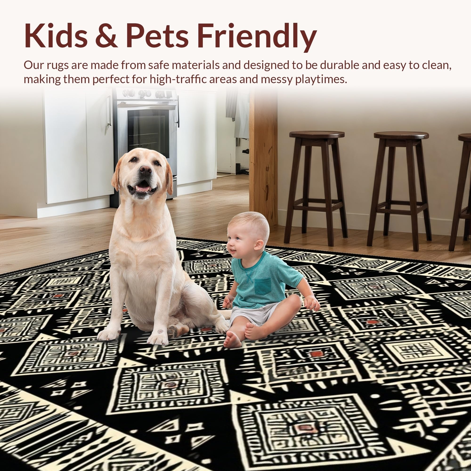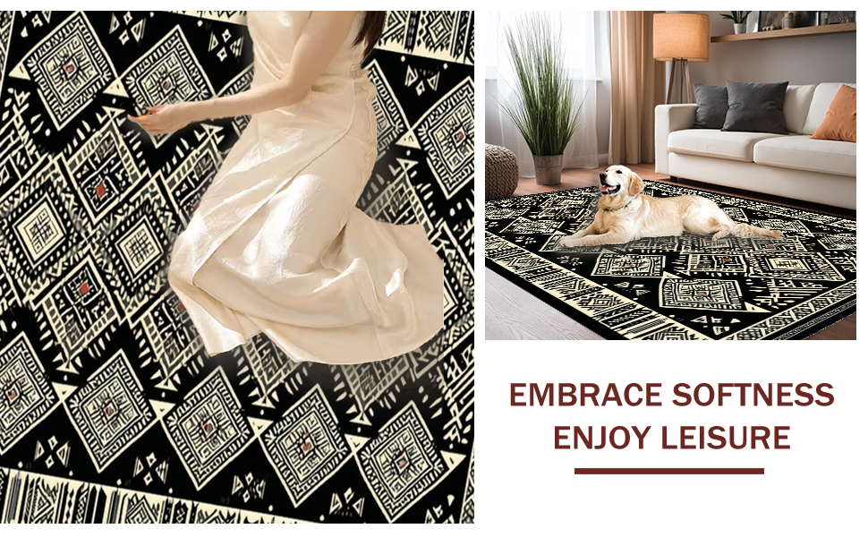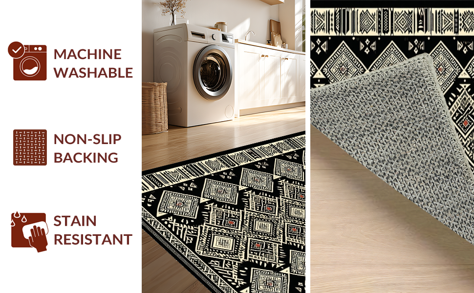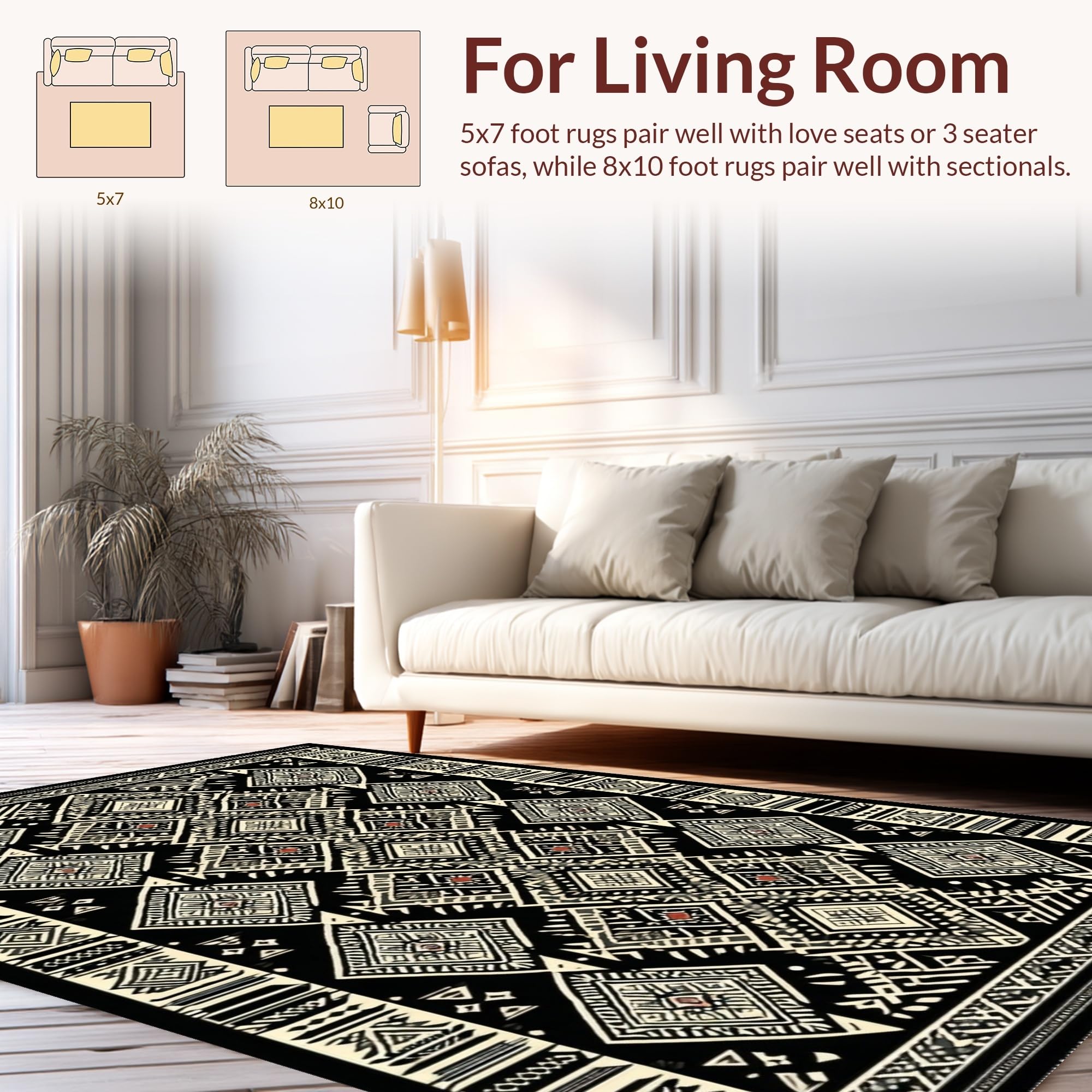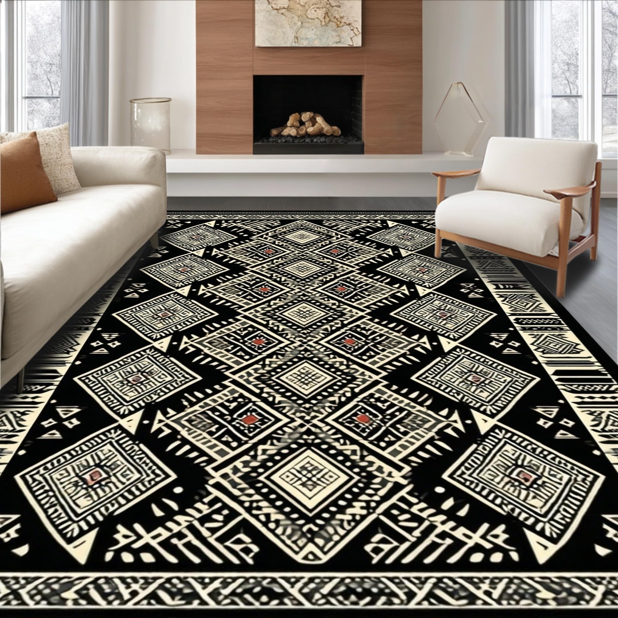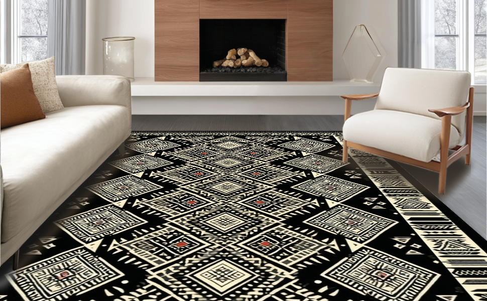 Ultra Soft Area Rug, Non Slip, Stain Resistant, Washable Area Rugs for Living Room, Bedroom, Chic Retro Trellis Aesthetic(Black) Overview: