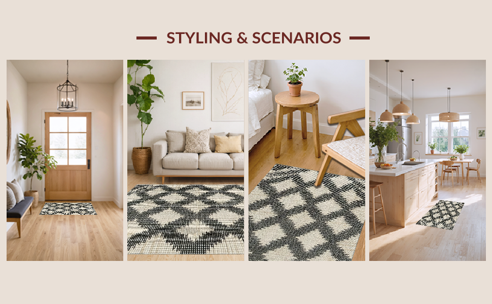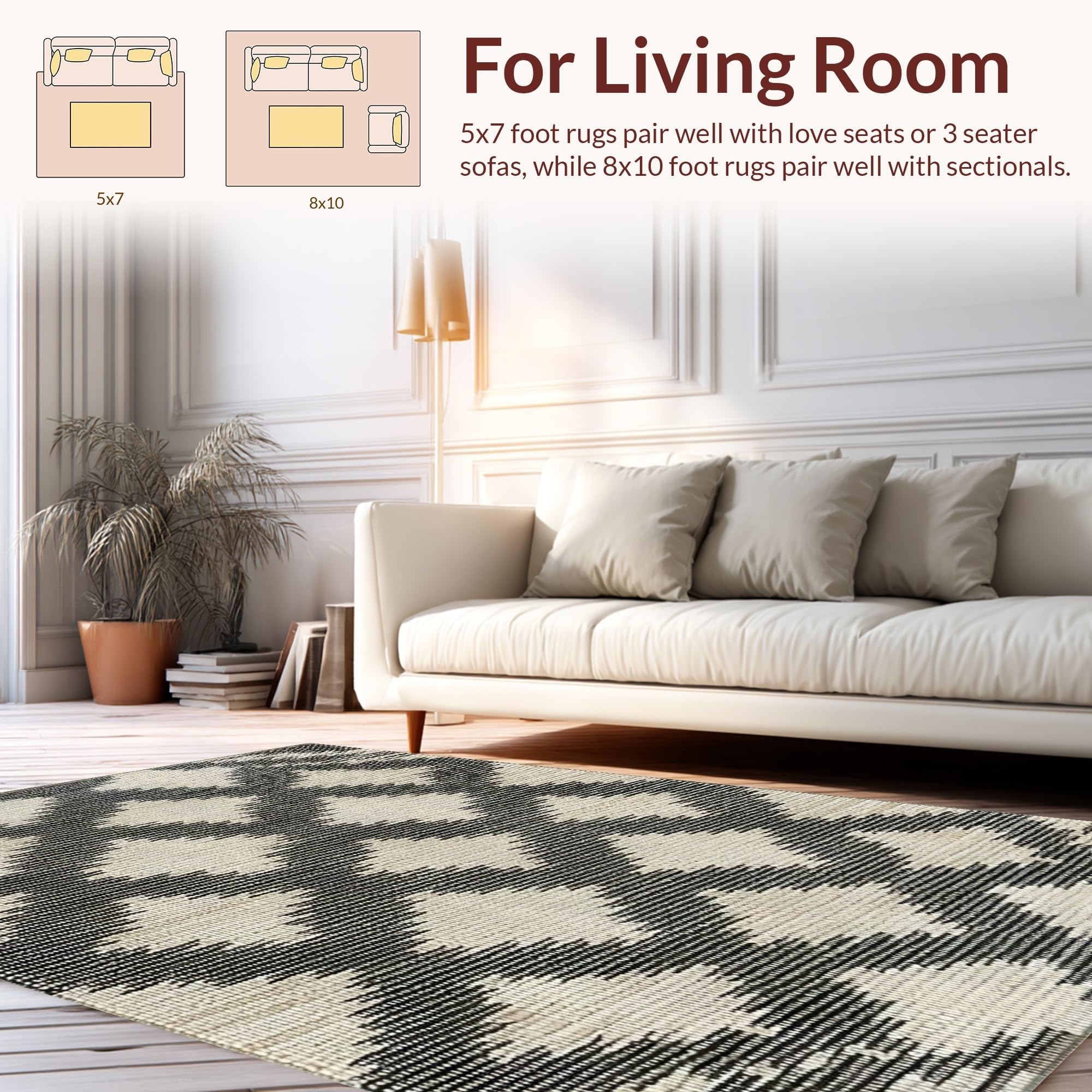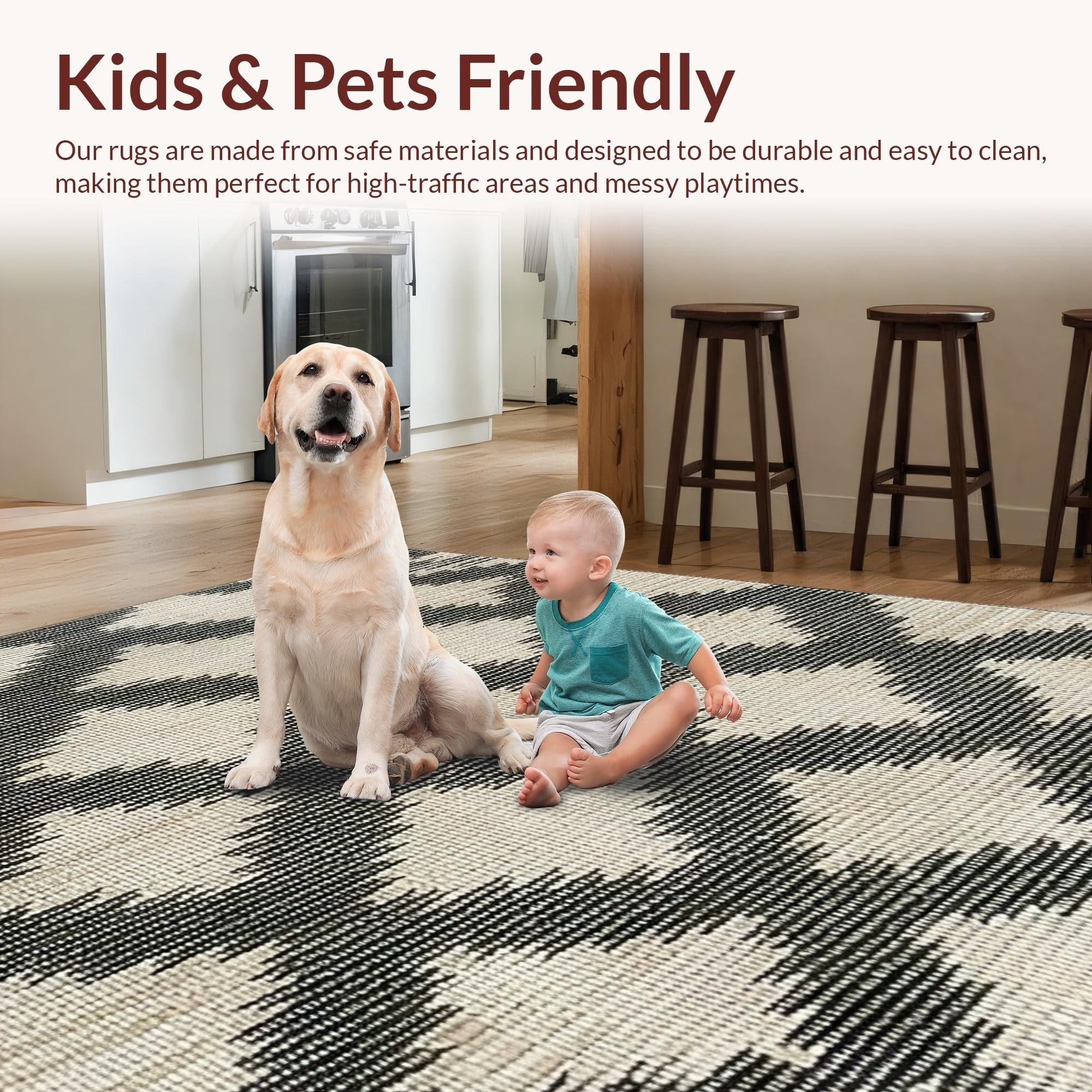 Ultra Soft Area Rug, Non Slip, Stain Resistant, Washable Area Rugs for Living Room, Bedroom, Chic Reversible Geometric Appeal(Beige) Overview: