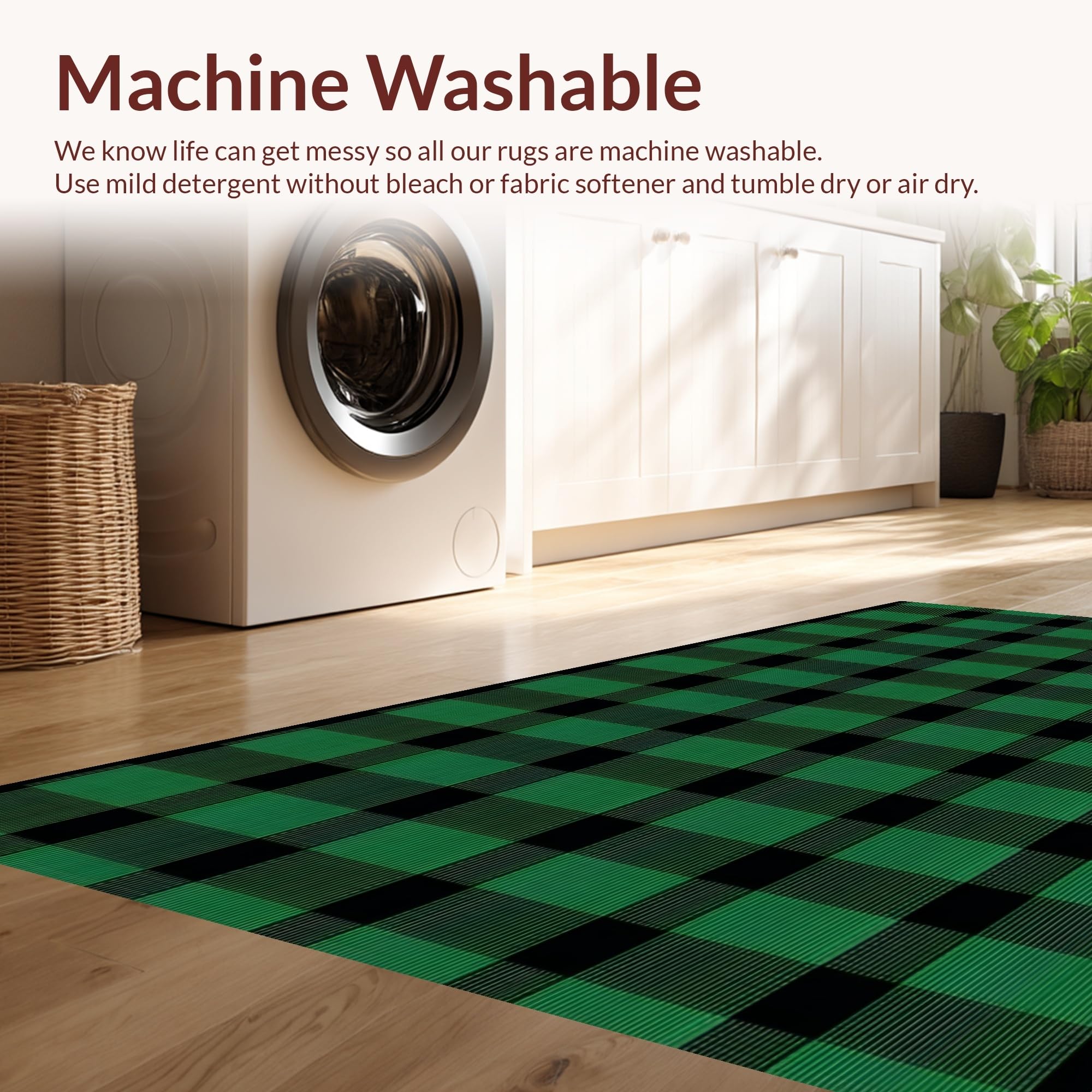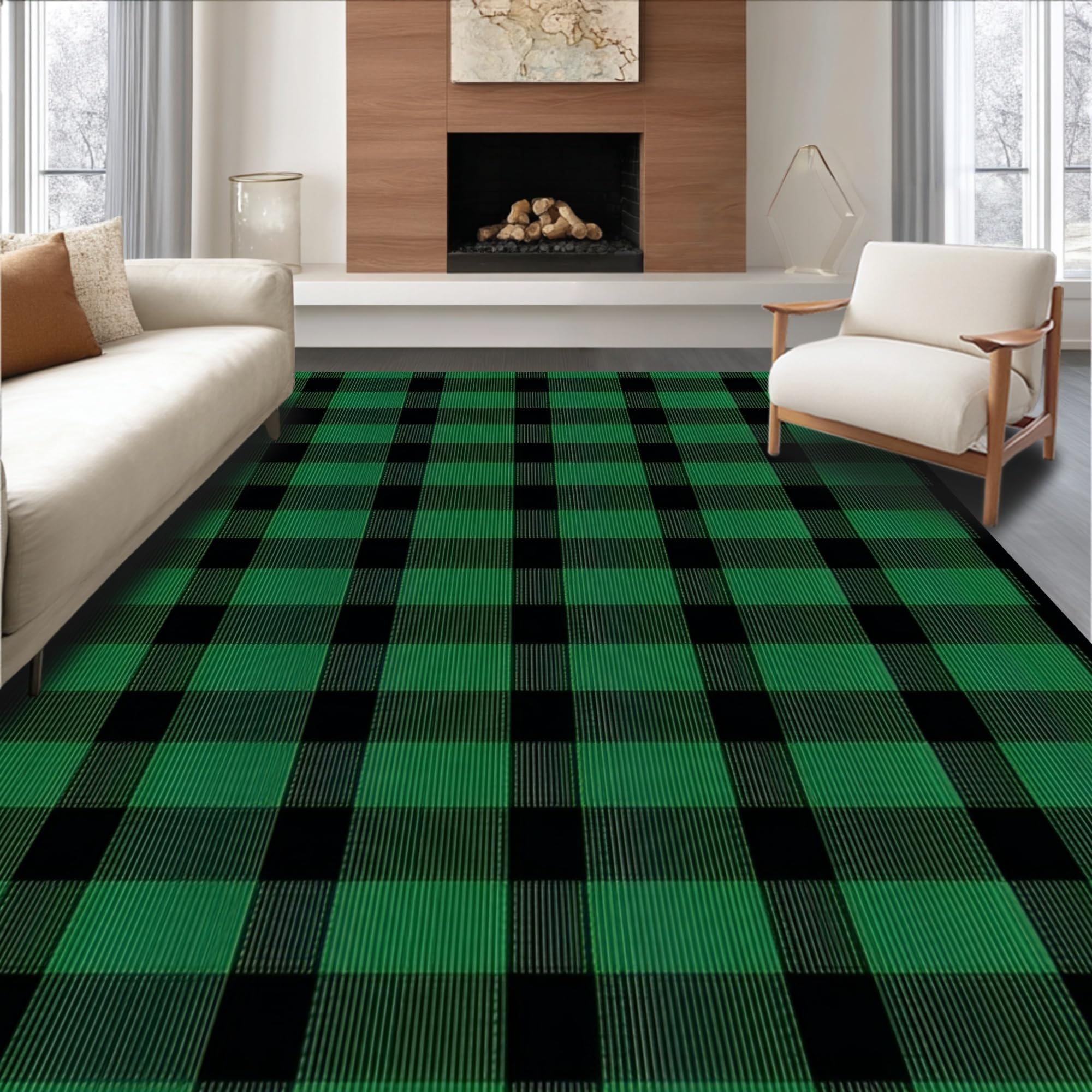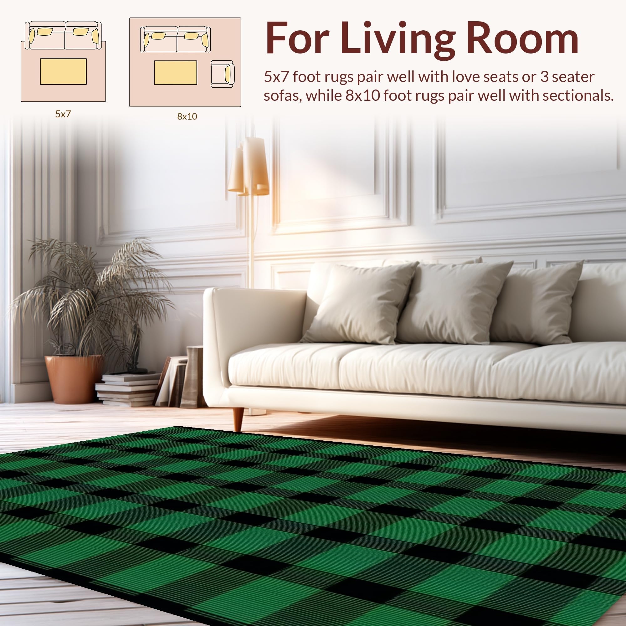 Ultra Soft Area Rug, Non Slip, Stain Resistant, Washable Area Rugs for Living Room, Bedroom, Chic Reversible Plaid Farmhouse Aesthetic(Green) Overview: