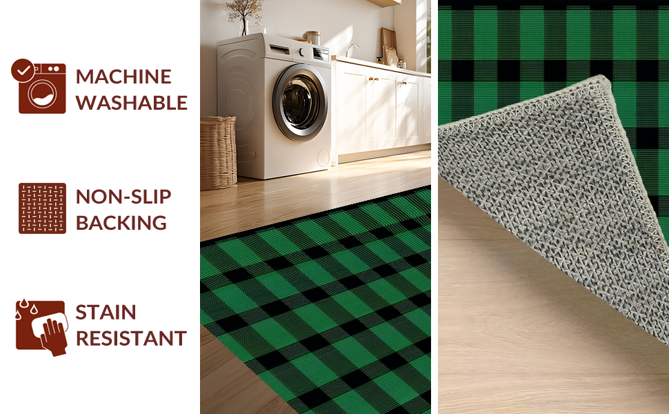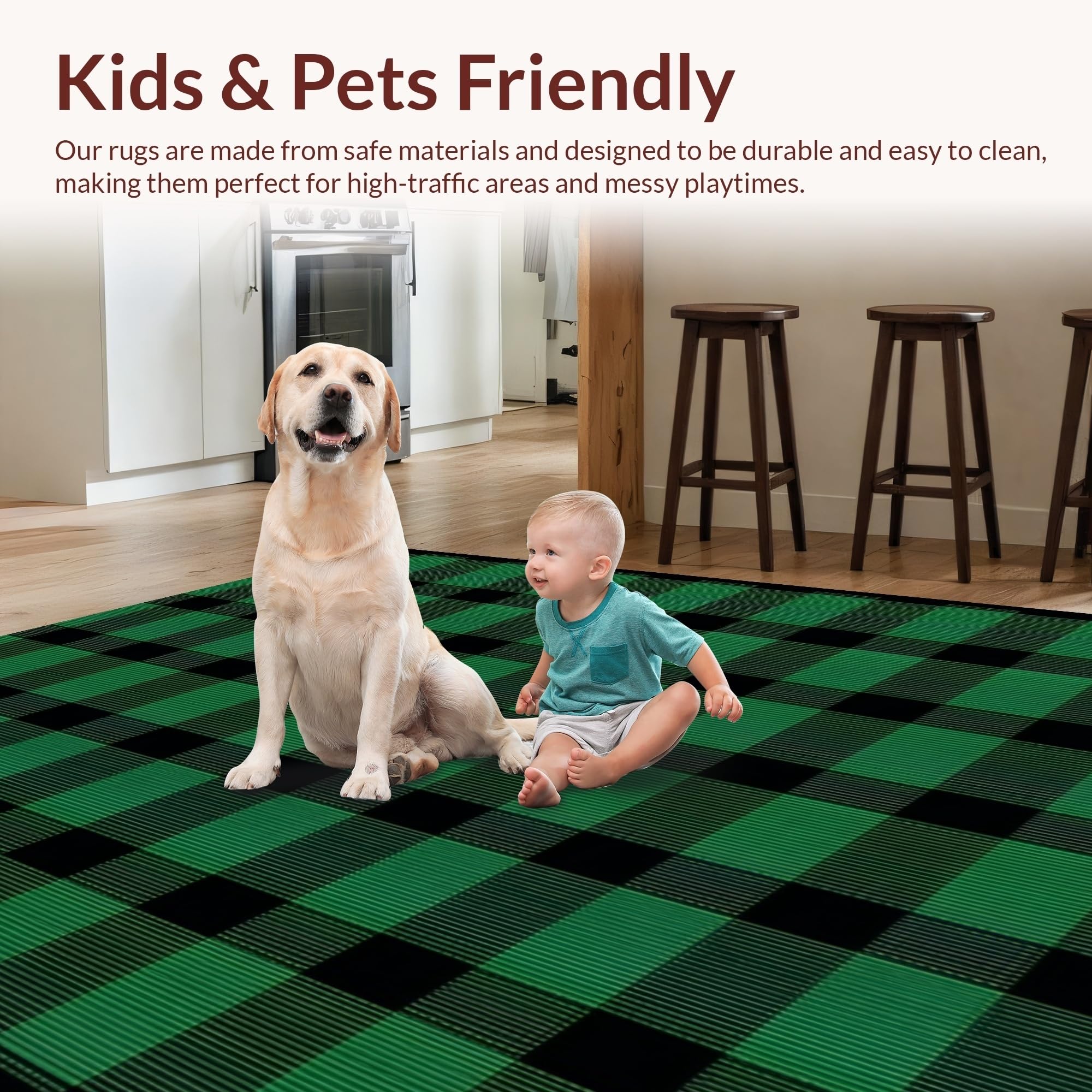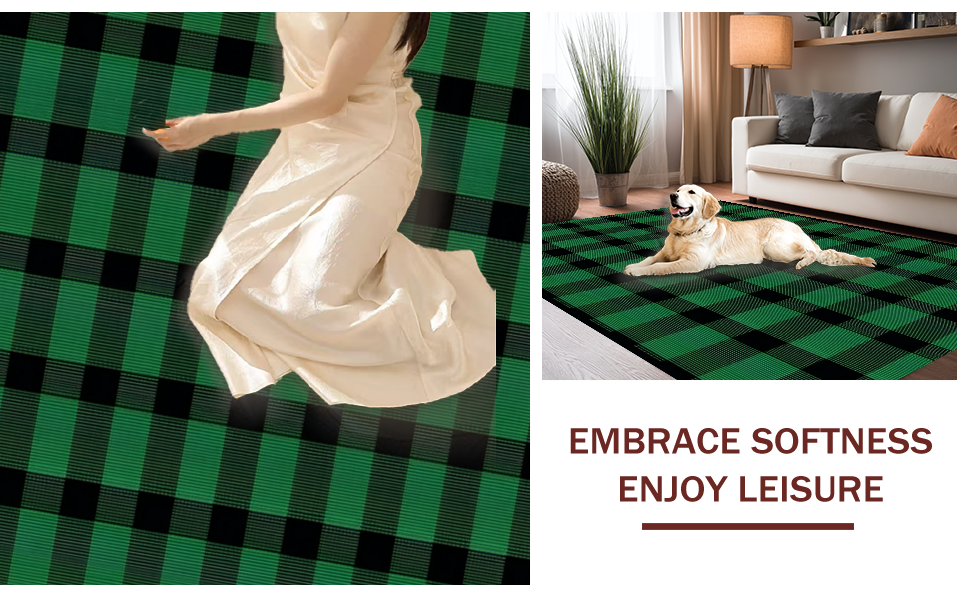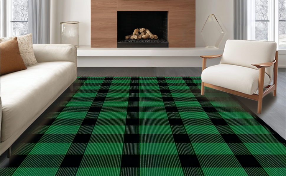 Ultra Soft Area Rug, Non Slip, Stain Resistant, Washable Area Rugs for Living Room, Bedroom, Chic Reversible Plaid Farmhouse Aesthetic(Green) Overview: