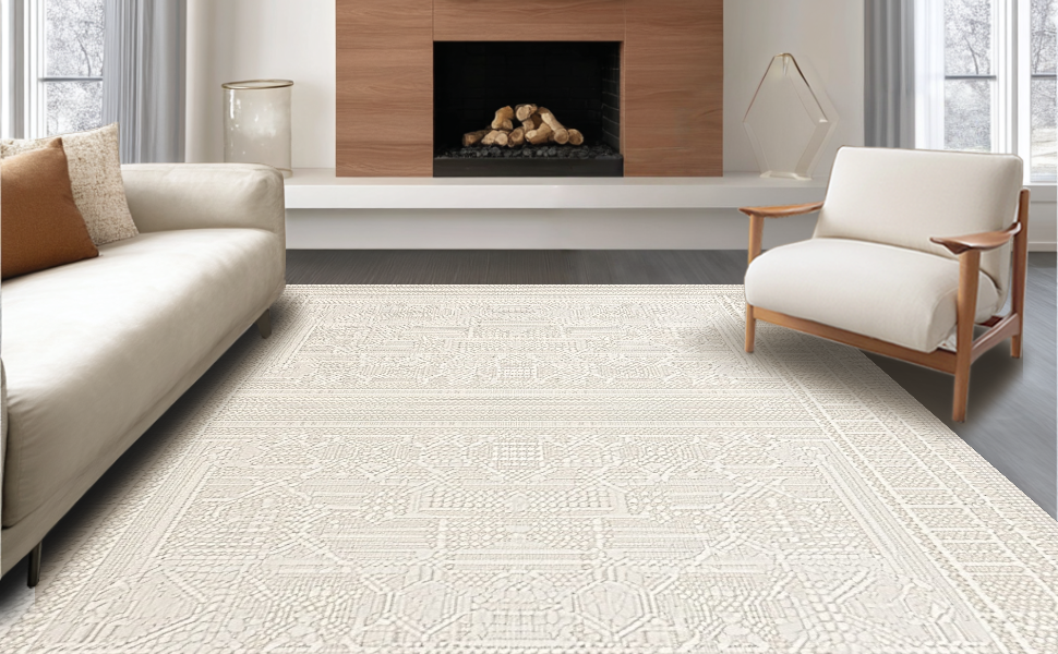Ultra Soft Area Rug, Non Slip, Stain Resistant, Washable Area Rugs for Living Room, Bedroom, Chic Reversible Textured Aesthetic(Beige) Overview: