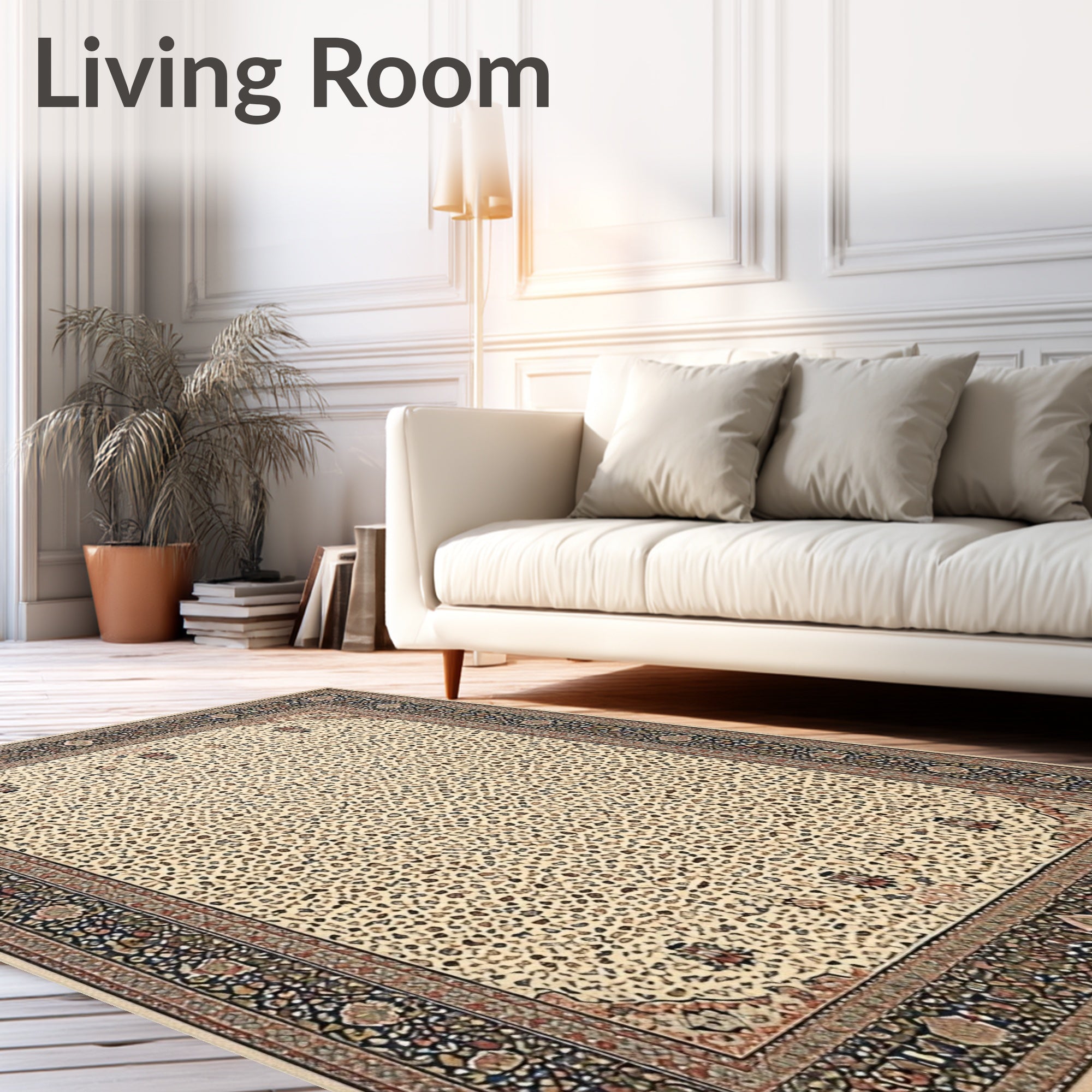 Ultra Soft Area Rug, Non Slip, Stain Resistant, Washable Area Rugs for Living Room, Bedroom, Chic Round Area with a Vintage Style Border and Spotted Inner(Beige) Overview: