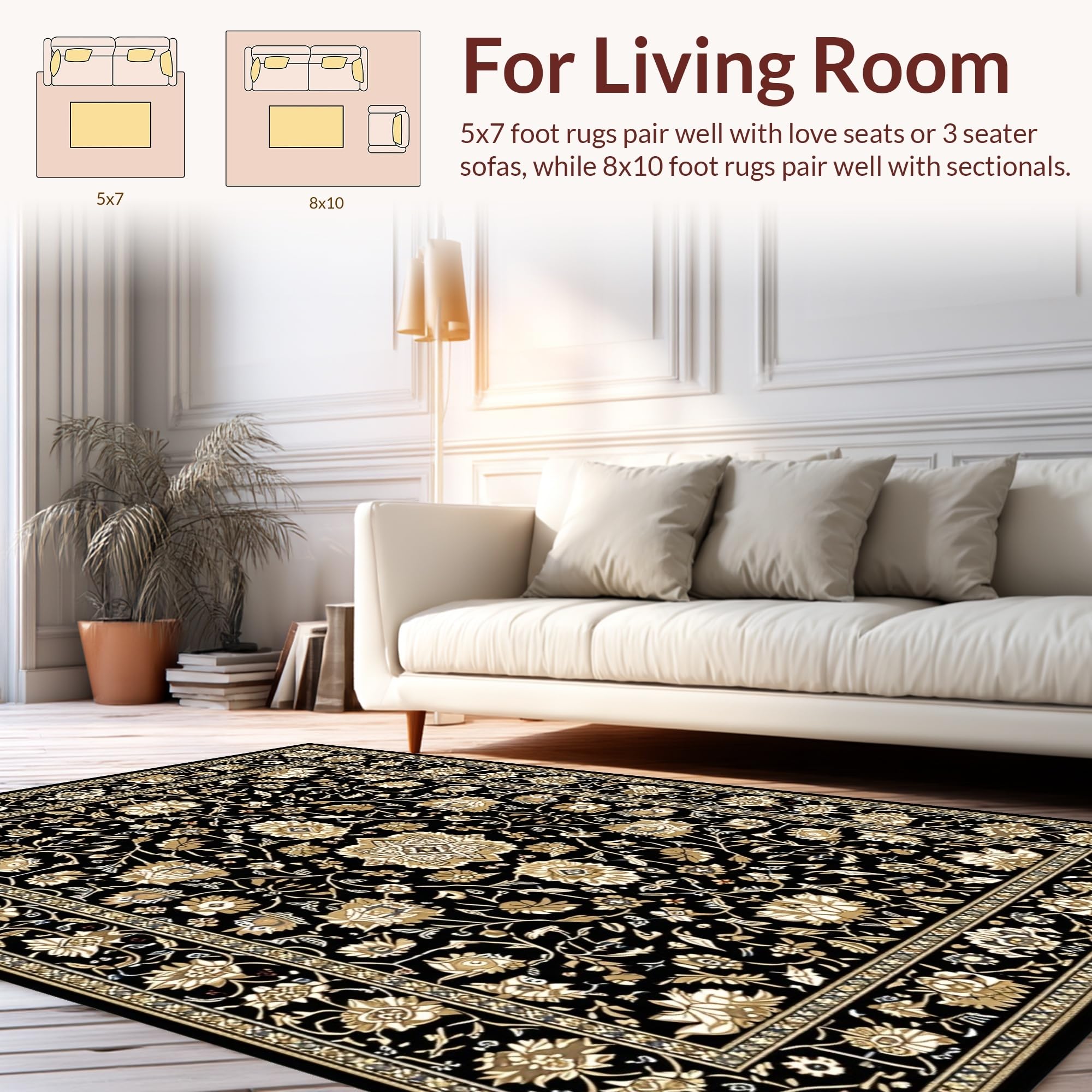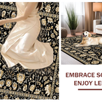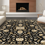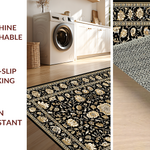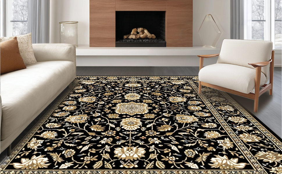 Ultra Soft Area Rug, Non Slip, Stain Resistant, Washable Area Rugs for Living Room, Bedroom, Chic Rustic Black Botanical Print(Black) Overview:
