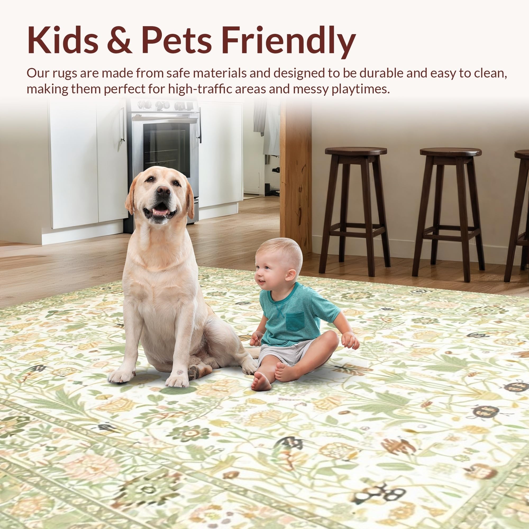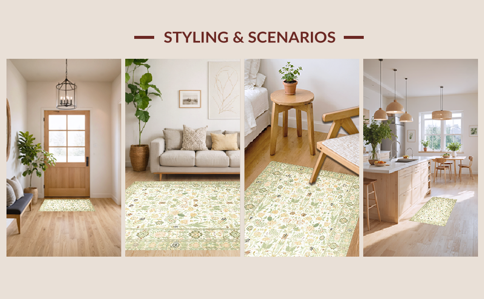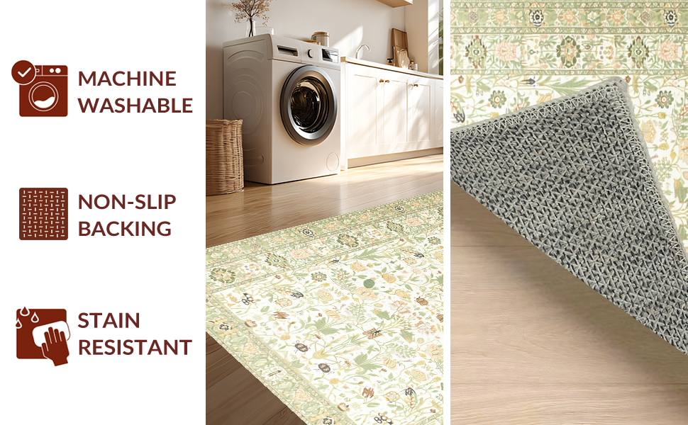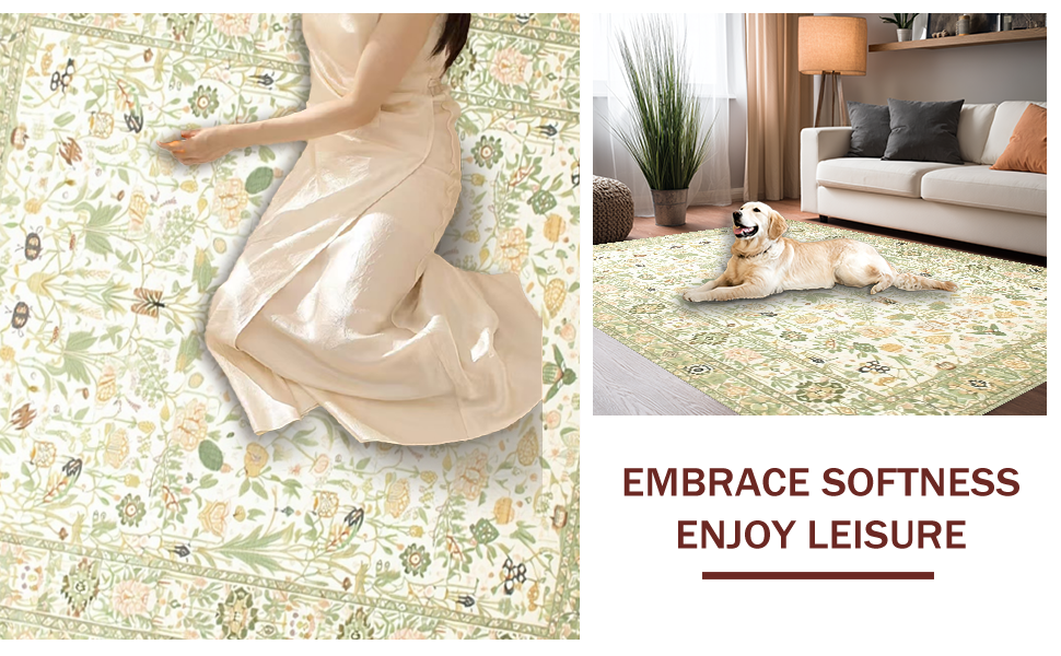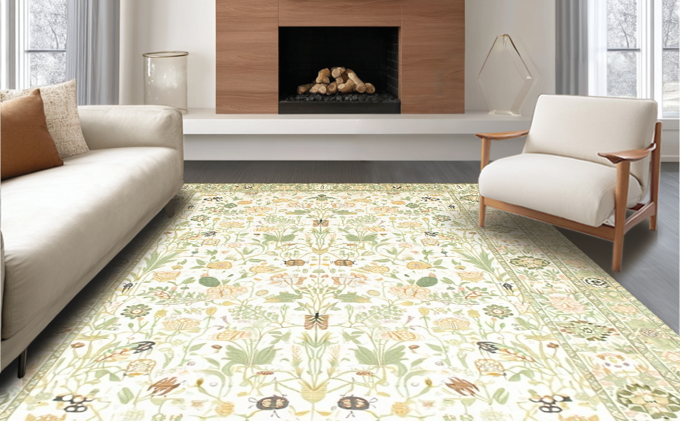 Ultra Soft Area Rug, Non Slip, Stain Resistant, Washable Area Rugs for Living Room, Bedroom, Chic Rustic Botanical Print Accent(Ivory) Overview: