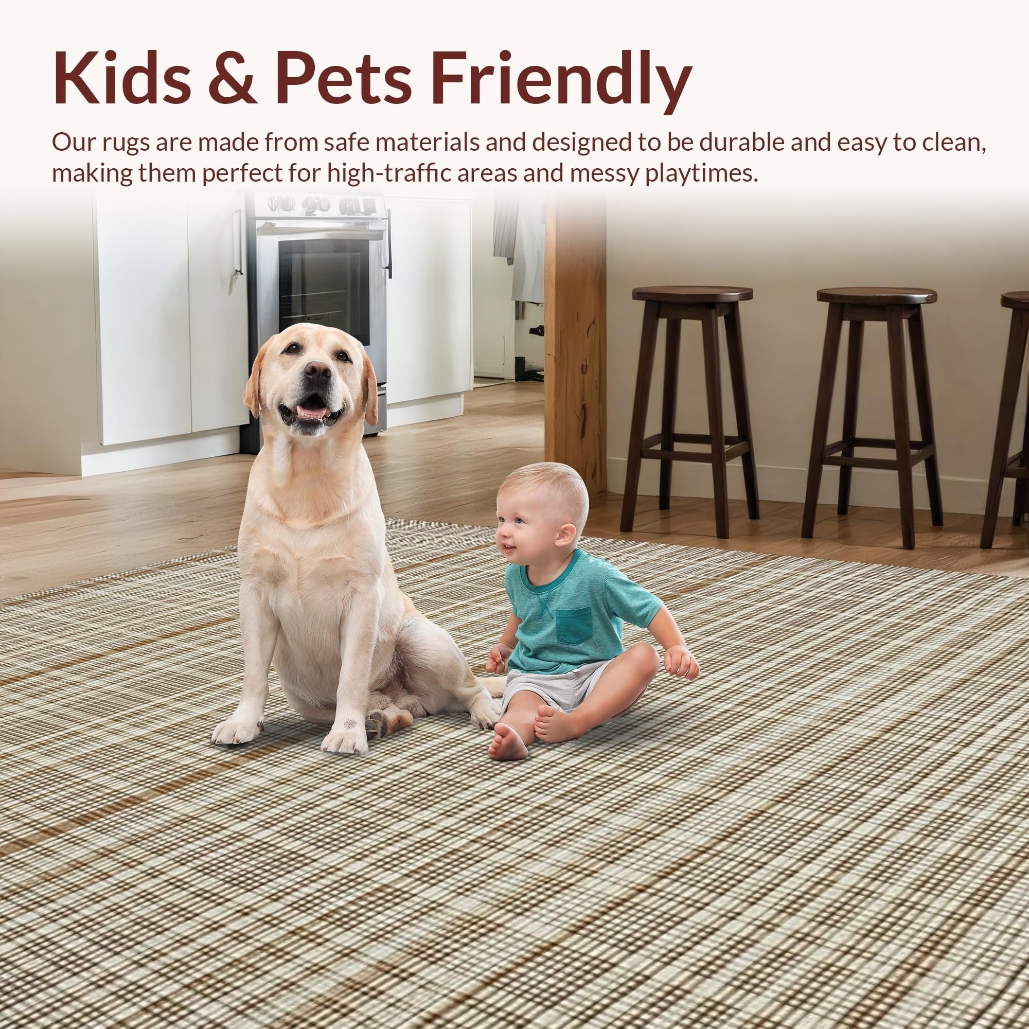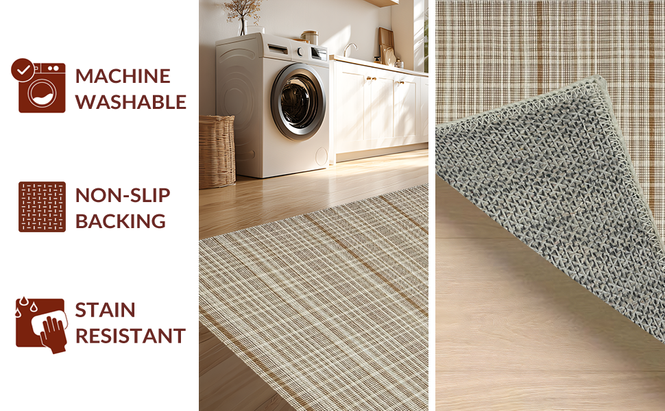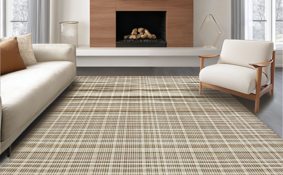 Ultra Soft Area Rug, Non Slip, Stain Resistant, Washable Area Rugs for Living Room, Bedroom, Chic Rustic Checked Aesthetic(Beige) Overview:
