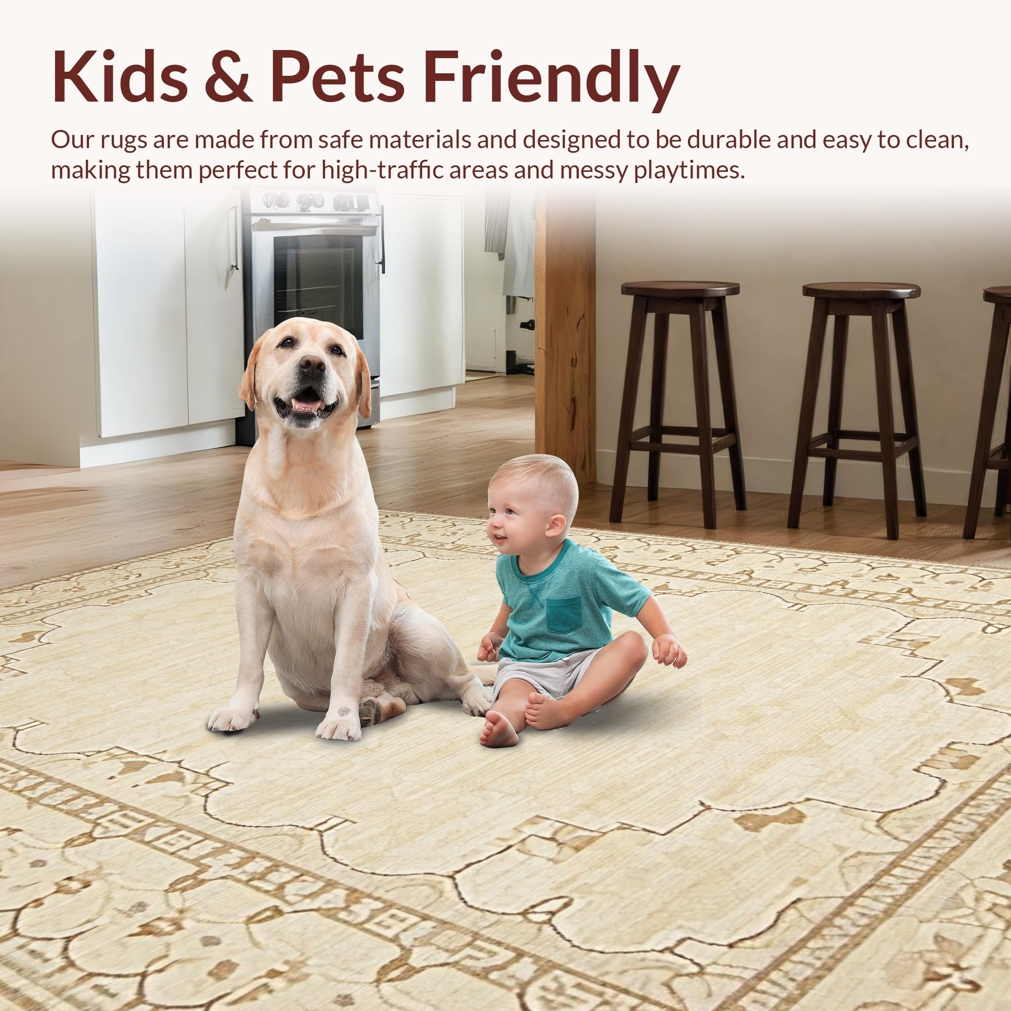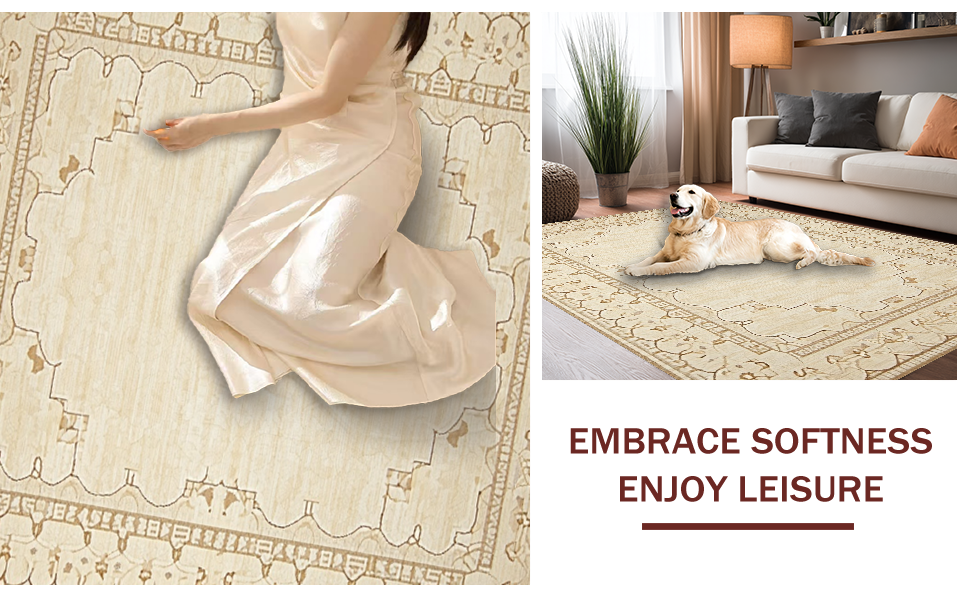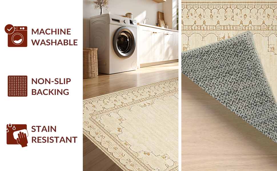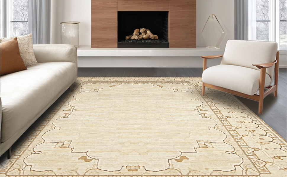Ultra Soft Area Rug, Non Slip, Stain Resistant, Washable Area Rugs for Living Room, Bedroom, Chic Rustic Coastal Influence(Beige) Overview: