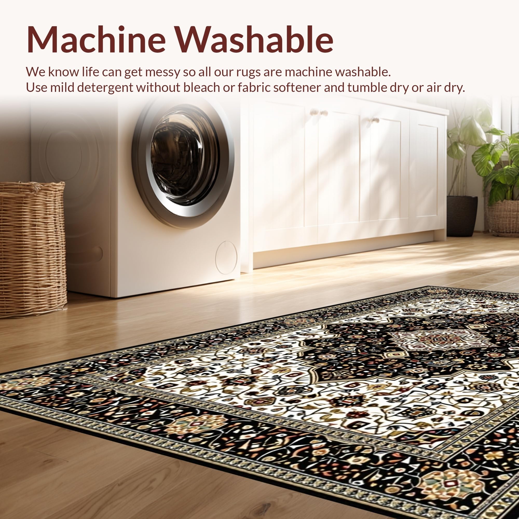 - Machine Washable: Our rugs can be easily thrown in the wash machine.