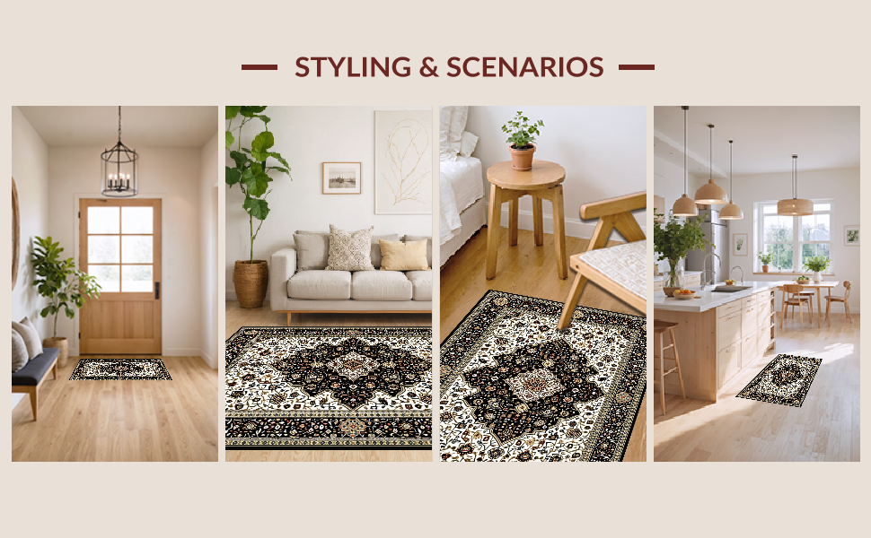 Ultra Soft Area Rug, Non Slip, Stain Resistant, Washable Area Rugs for Living Room, Bedroom, Chic Rustic Diamond Pattern(Black) Overview: