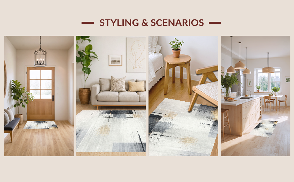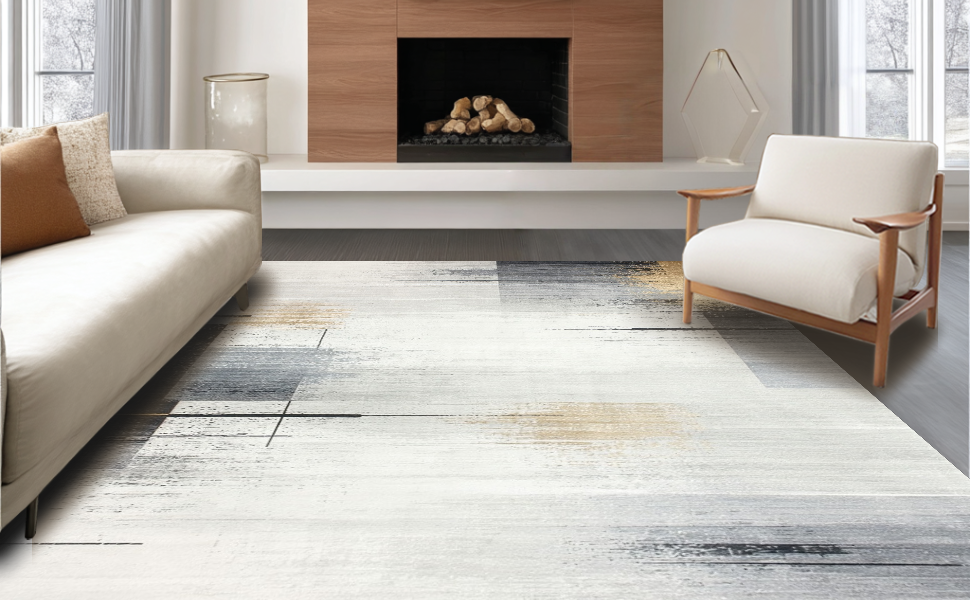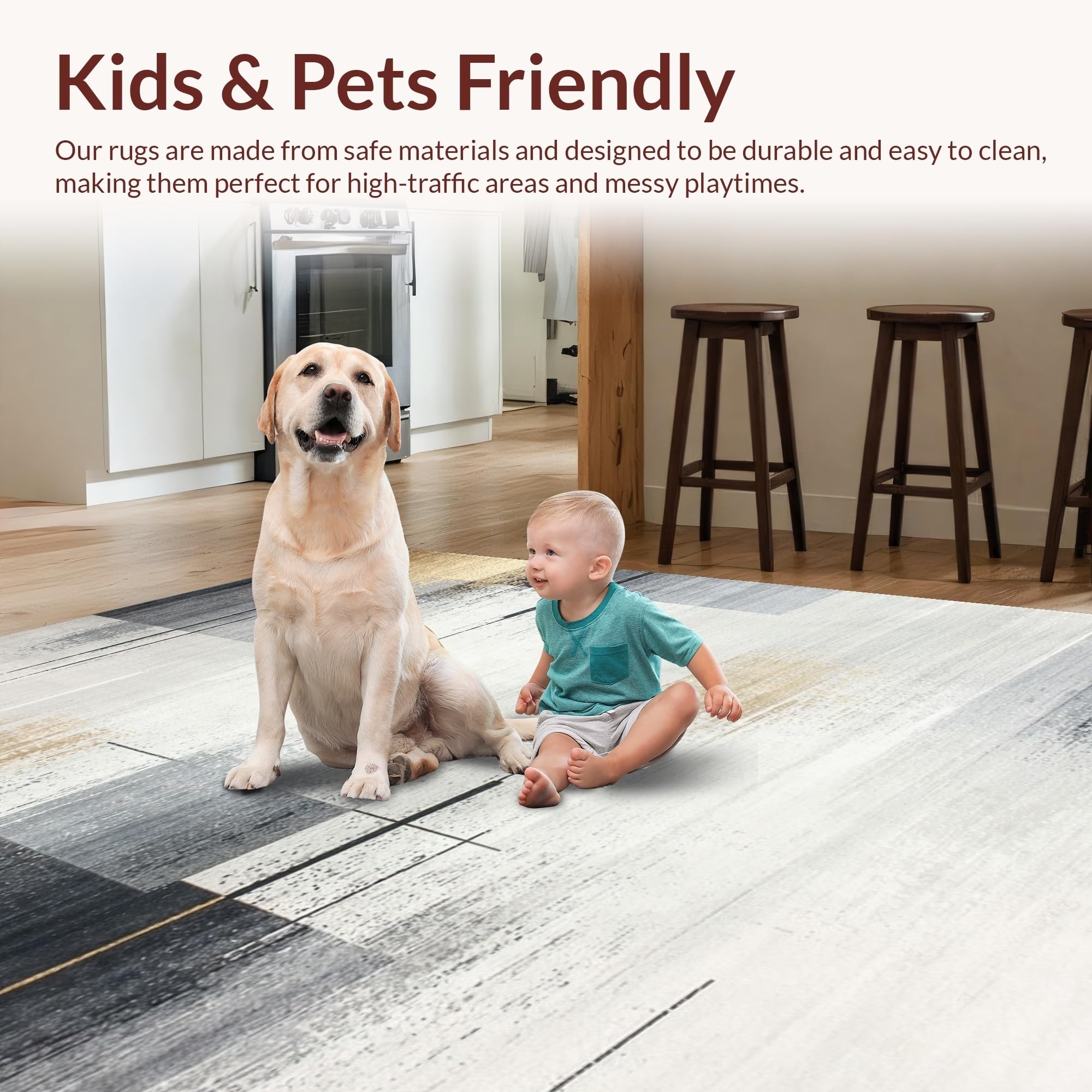 Ultra Soft Area Rug, Non Slip, Stain Resistant, Washable Area Rugs for Living Room, Bedroom, Chic Rustic Distressed Design(Gray) Overview: