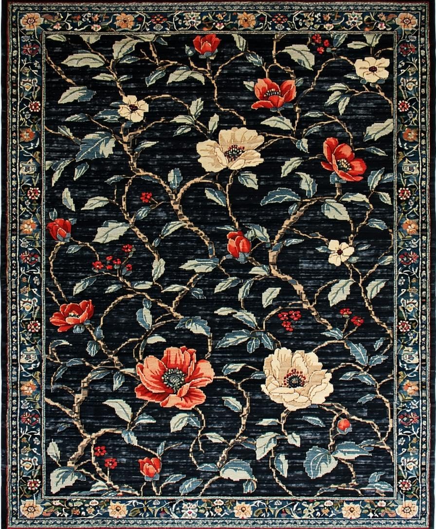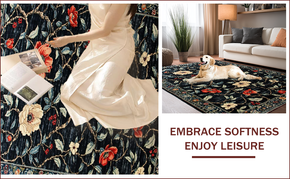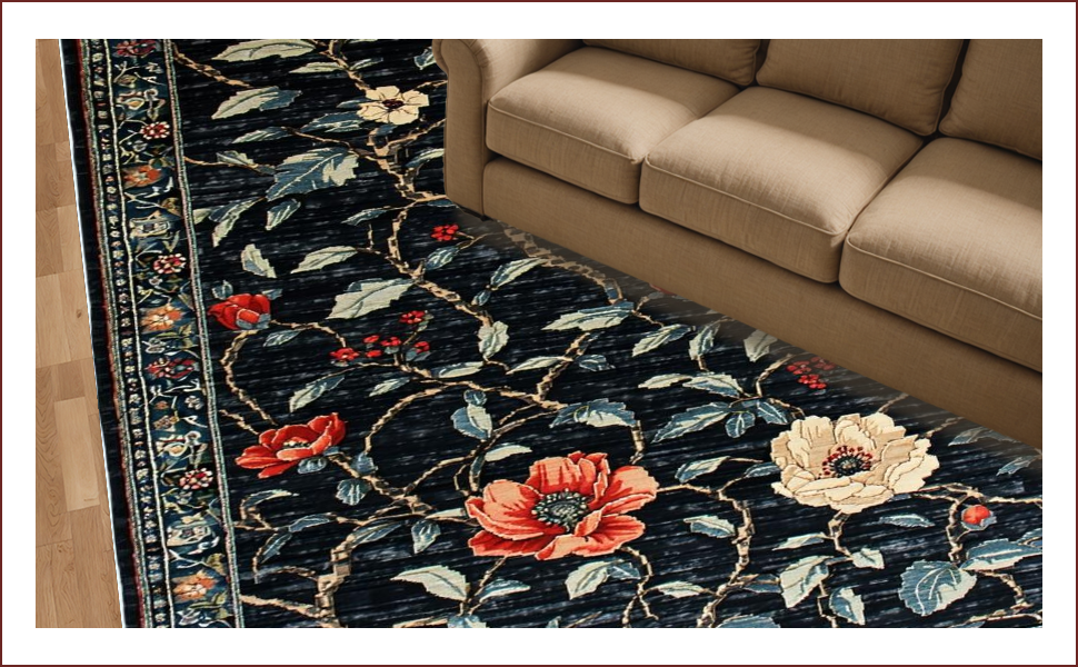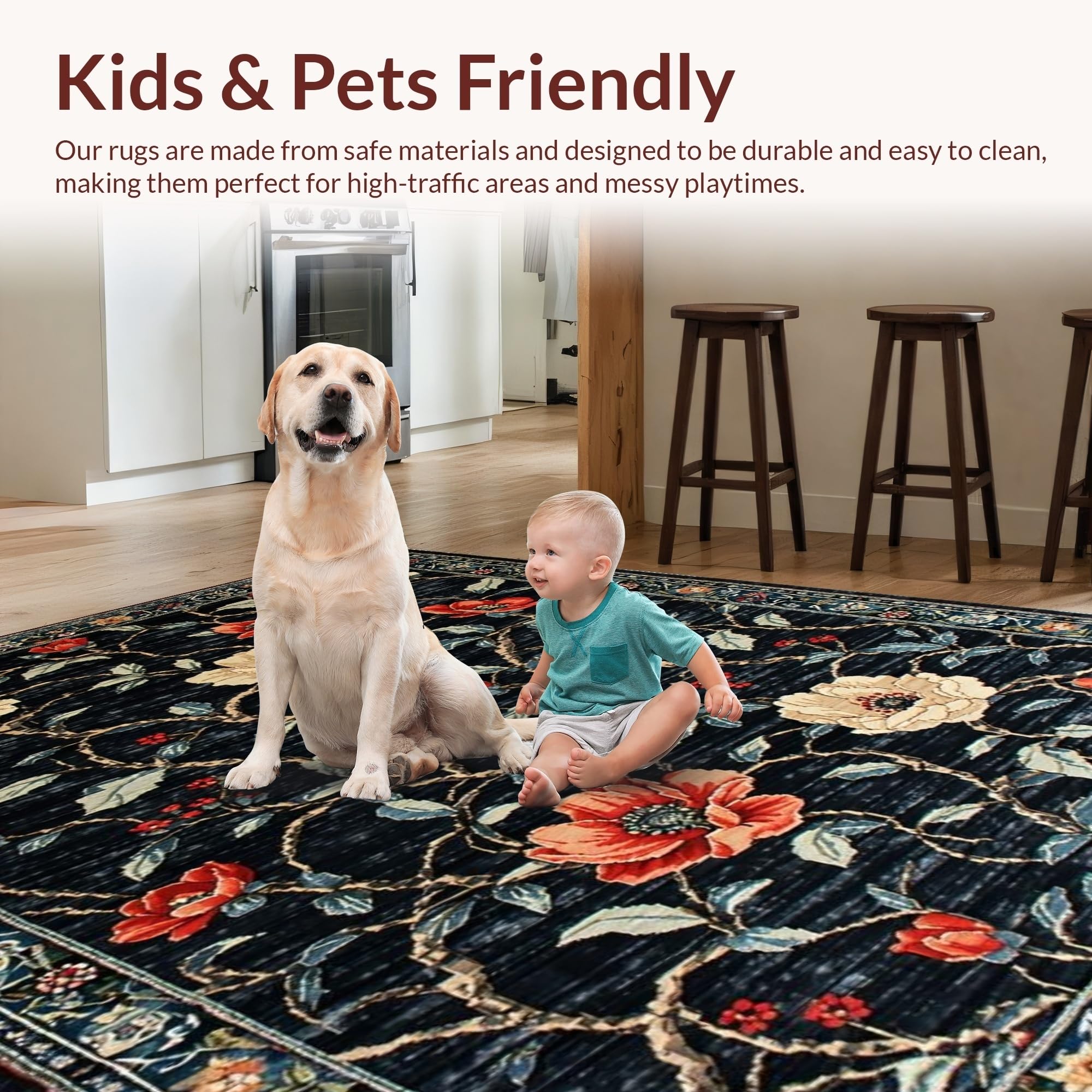 Ultra Soft Area Rug, Non Slip, Stain Resistant, Washable Area Rugs for Living Room, Bedroom, Chic Rustic Floral Accents(Black) Overview: