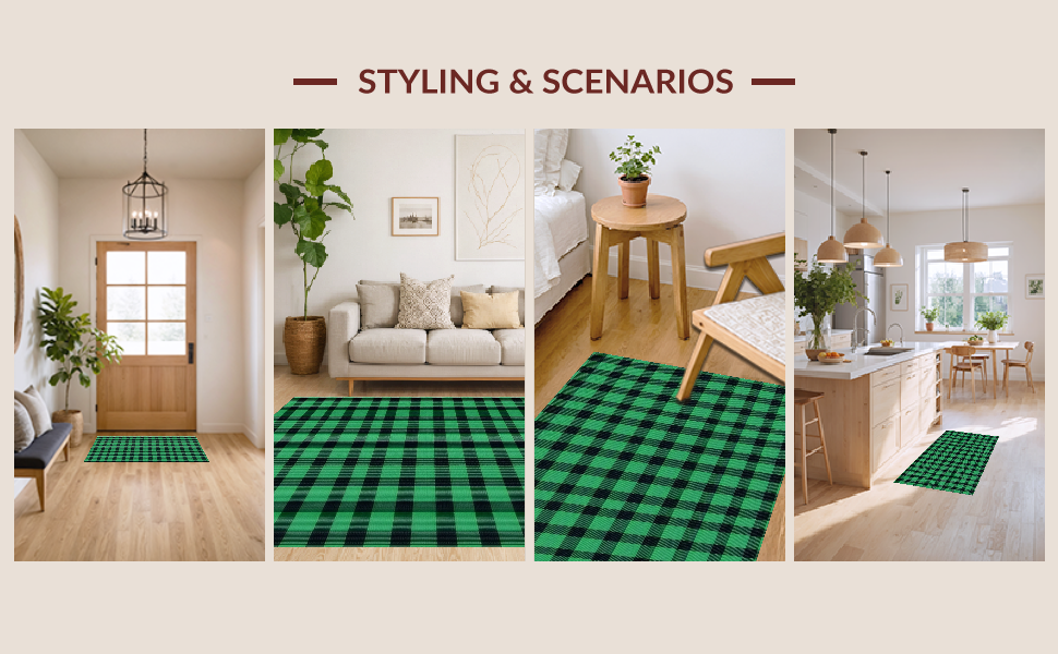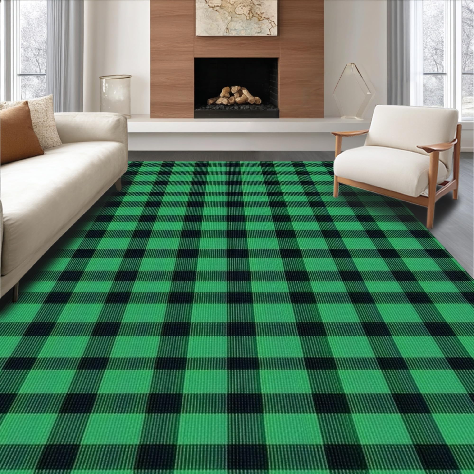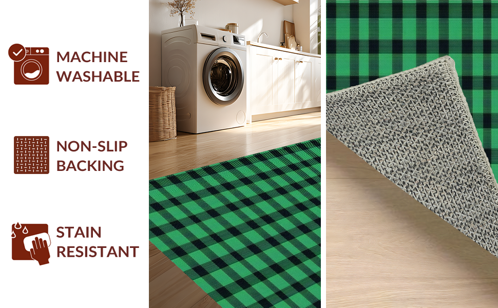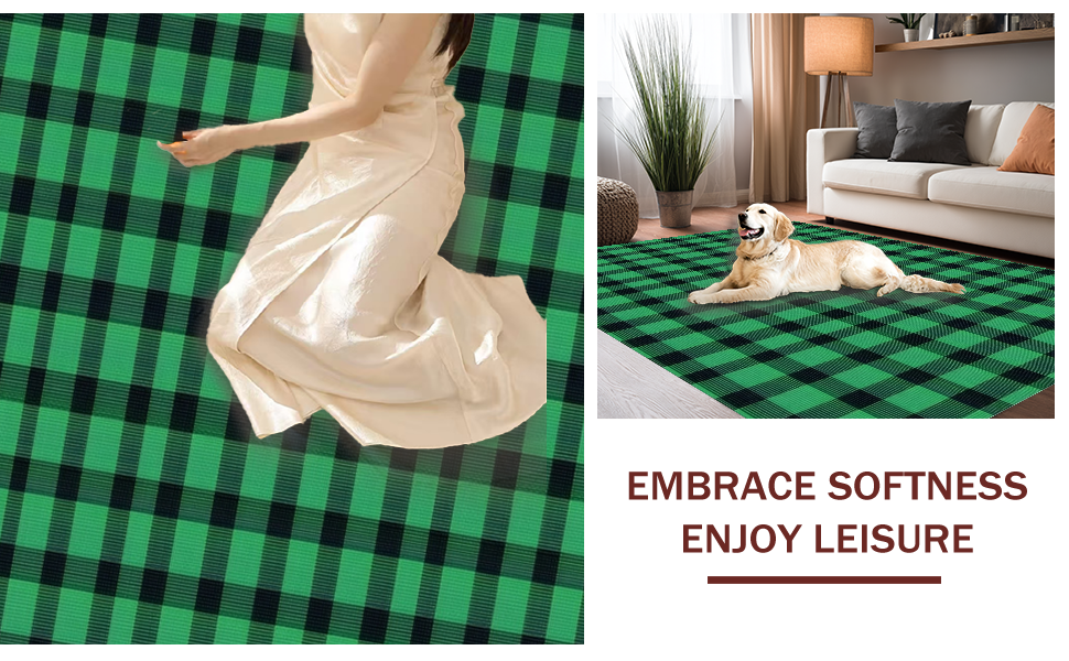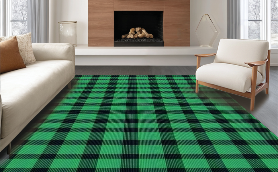 Ultra Soft Area Rug, Non Slip, Stain Resistant, Washable Area Rugs for Living Room, Bedroom, Chic Rustic Green Plaid Aesthetic(Green) Overview: