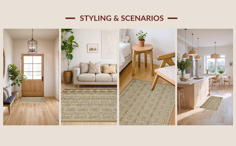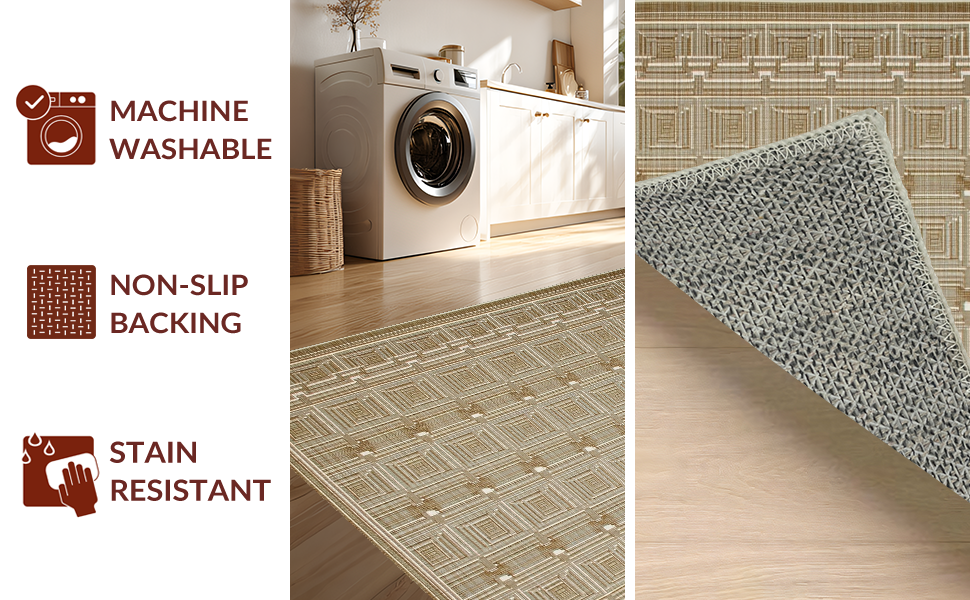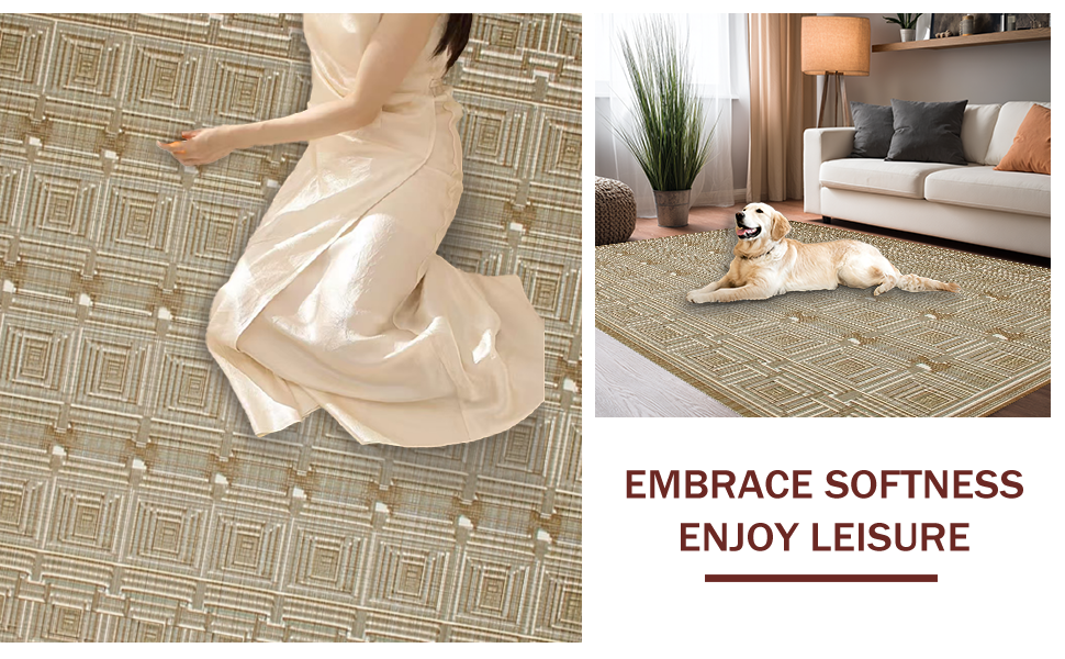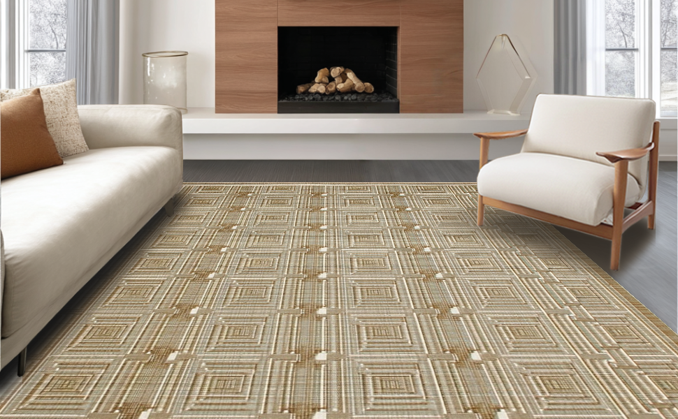 Ultra Soft Area Rug, Non Slip, Stain Resistant, Washable Area Rugs for Living Room, Bedroom, Chic Rustic Lattice Design Style(Beige) Overview: