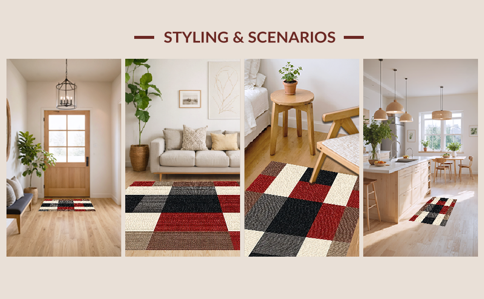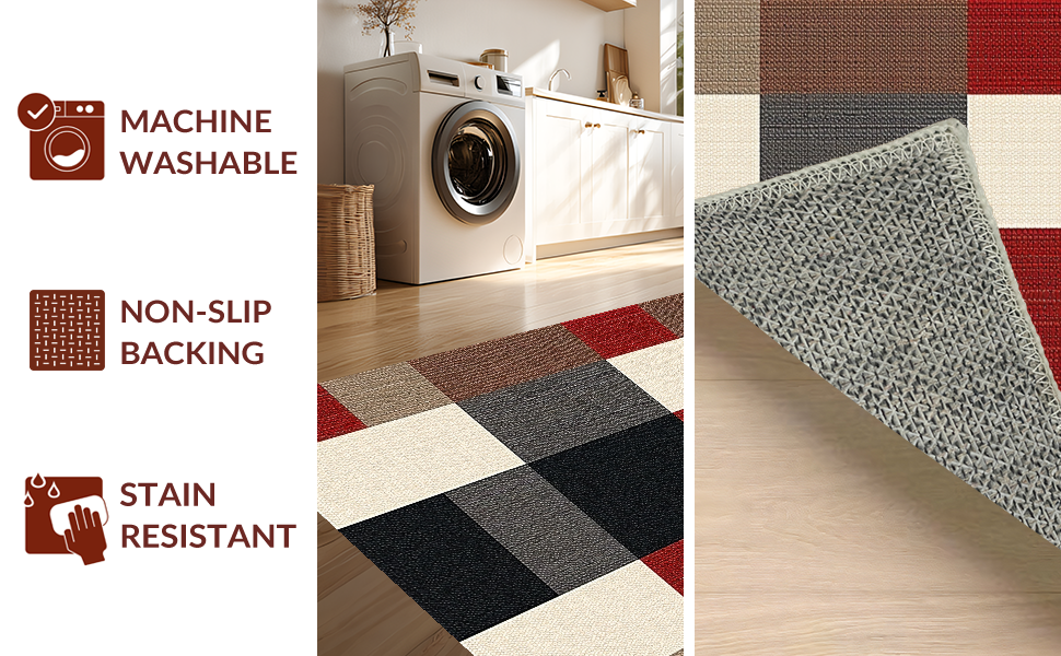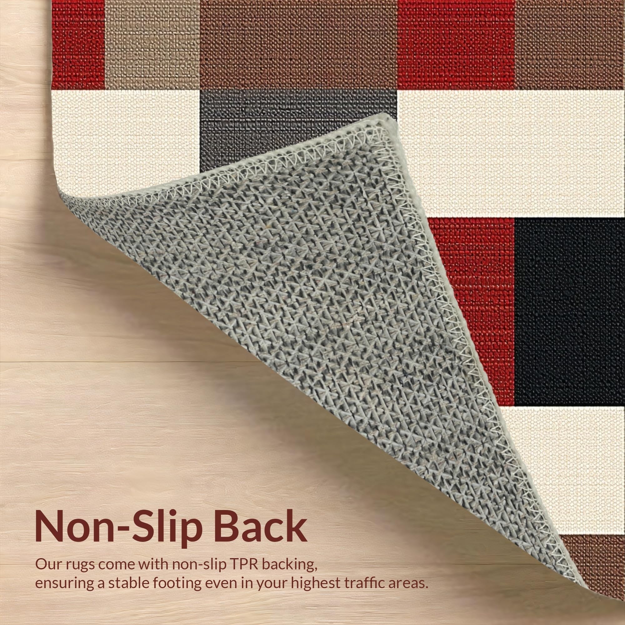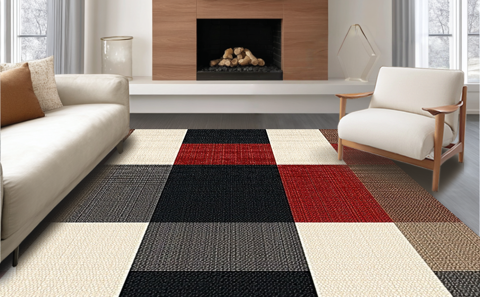Ultra Soft Area Rug, Non Slip, Stain Resistant, Washable Area Rugs for Living Room, Bedroom, Chic Rustic Monochrome Checker Design(Beige) Overview: