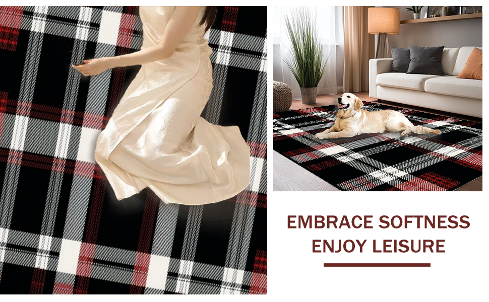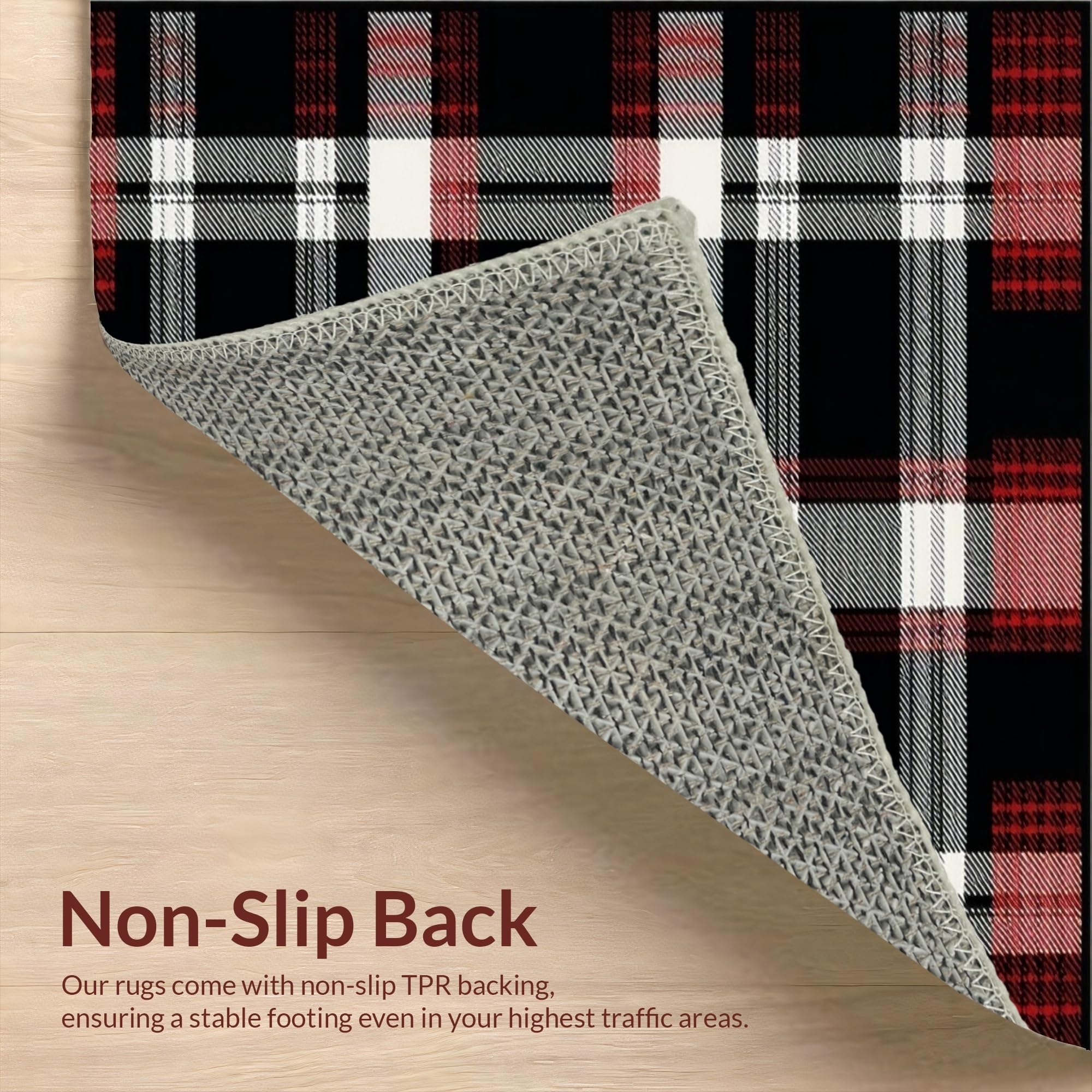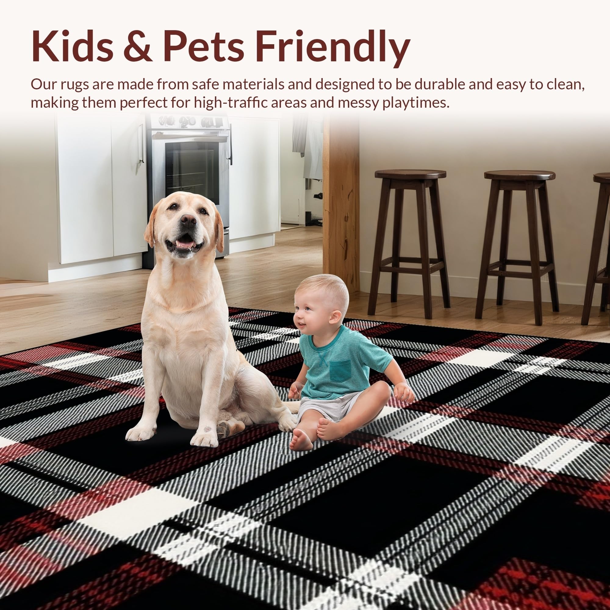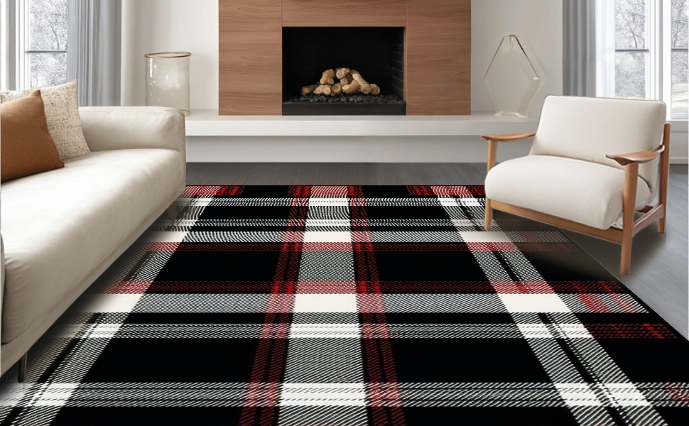 Ultra Soft Area Rug, Non Slip, Stain Resistant, Washable Area Rugs for Living Room, Bedroom, Chic Rustic Plaid Arrangement(Black) Overview: