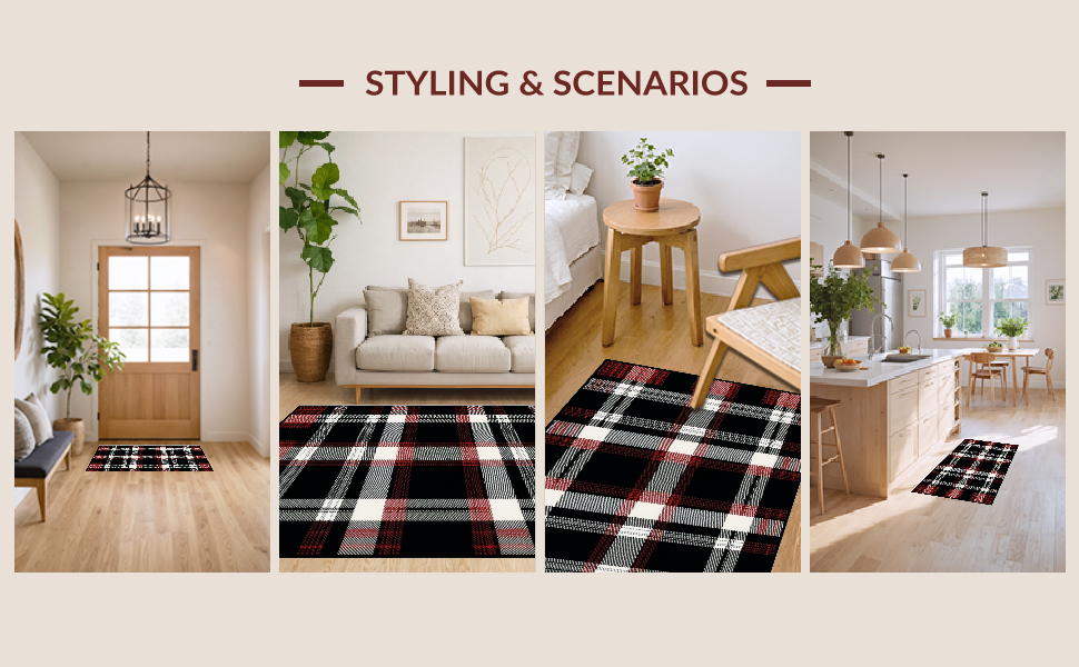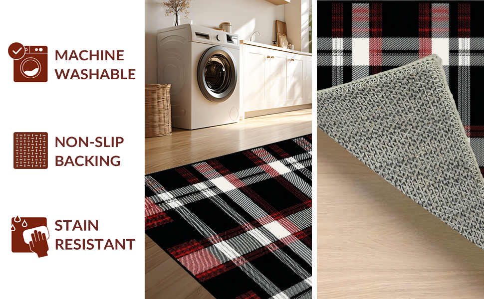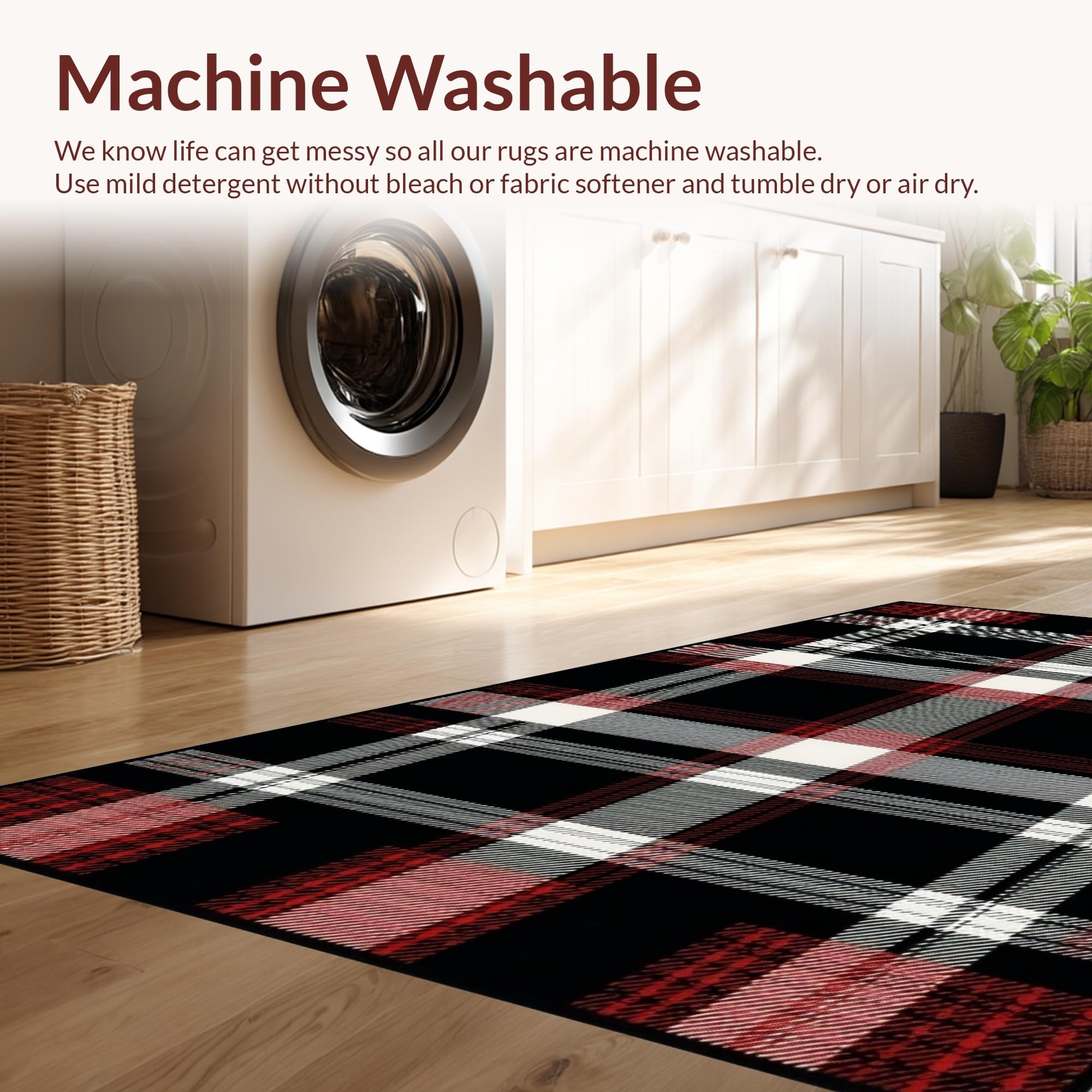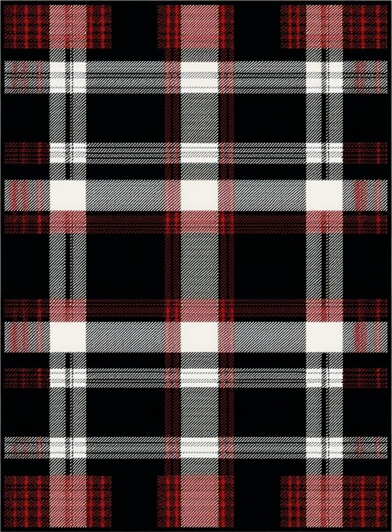 Ultra Soft Area Rug, Non Slip, Stain Resistant, Washable Area Rugs for Living Room, Bedroom, Chic Rustic Plaid Arrangement(Black) Overview: