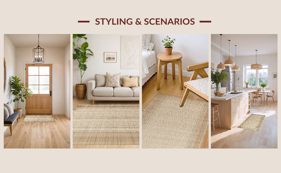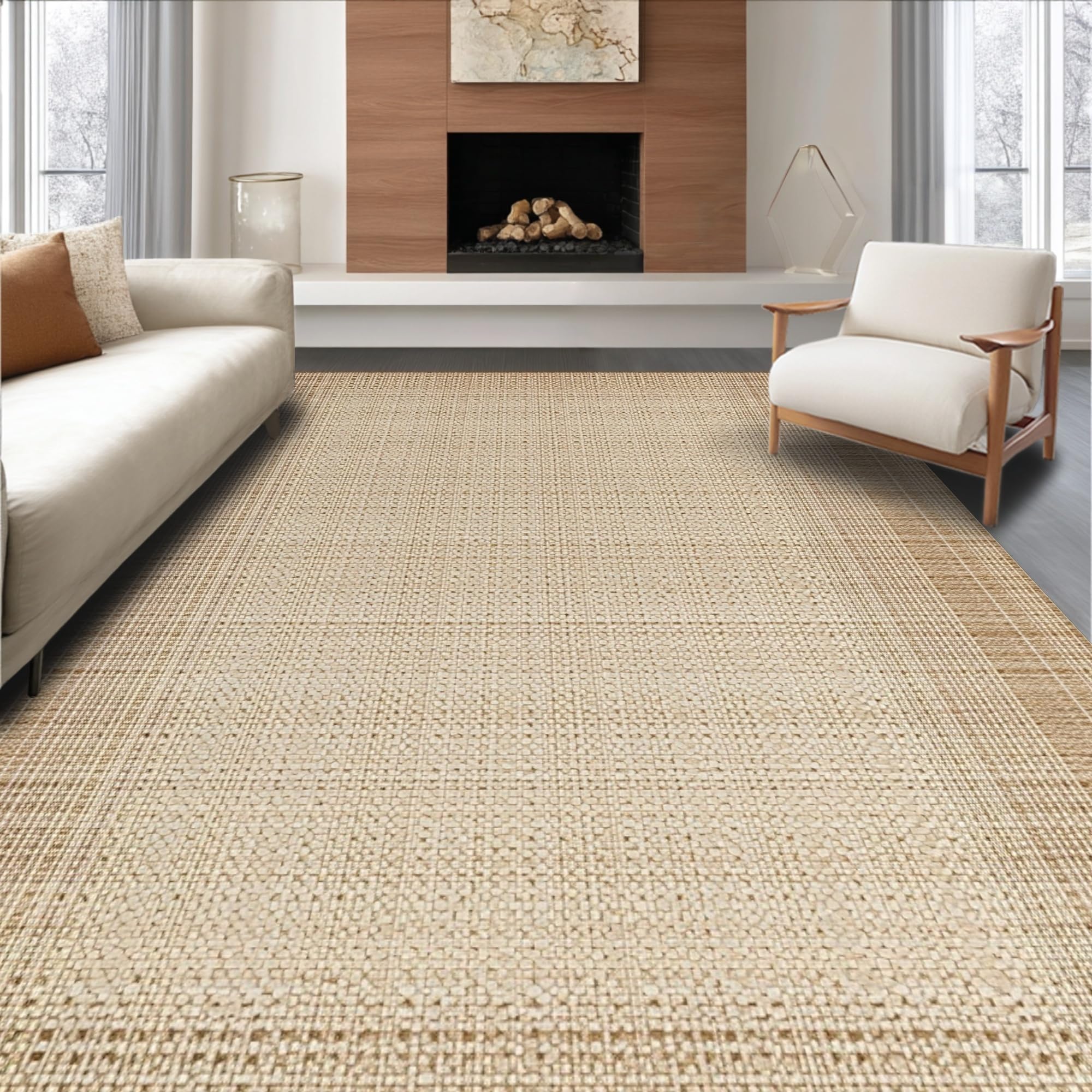 Ultra Soft Area Rug, Non Slip, Stain Resistant, Washable Area Rugs for Living Room, Bedroom, Chic Rustic Tassel Accent Piece(Beige) Overview: