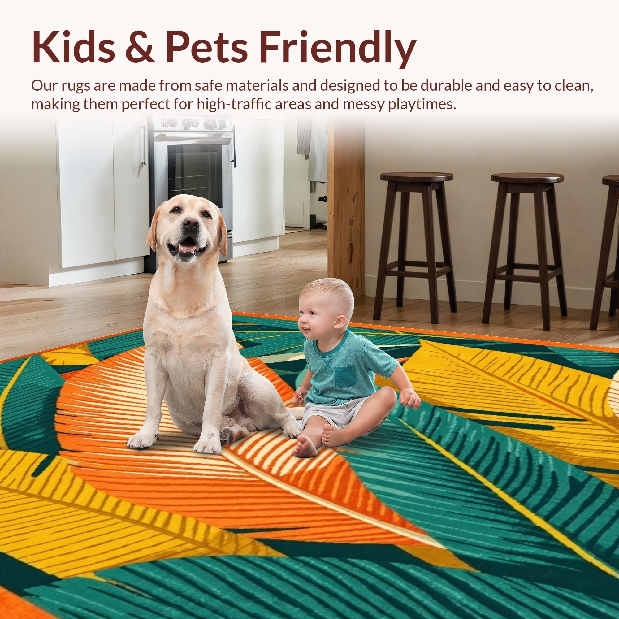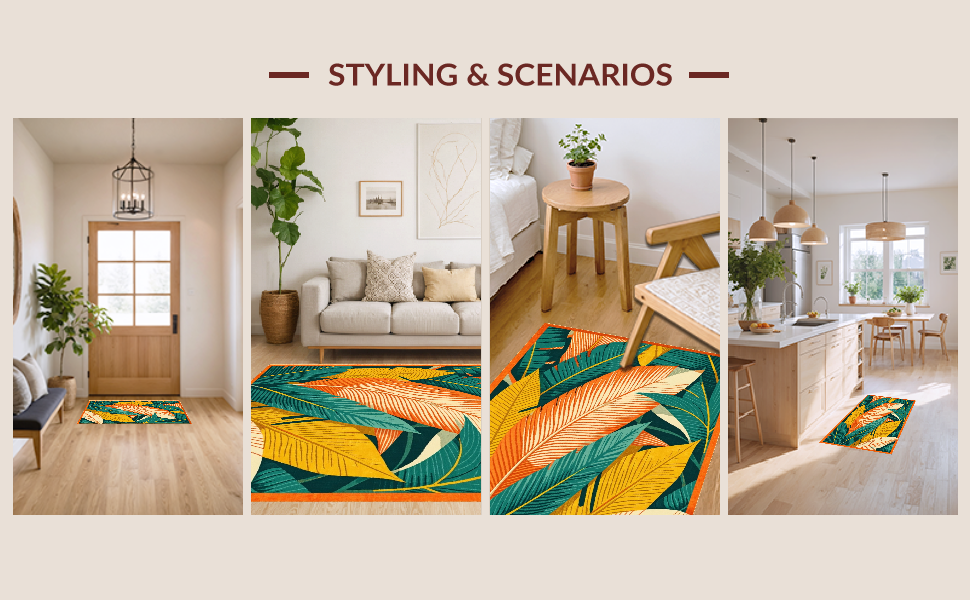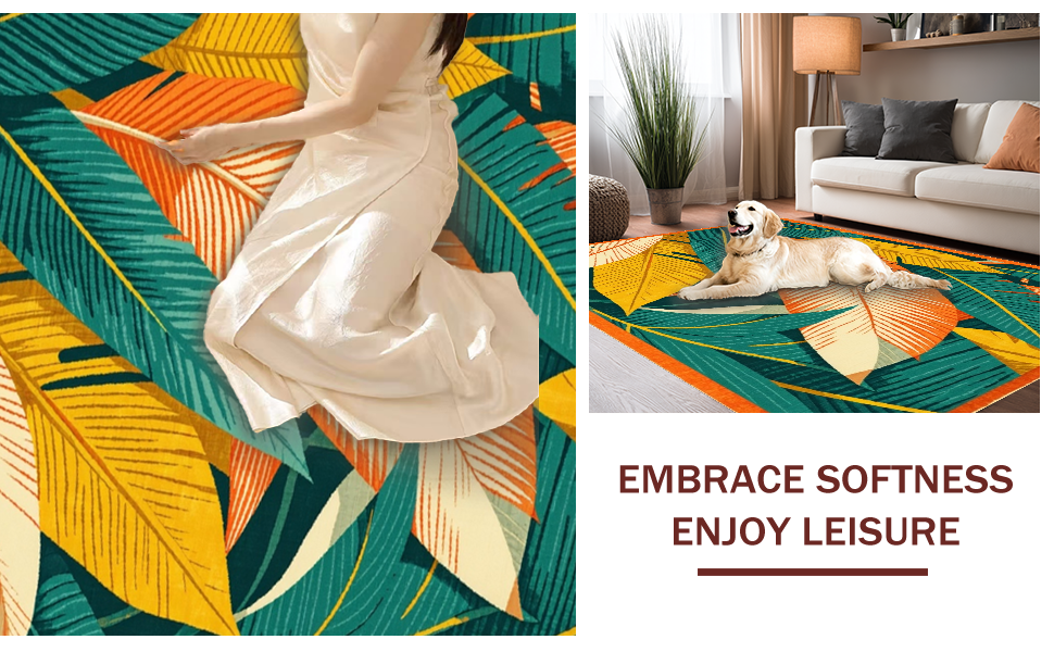 Ultra Soft Area Rug, Non Slip, Stain Resistant, Washable Area Rugs for Living Room, Bedroom, Chic Rustic Textured Aesthetic(Green) Overview: