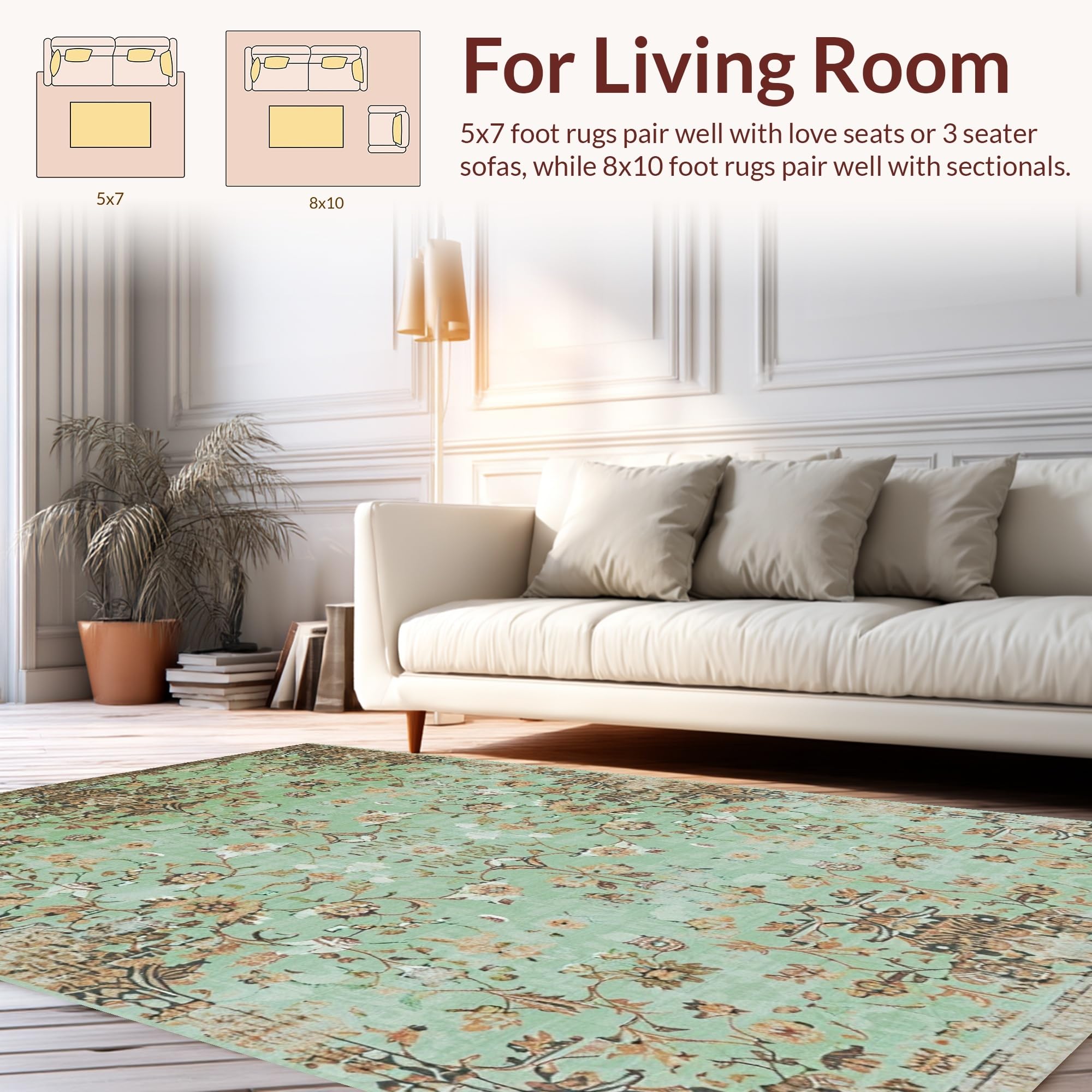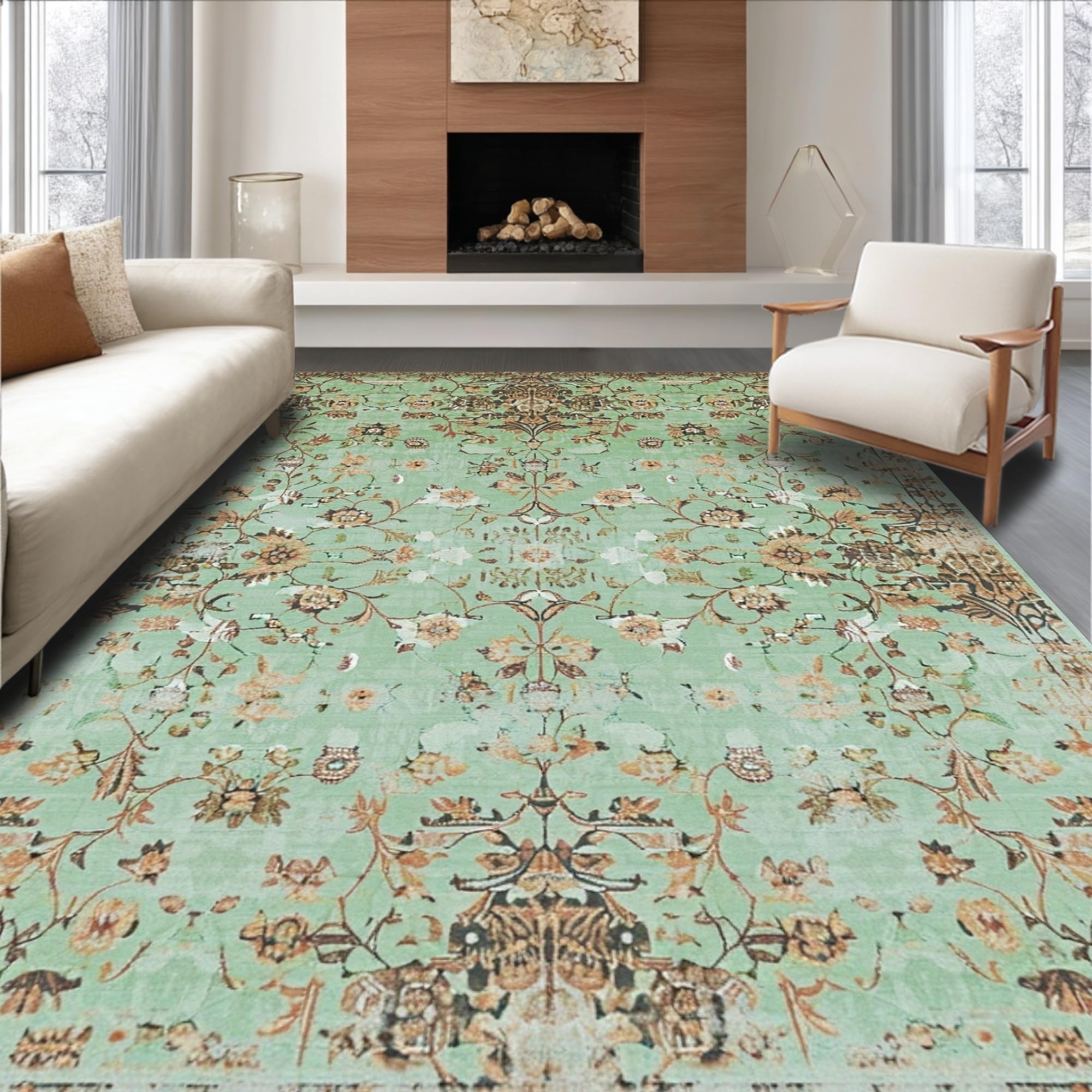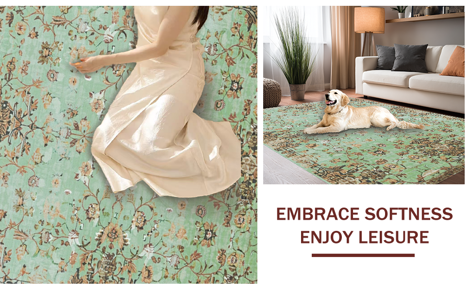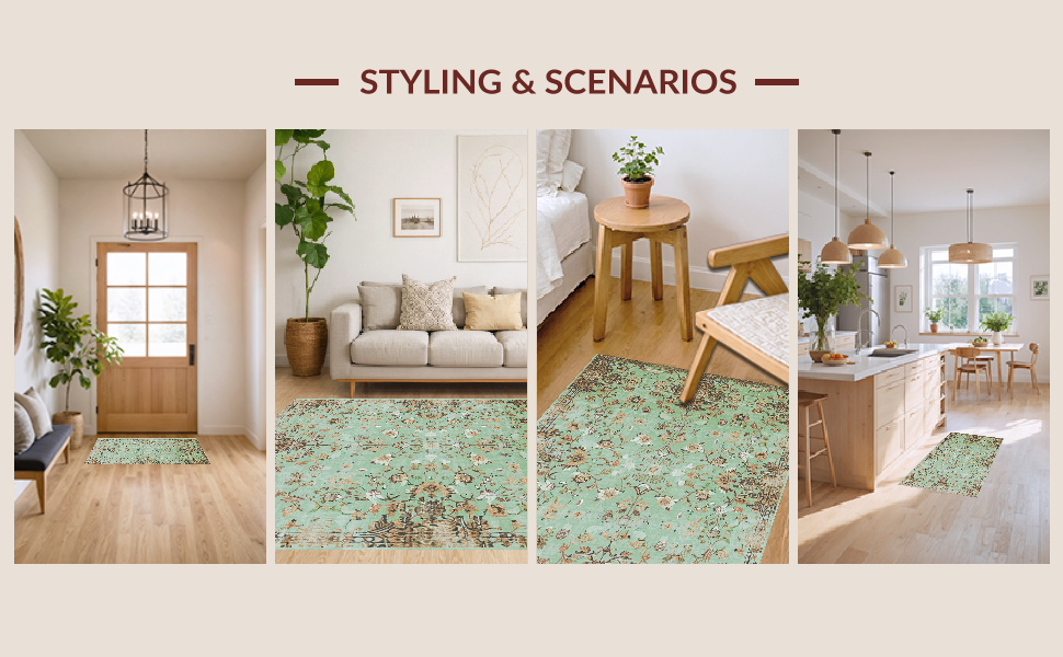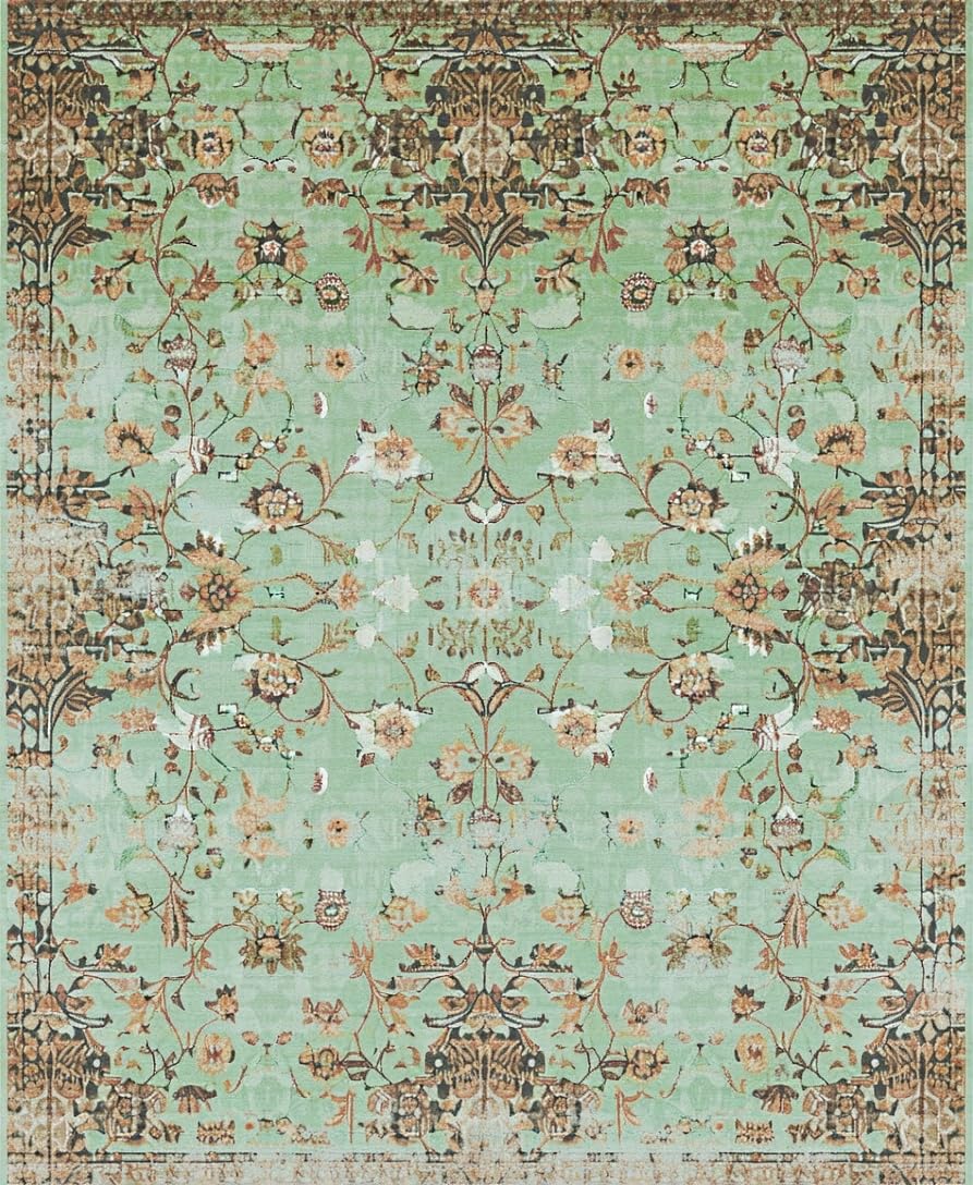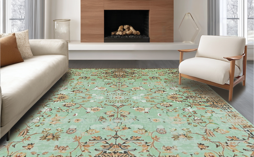Ultra Soft Area Rug, Non Slip, Stain Resistant, Washable Area Rugs for Living Room, Bedroom, Chic Sage Tiled Pattern Design(Green) Overview: