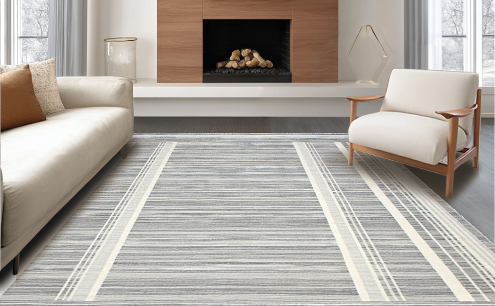 Ultra Soft Area Rug, Non Slip, Stain Resistant, Washable Area Rugs for Living Room, Bedroom, Chic Scalloped Minimalist Aesthetic(Gray) Overview: