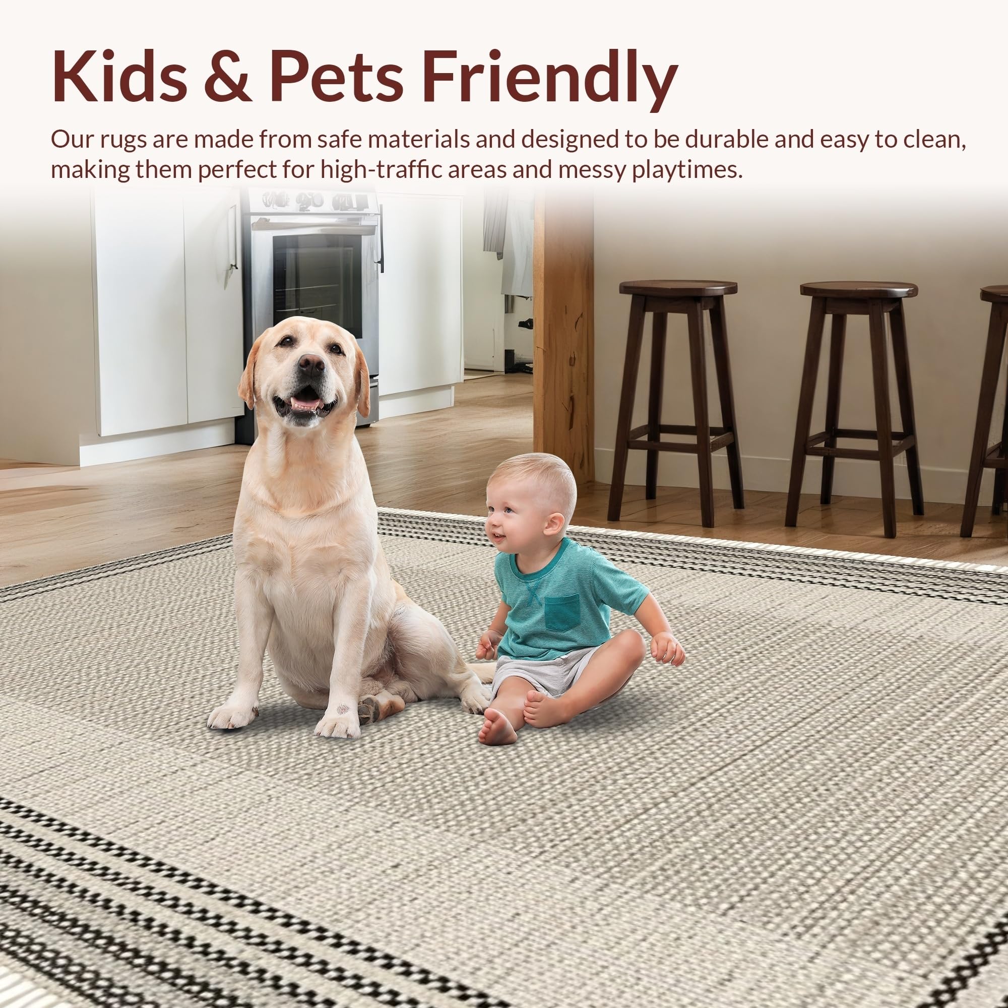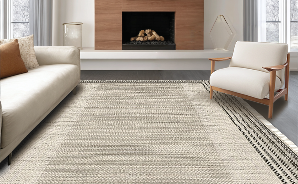 Ultra Soft Area Rug, Non Slip, Stain Resistant, Washable Area Rugs for Living Room, Bedroom, Chic Scalloped Natural Tones(Beige) Overview: