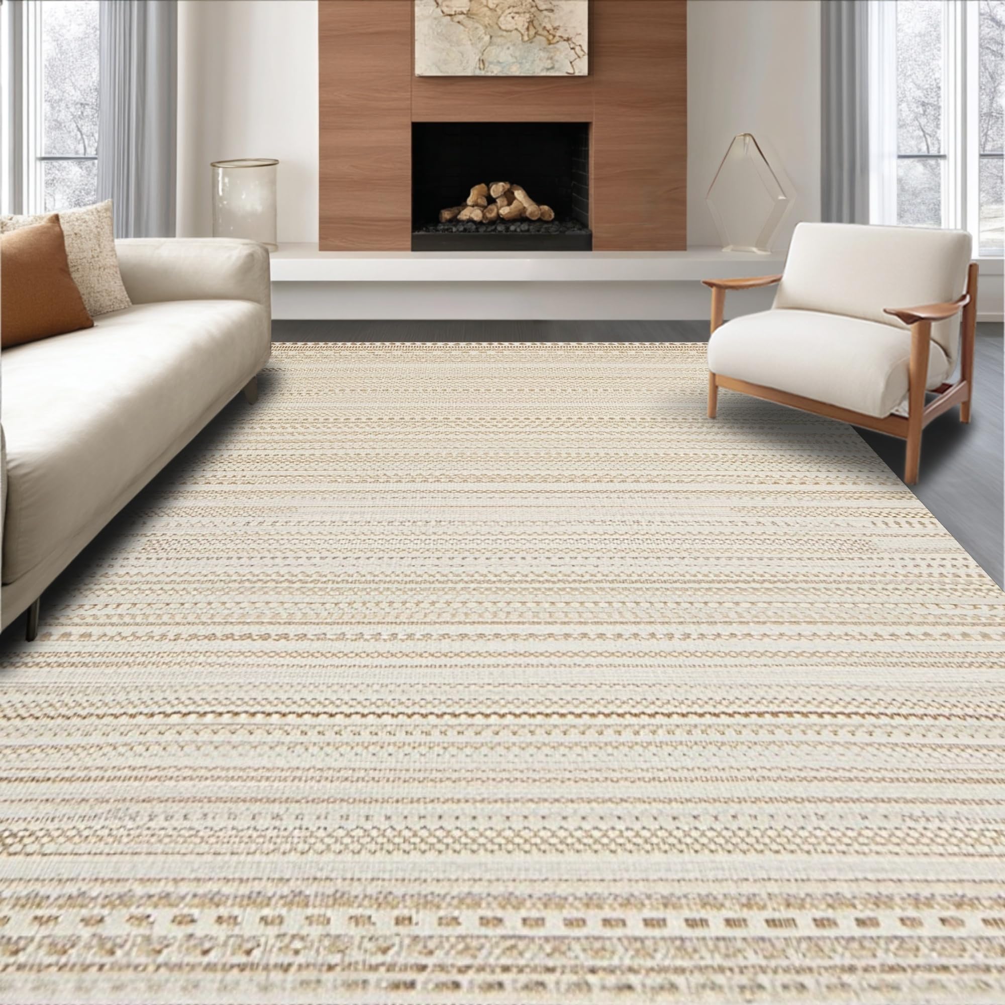 Ultra Soft Area Rug, Non Slip, Stain Resistant, Washable Area Rugs for Living Room, Bedroom, Chic Scalloped Neutral Aesthetic(Beige) Overview:
