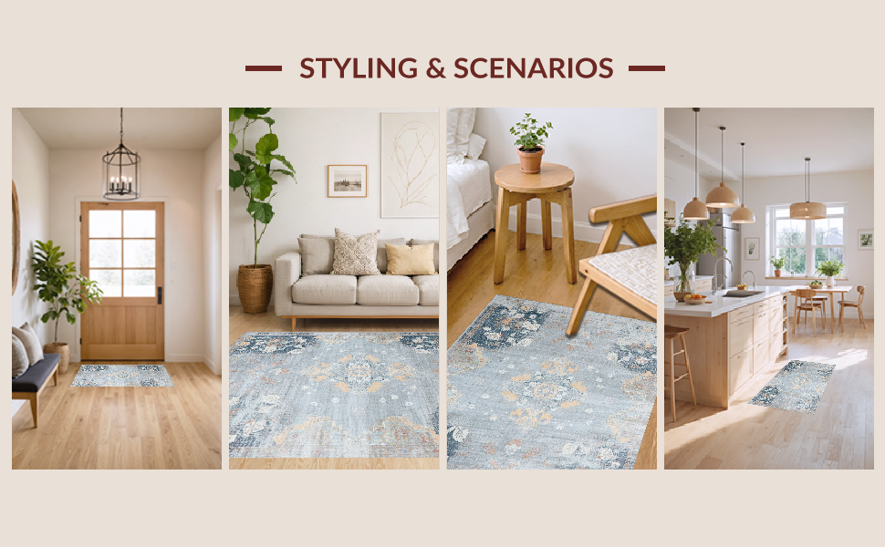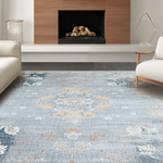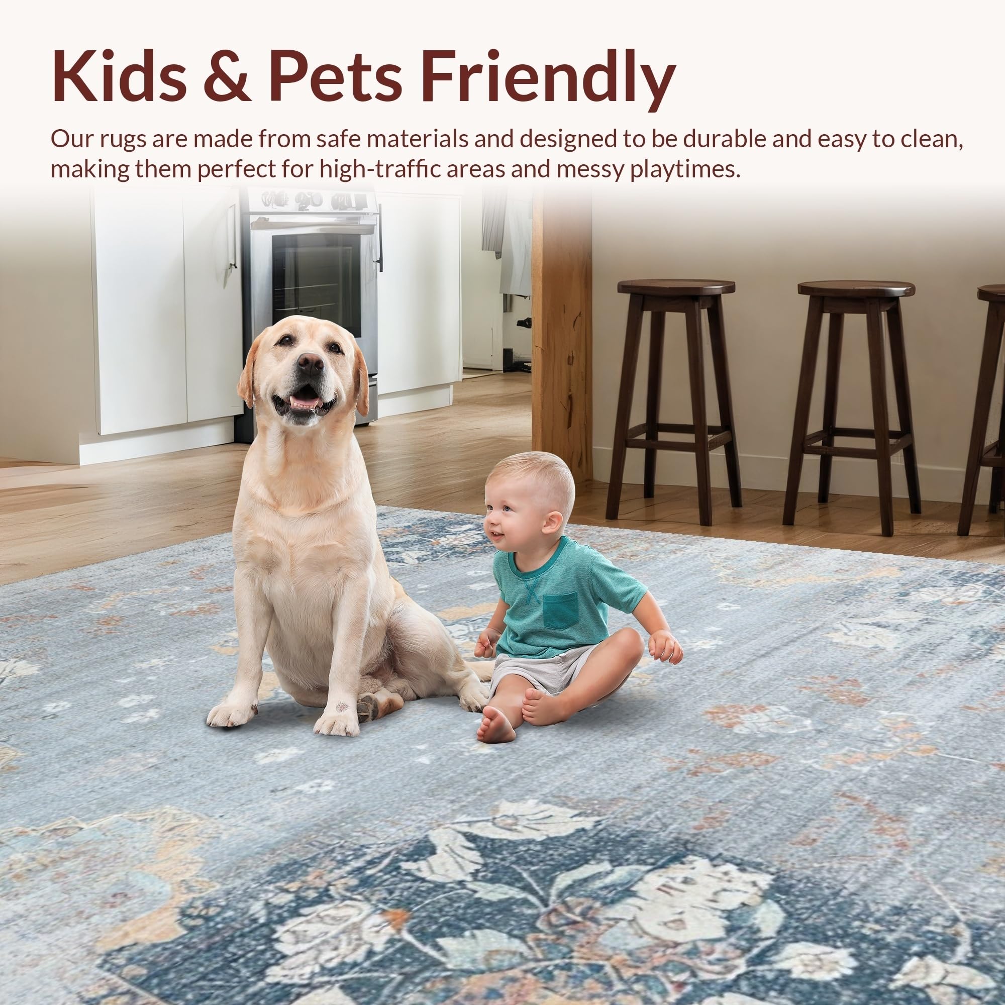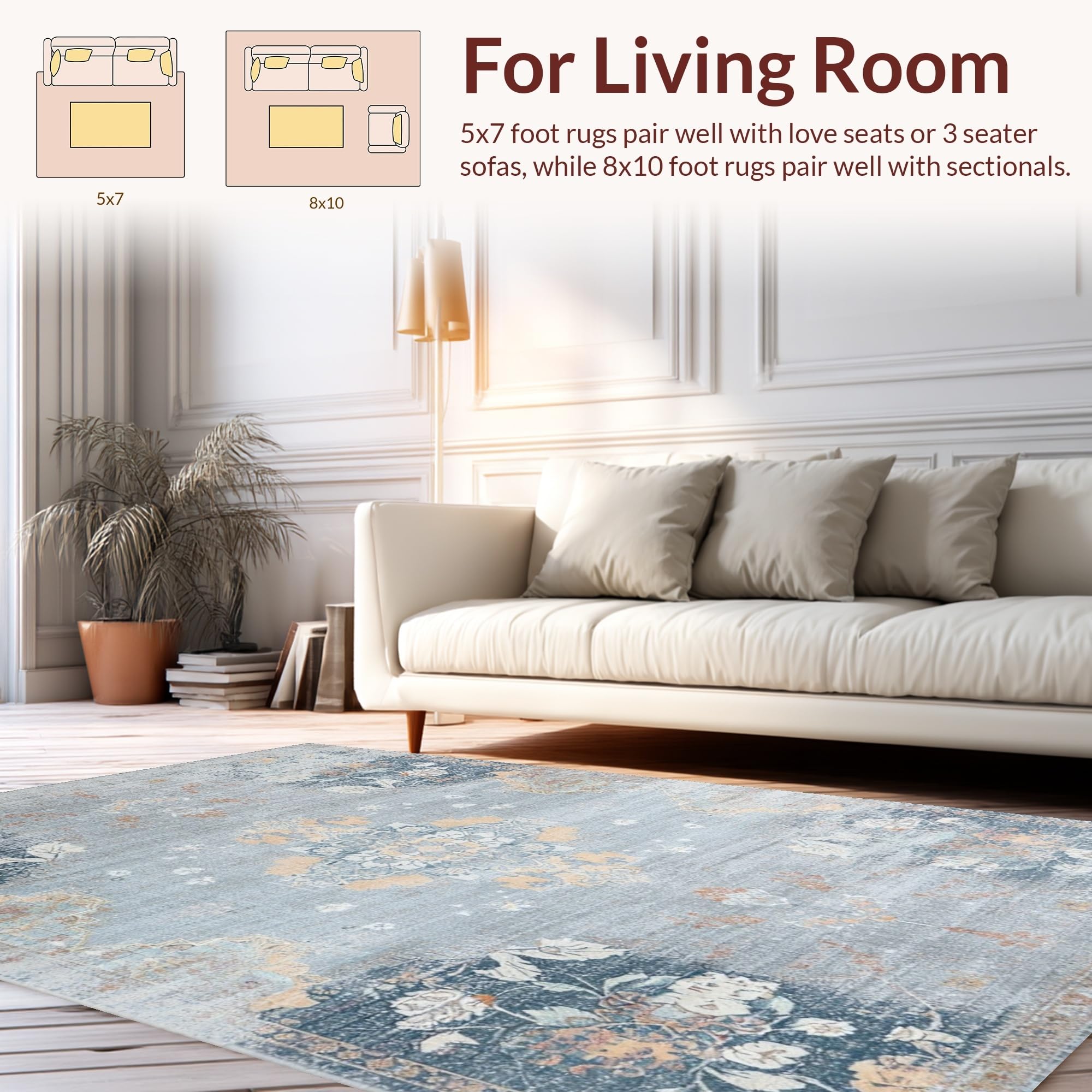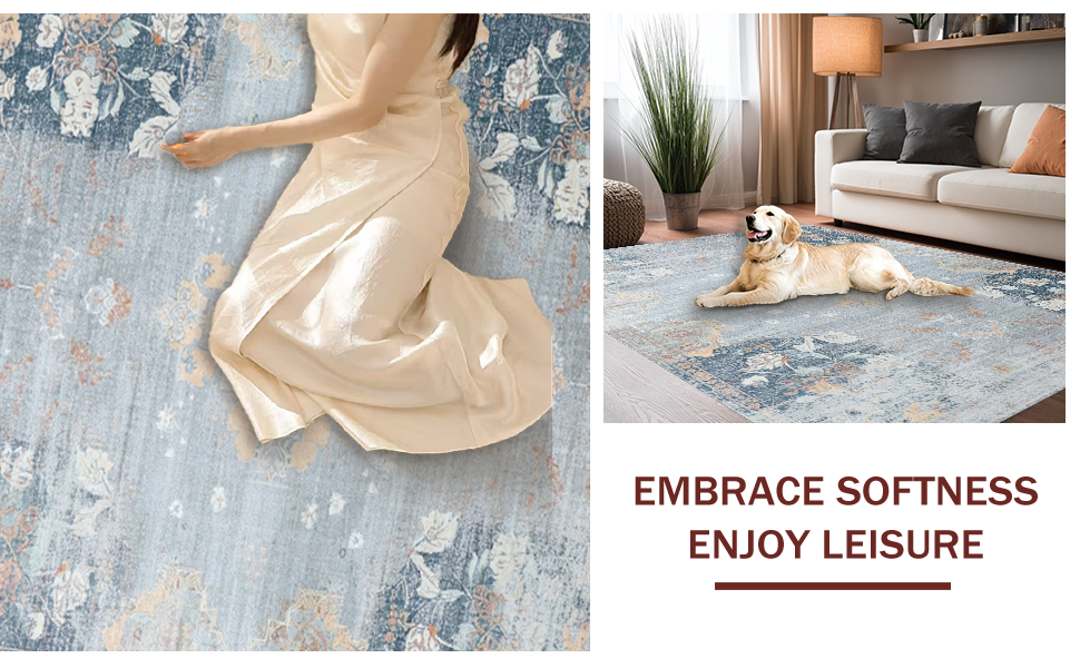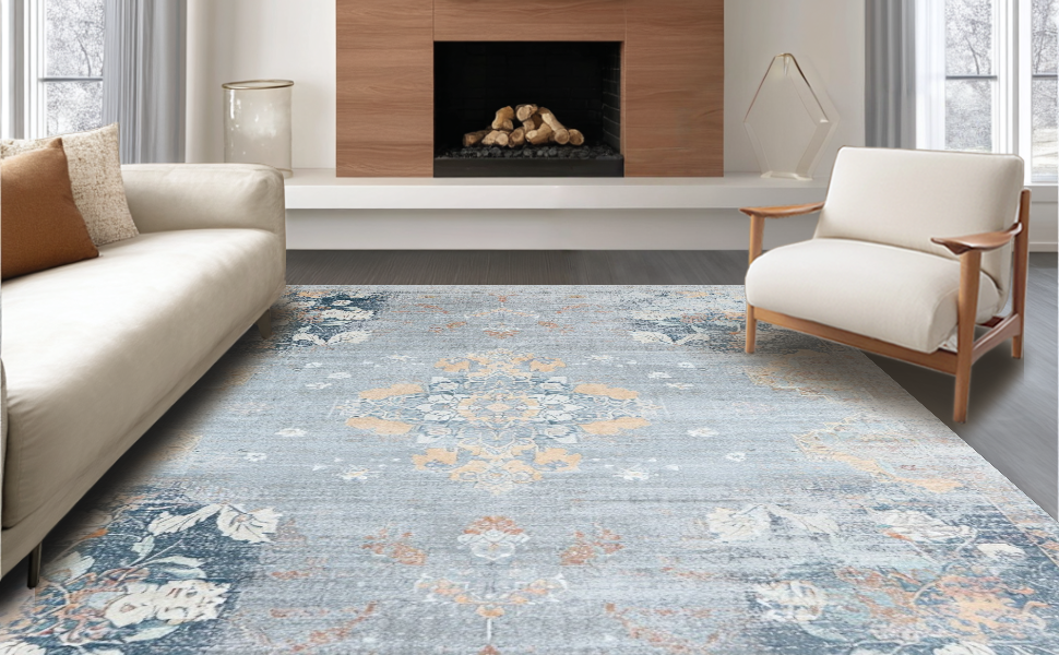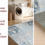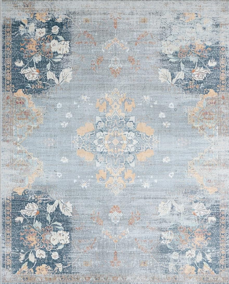 Ultra Soft Area Rug, Non Slip, Stain Resistant, Washable Area Rugs for Living Room, Bedroom, Chic Silver Blossom Array(Blue) Overview: