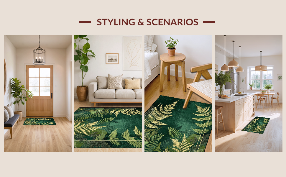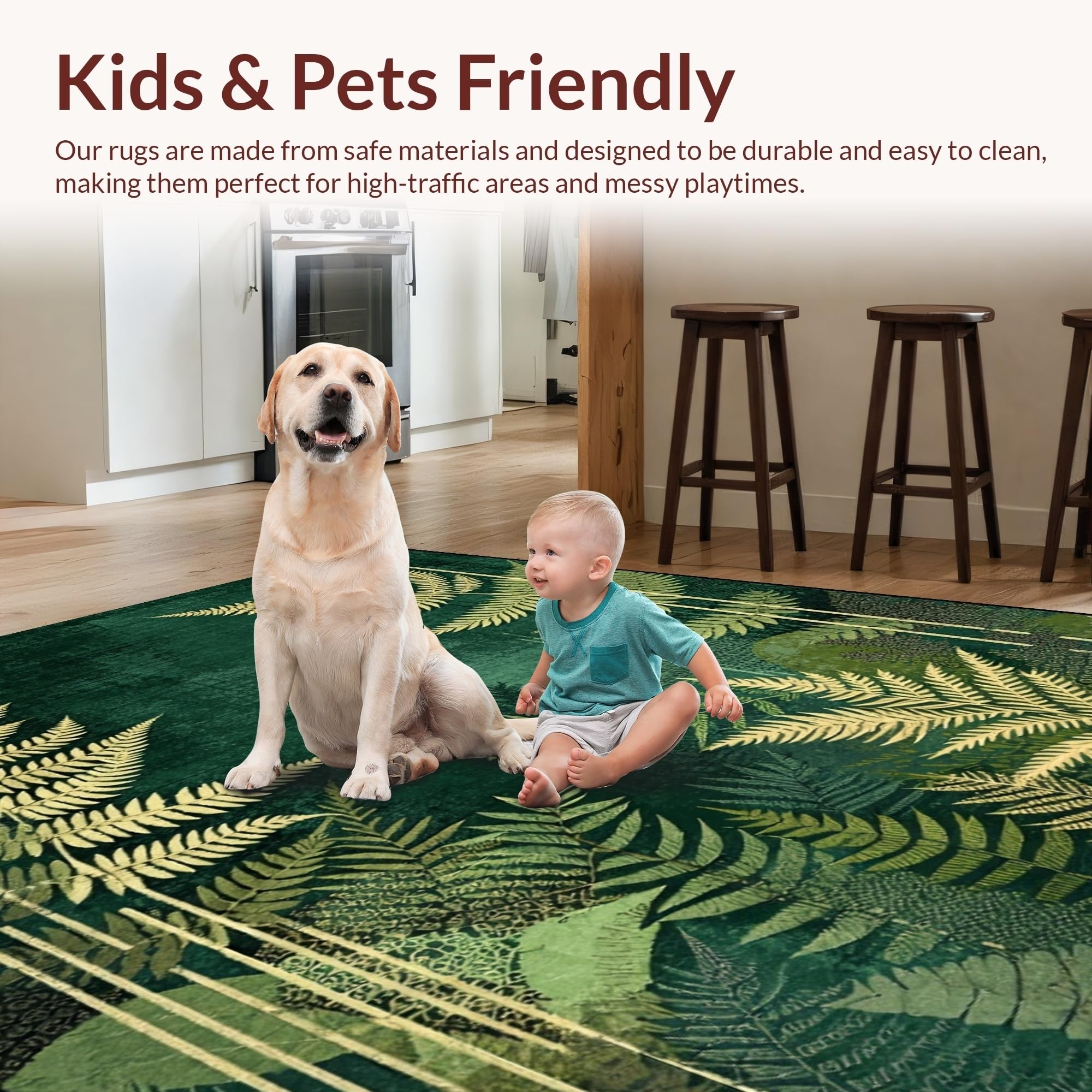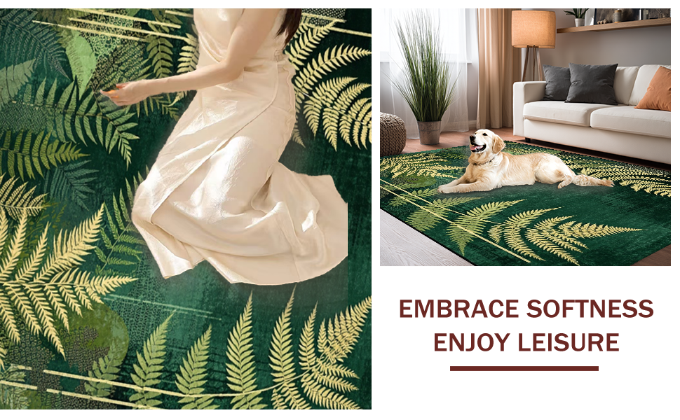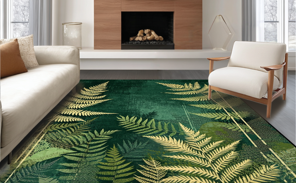 Ultra Soft Area Rug, Non Slip, Stain Resistant, Washable Area Rugs for Living Room, Bedroom, Chic Soft Abstract Organic Patterns(Green) Overview: