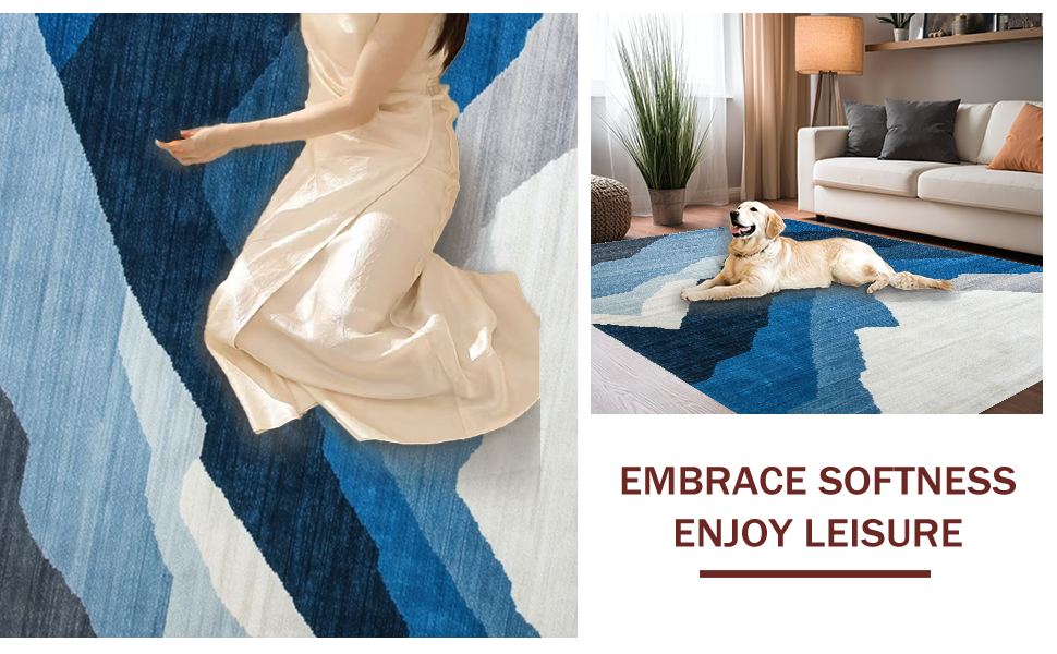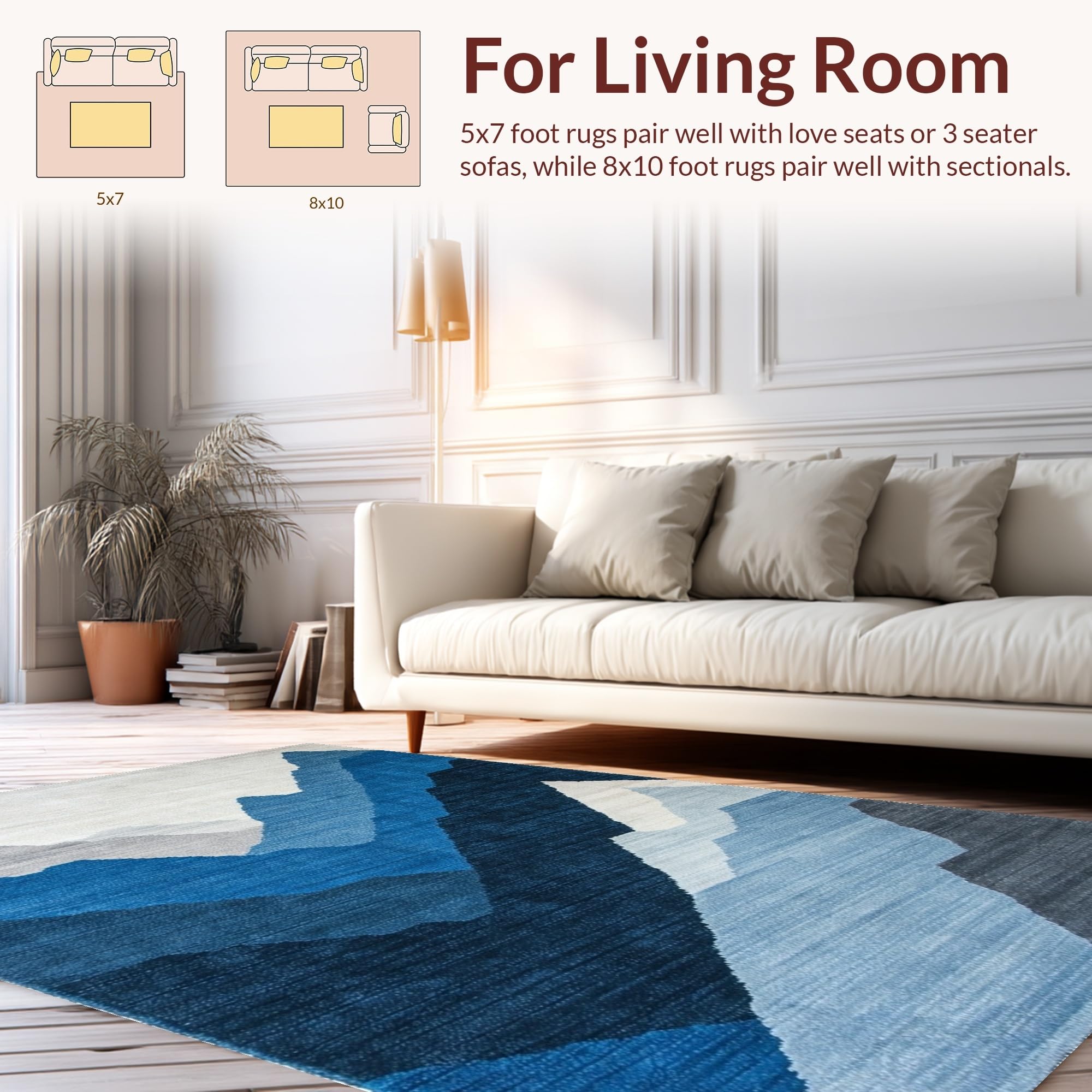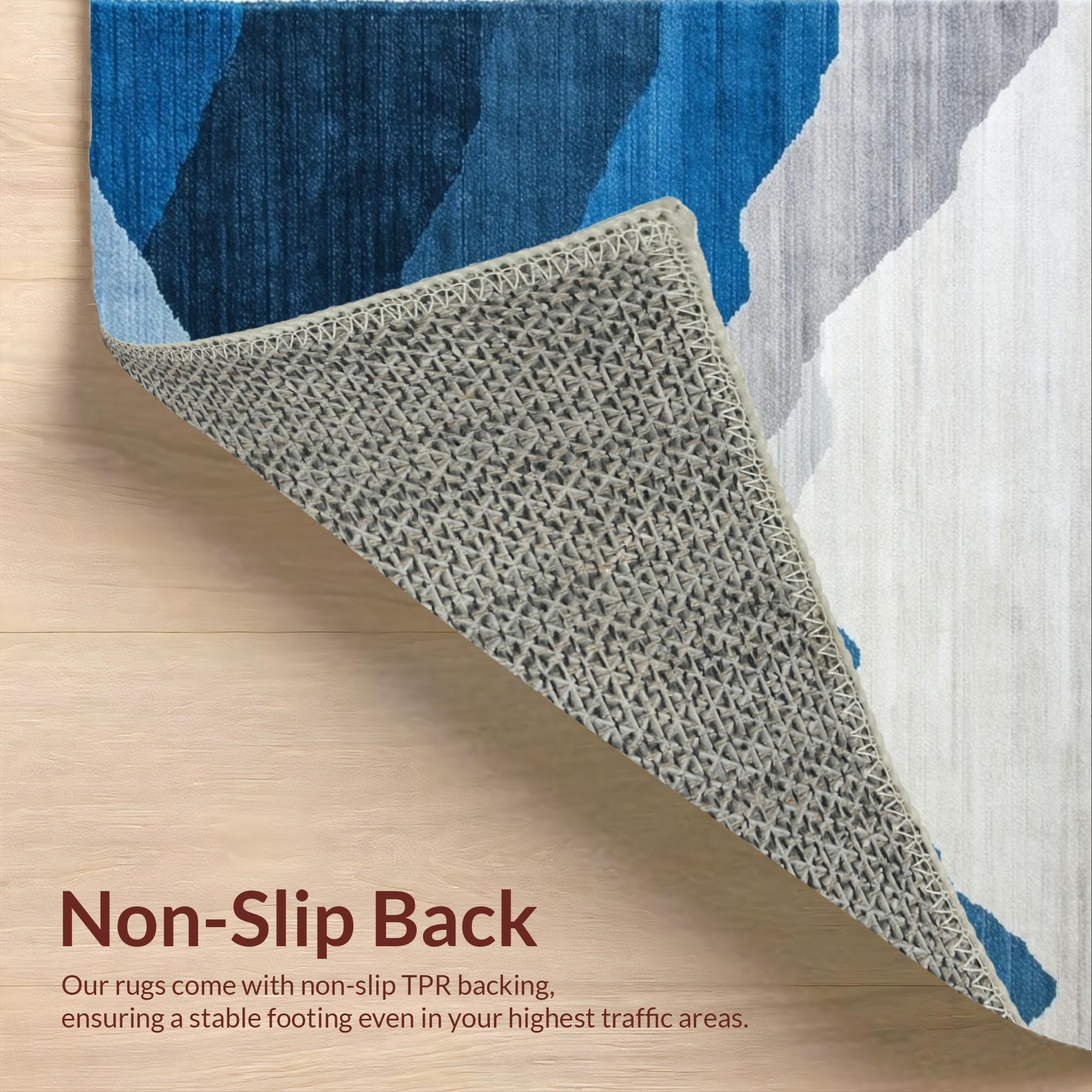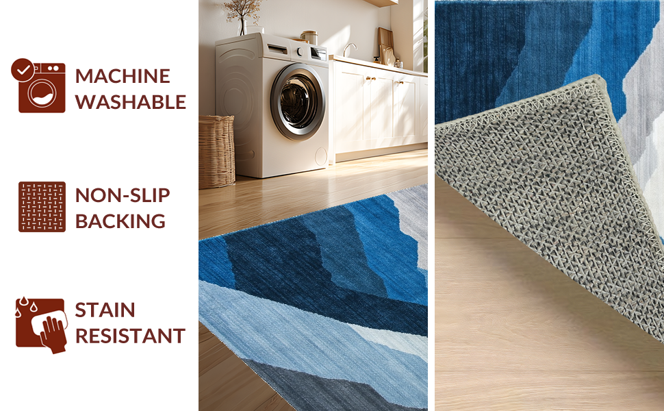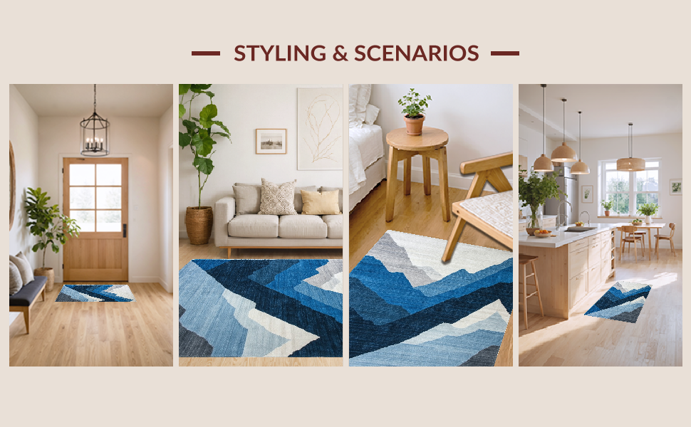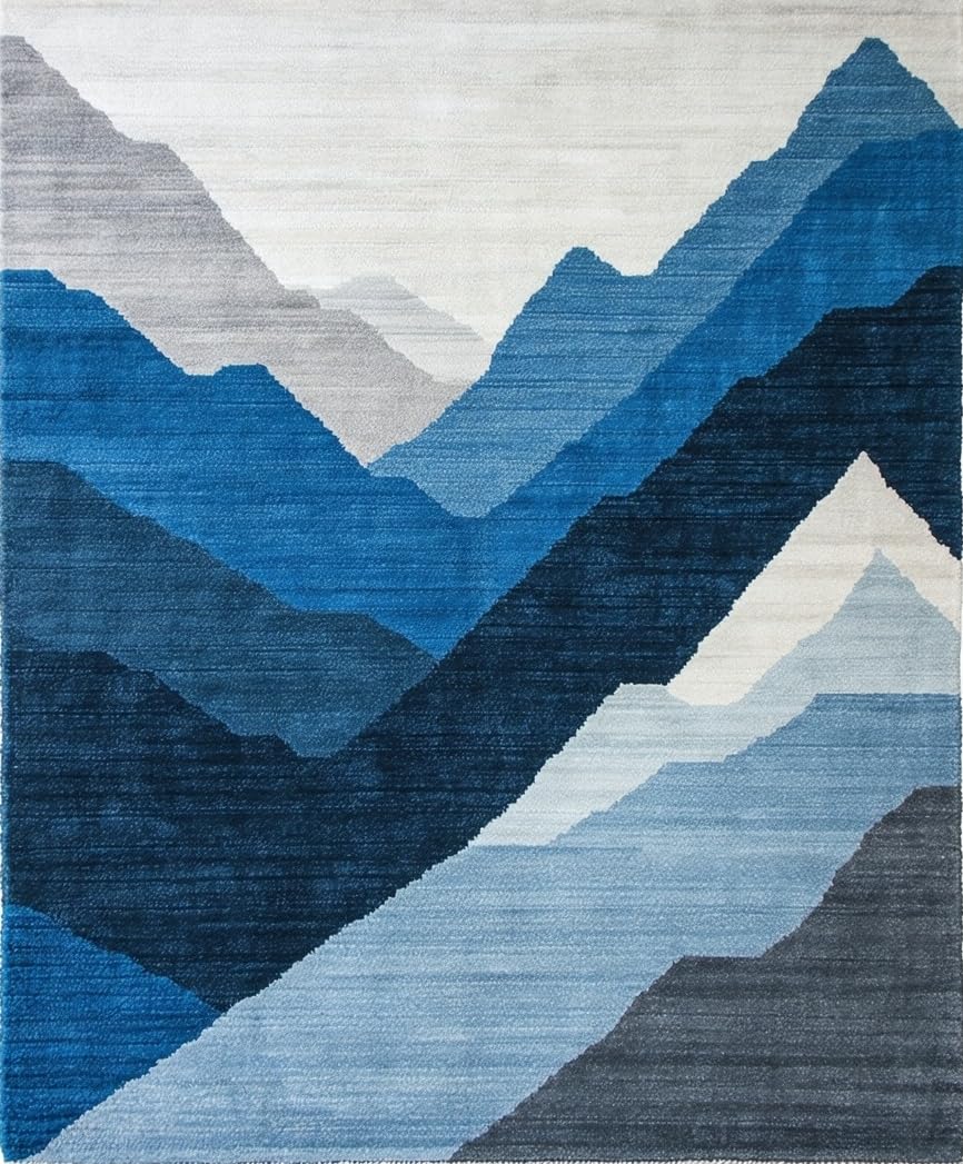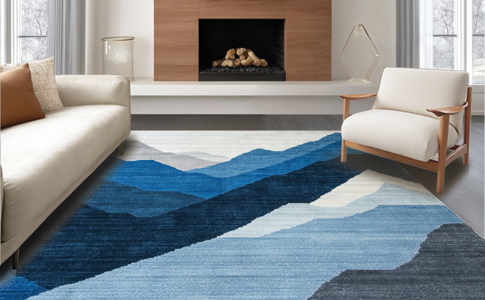 Ultra Soft Area Rug, Non Slip, Stain Resistant, Washable Area Rugs for Living Room, Bedroom, Chic Soft Hue Mountain Pattern(Blue) Overview: