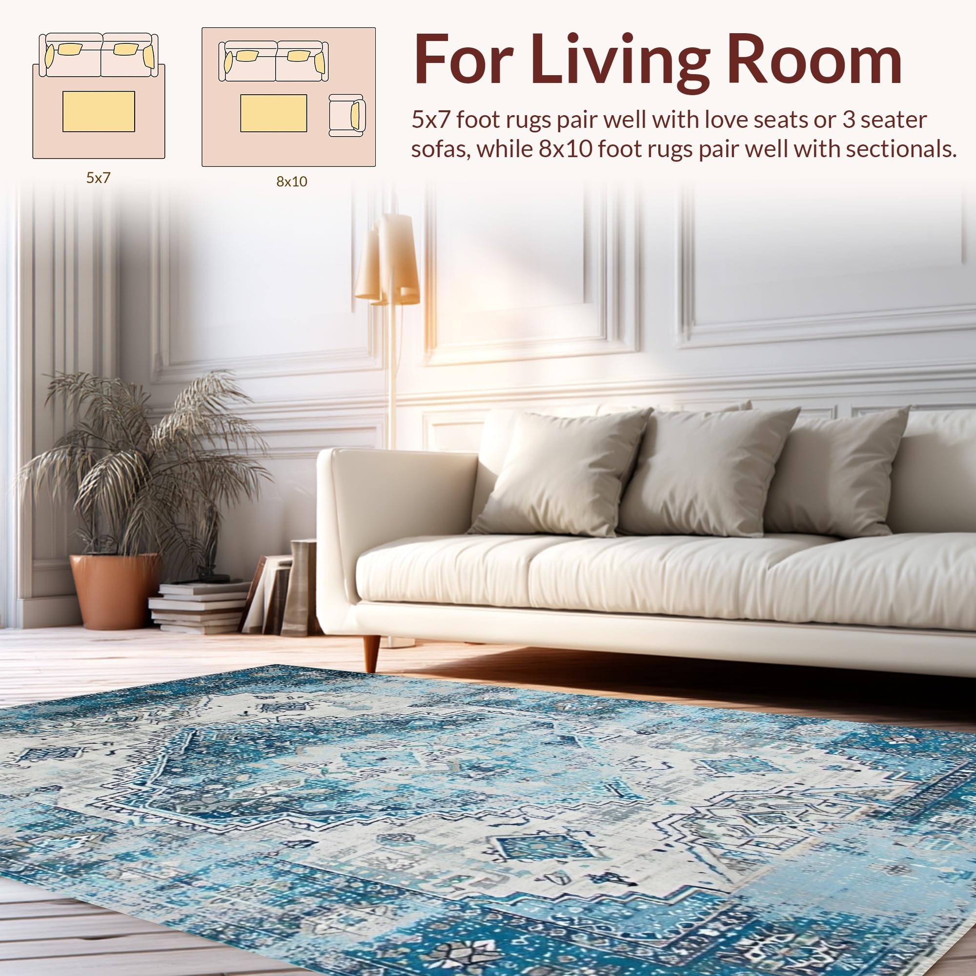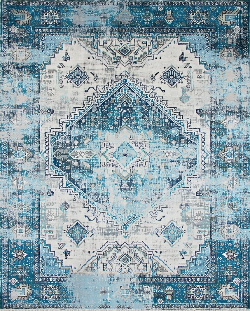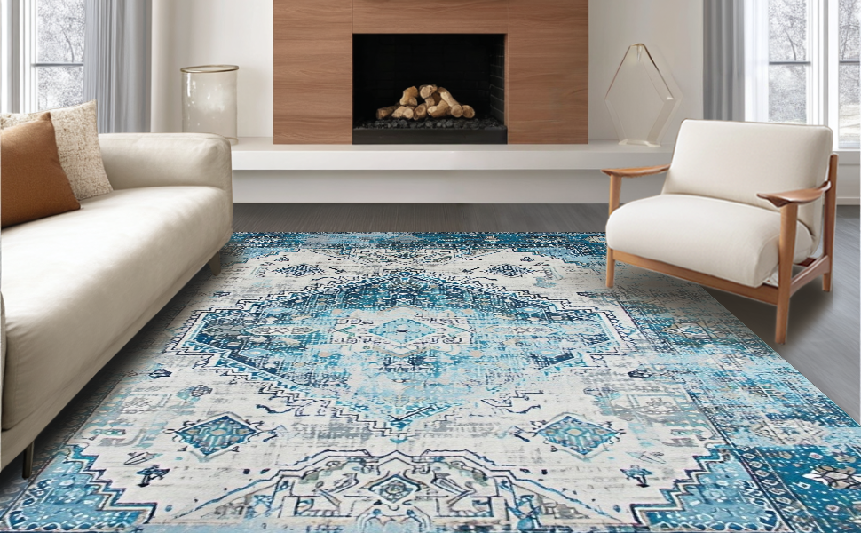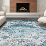 Ultra Soft Area Rug, Non Slip, Stain Resistant, Washable Area Rugs for Living Room, Bedroom, Chic Soft Monochrome Tiled Design(Blue) Overview: