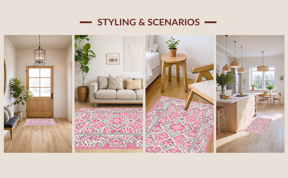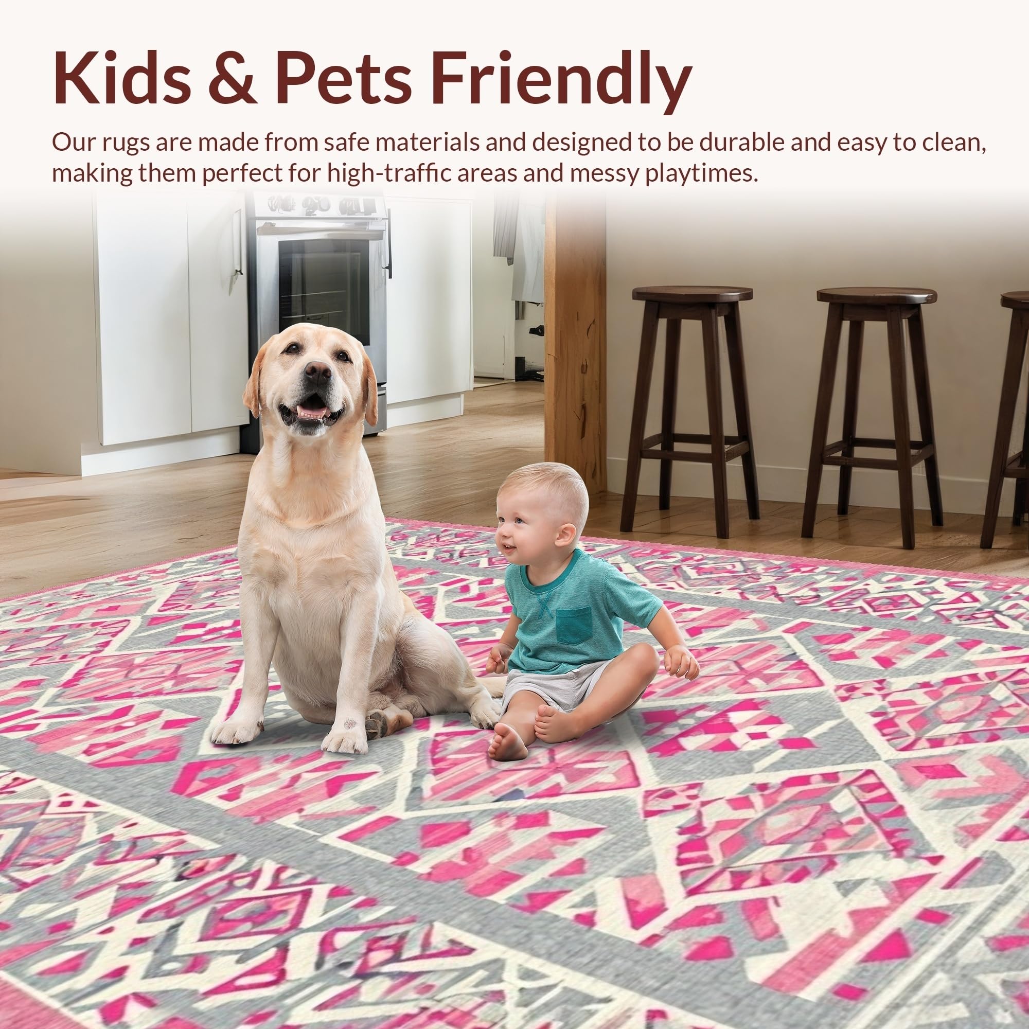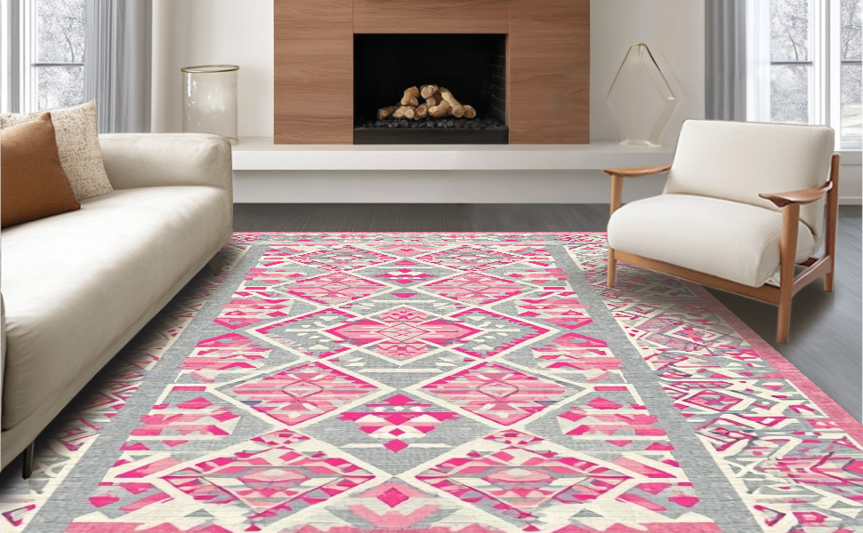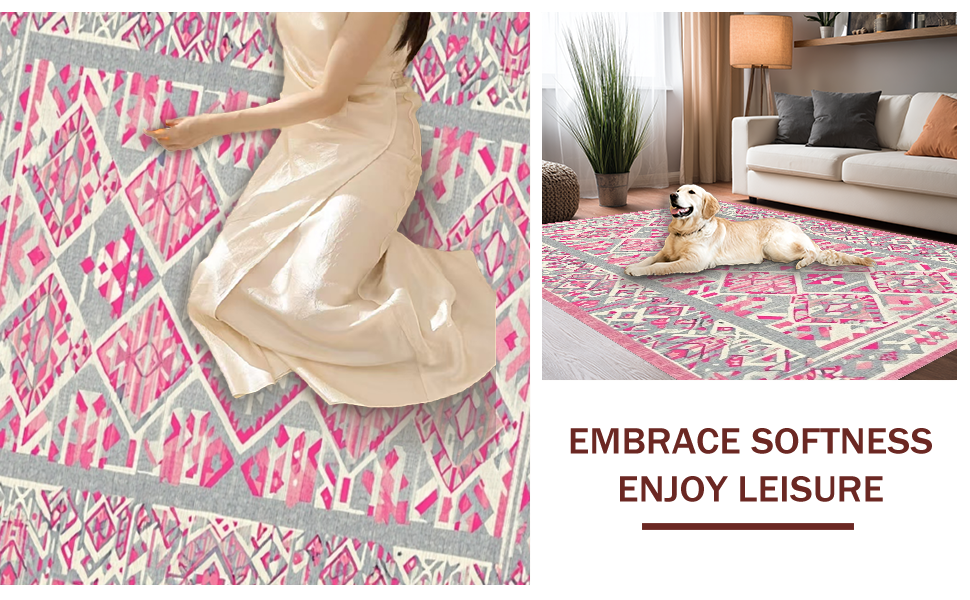 Ultra Soft Area Rug, Non Slip, Stain Resistant, Washable Area Rugs for Living Room, Bedroom, Chic Soft Plush Fuzzy Aesthetic(Pink) Overview: