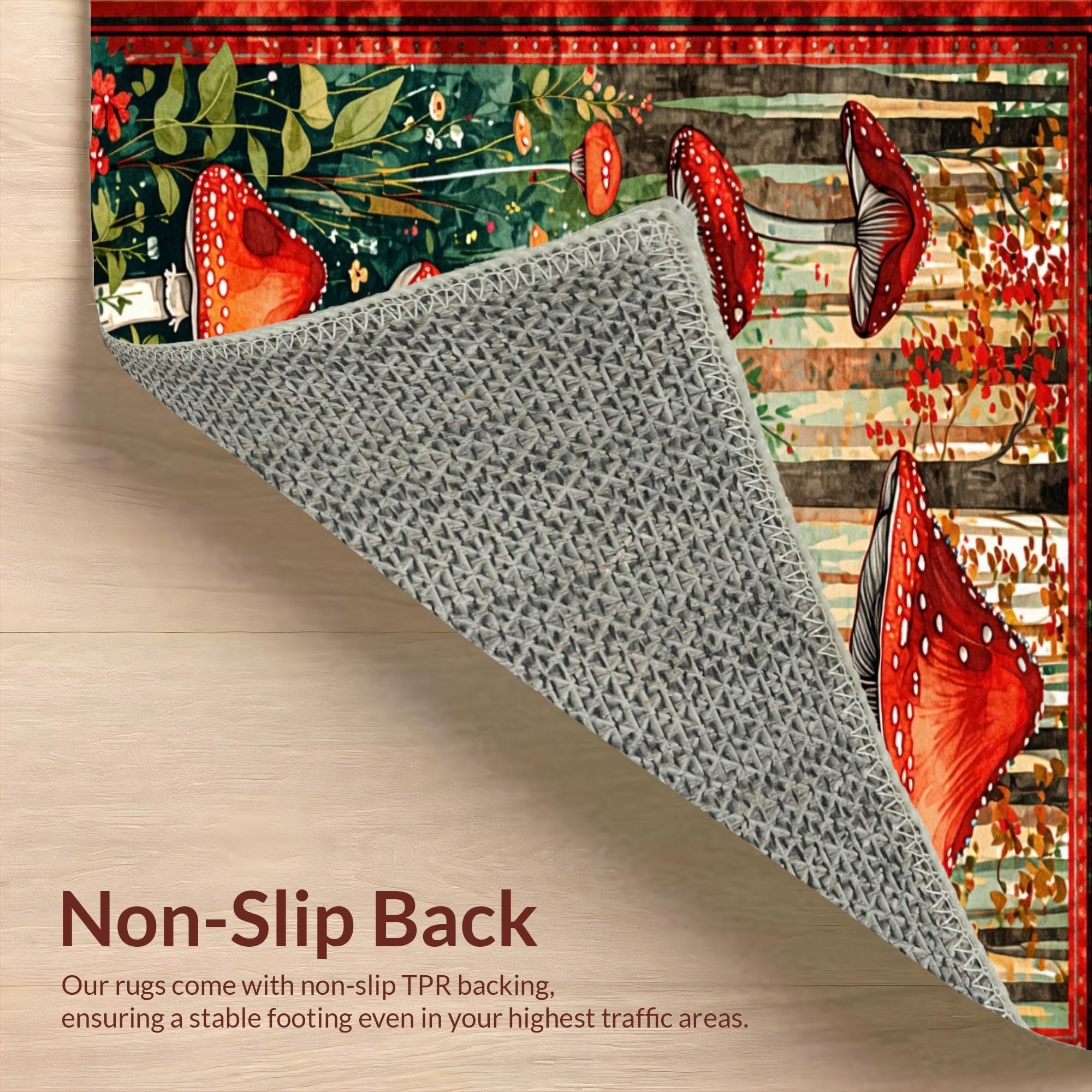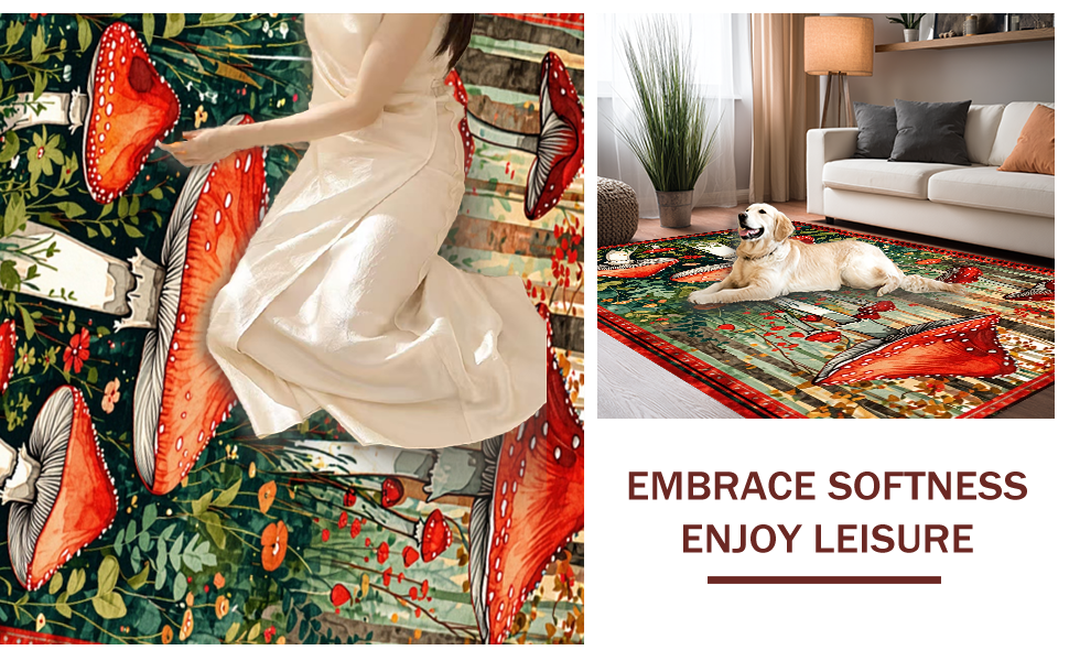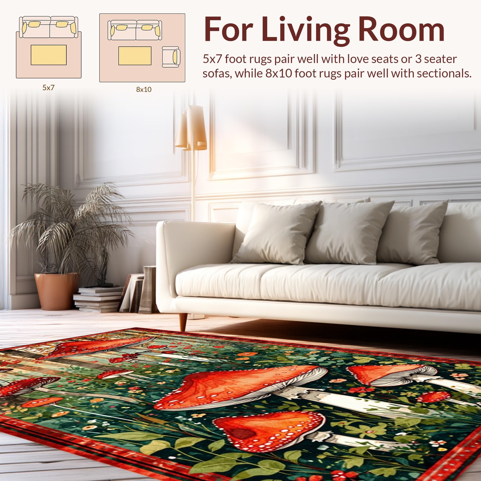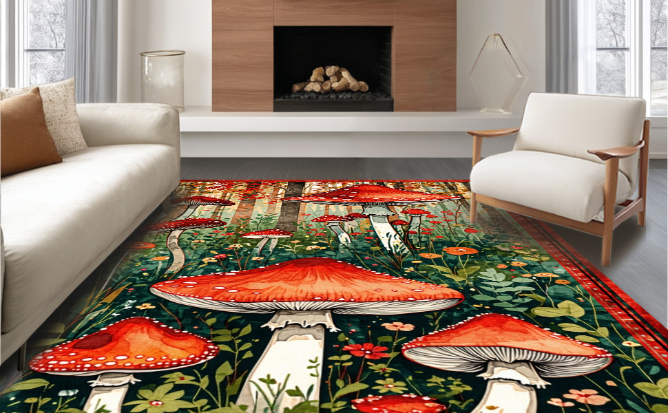 Ultra Soft Area Rug, Non Slip, Stain Resistant, Washable Area Rugs for Living Room, Bedroom, Chic Soft Toned Fungi Design(Red) Overview: