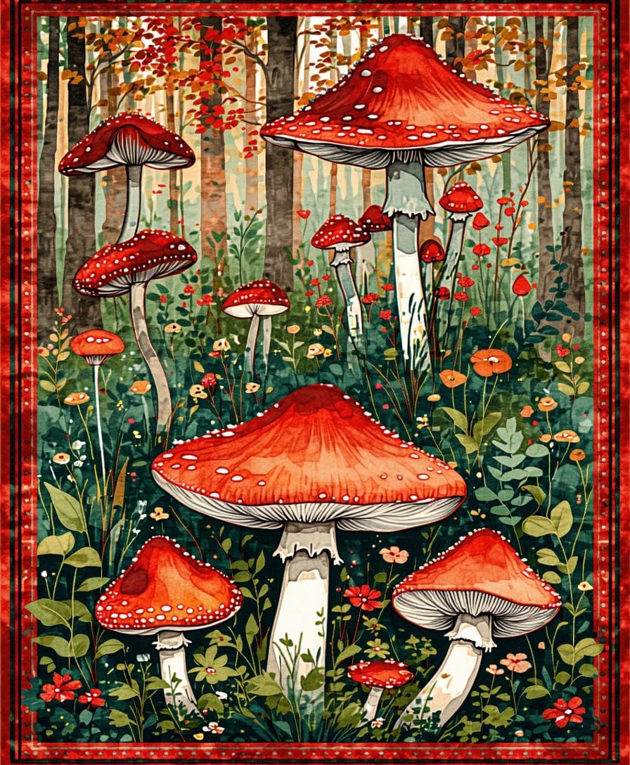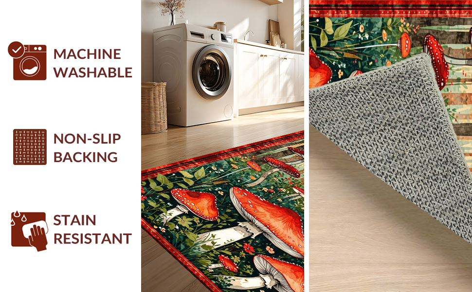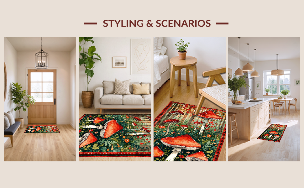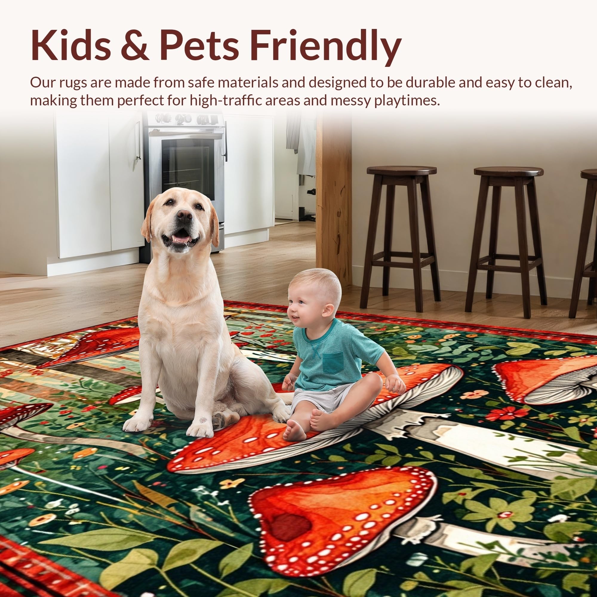 Ultra Soft Area Rug, Non Slip, Stain Resistant, Washable Area Rugs for Living Room, Bedroom, Chic Soft Toned Fungi Design(Red) Overview: