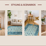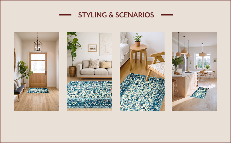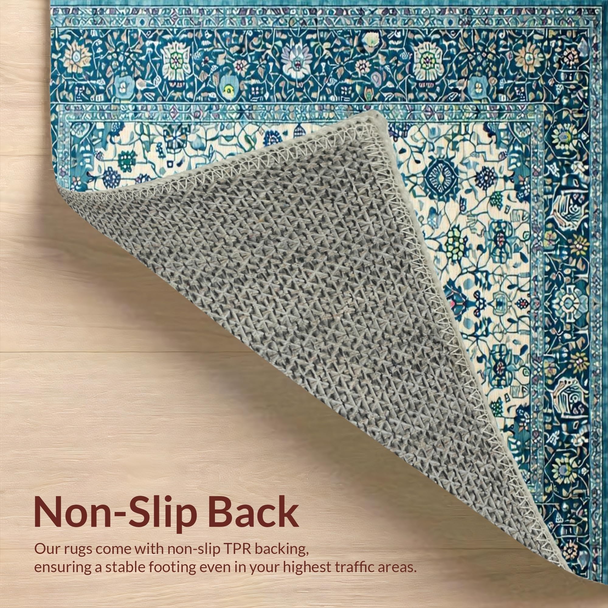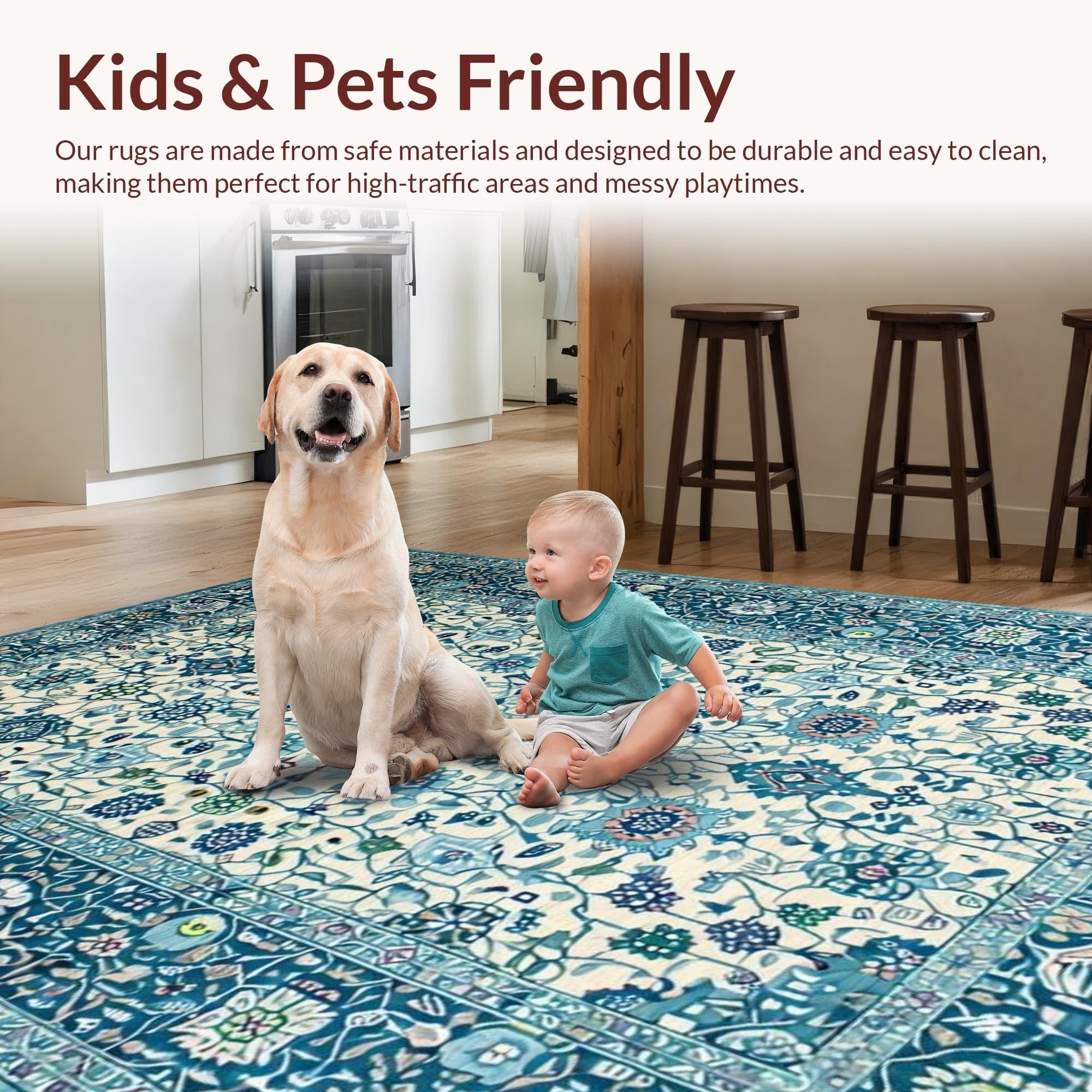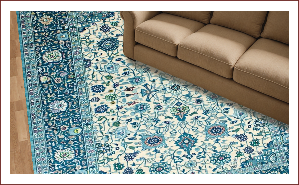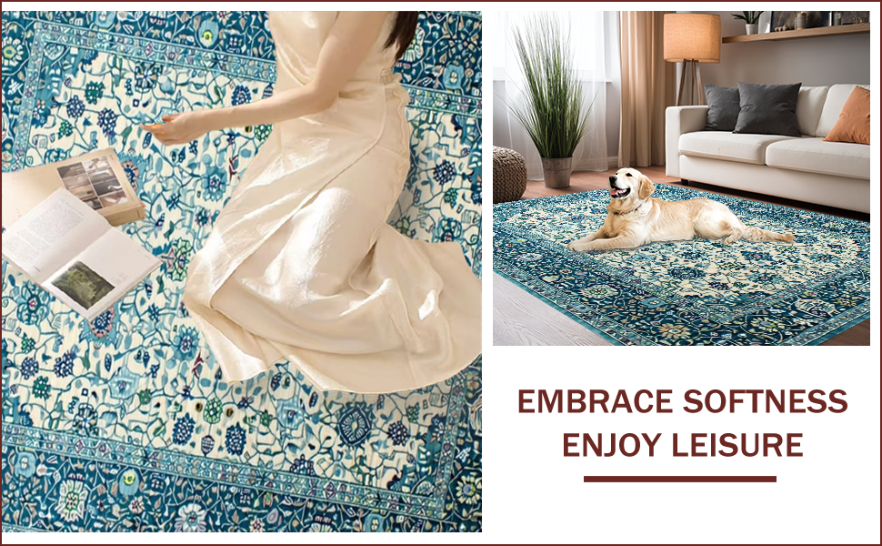 Ultra Soft Area Rug, Non Slip, Stain Resistant, Washable Area Rugs for Living Room, Bedroom, Chic Soft-Toned Medallion Aesthetic(Blue) Overview: