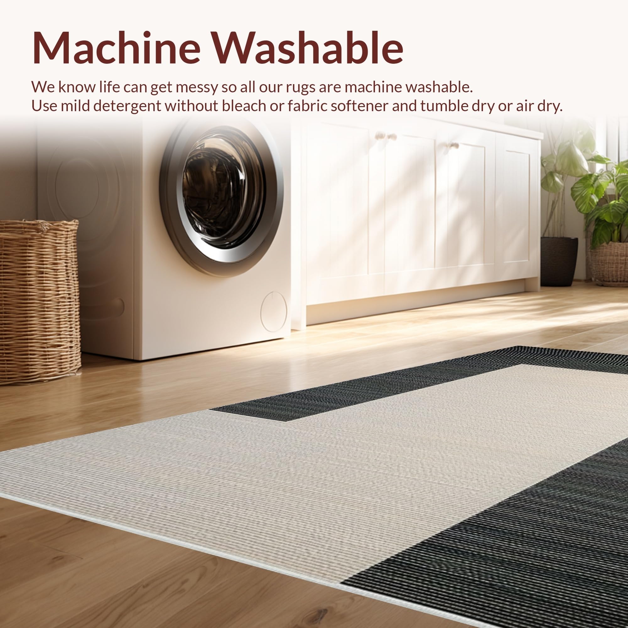 - Machine Washable: Our rugs can be easily thrown in the wash machine.